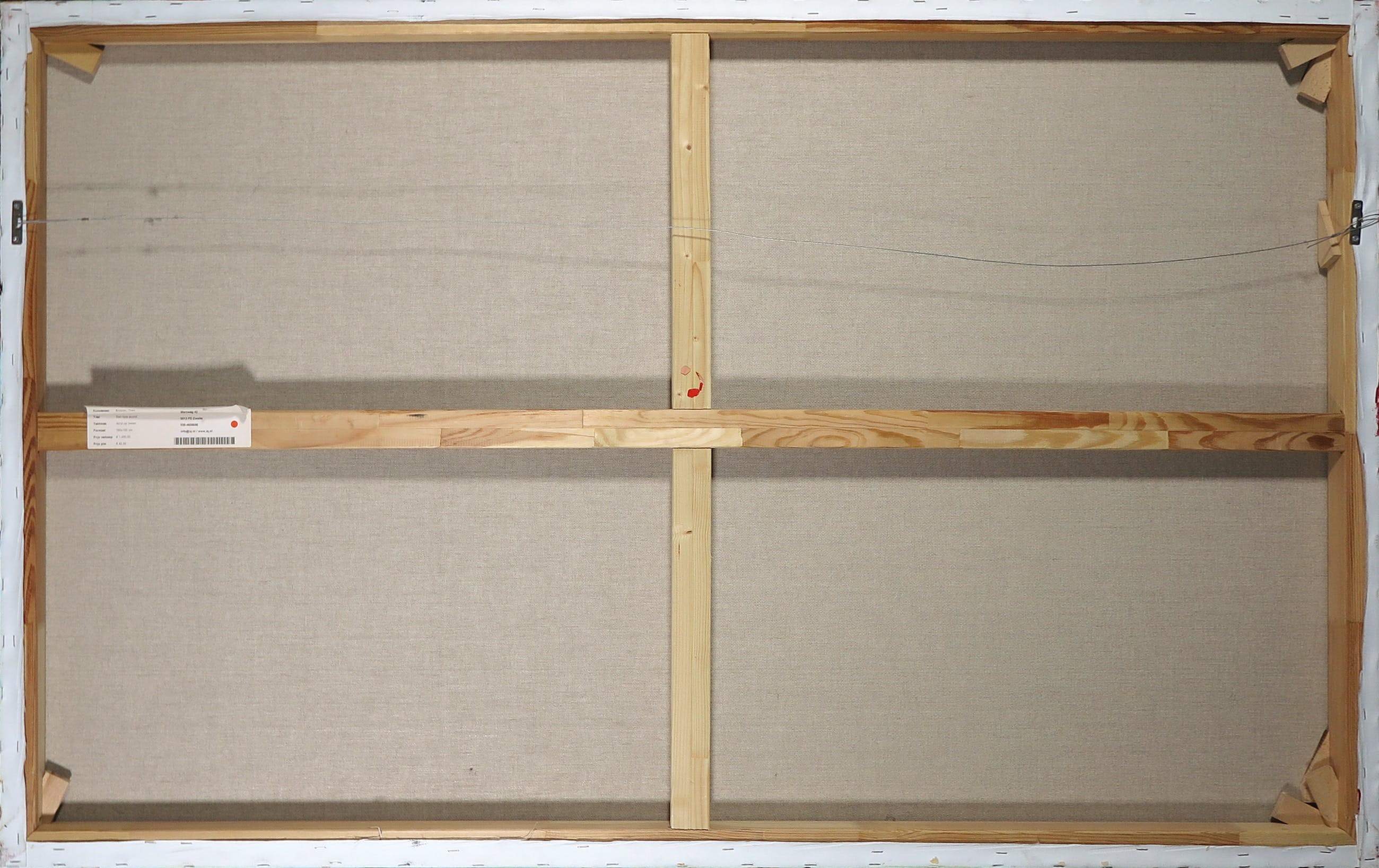 | Langs de rand rechts (met name rechtsonder), witte vlekjes en kaal canvas. Het werk heeft mogelijk tegen een ander doek gestaan, waarvan de verf nog niet geheel gedroogd was o.i.d. | |