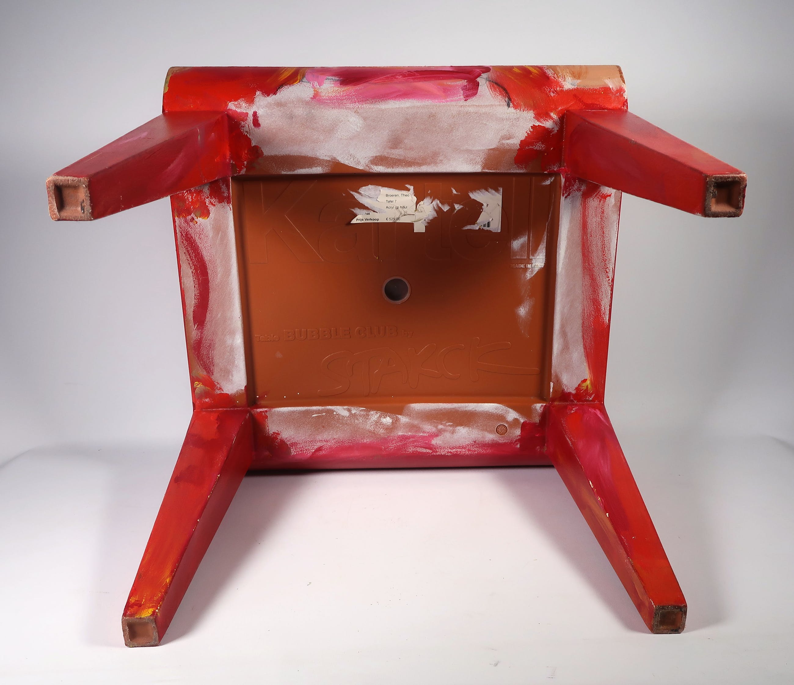 Het werk is in algeheel goede conditie. Hier en daar is er wat verf afgebladderd, tevens zijn de randen van het blad en de poten verweerd. | |
