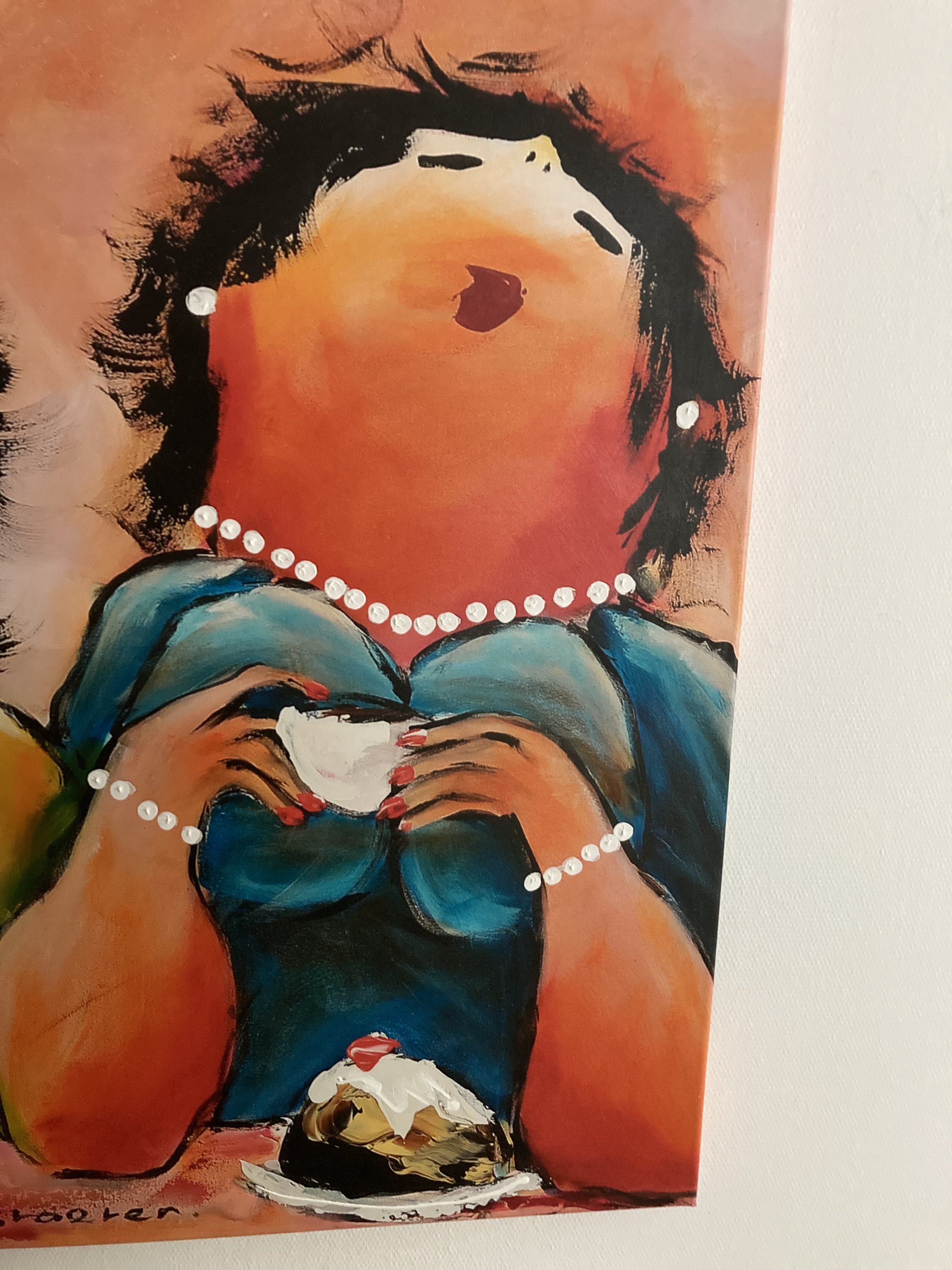 Mooie glicée met een typisch ‘Dikke Dames’ tafereel.