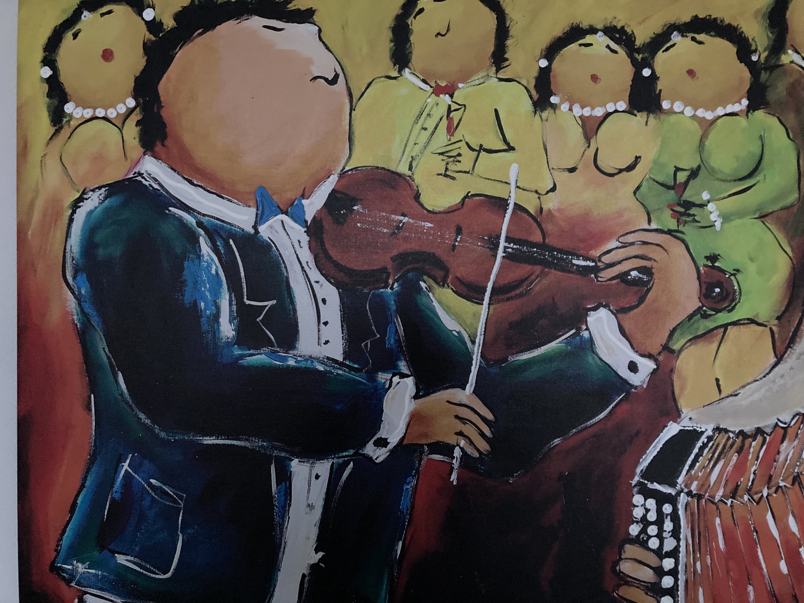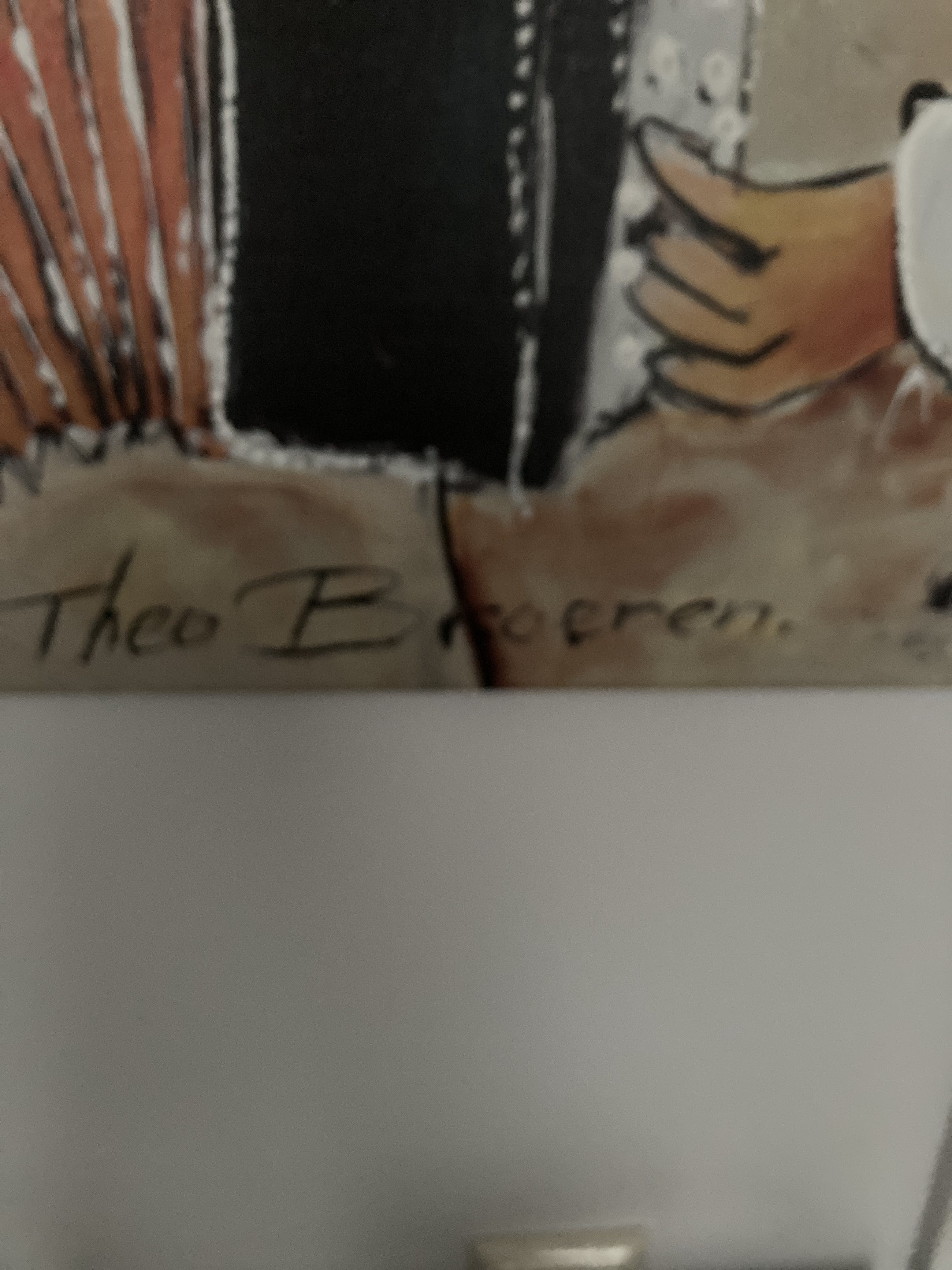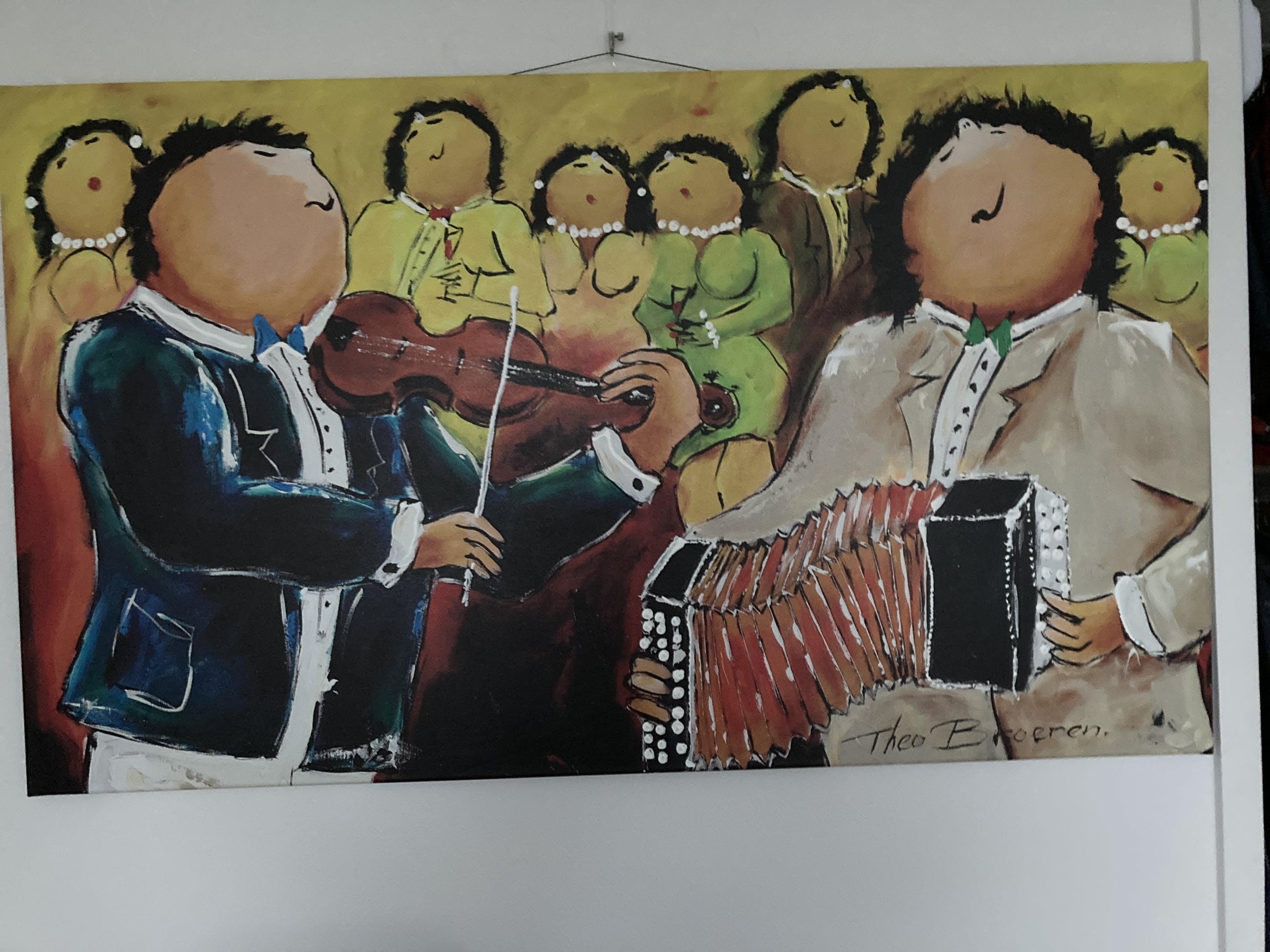 Mooie kleurrijke glicée met een vrolijk Dikke Dames tafereel.