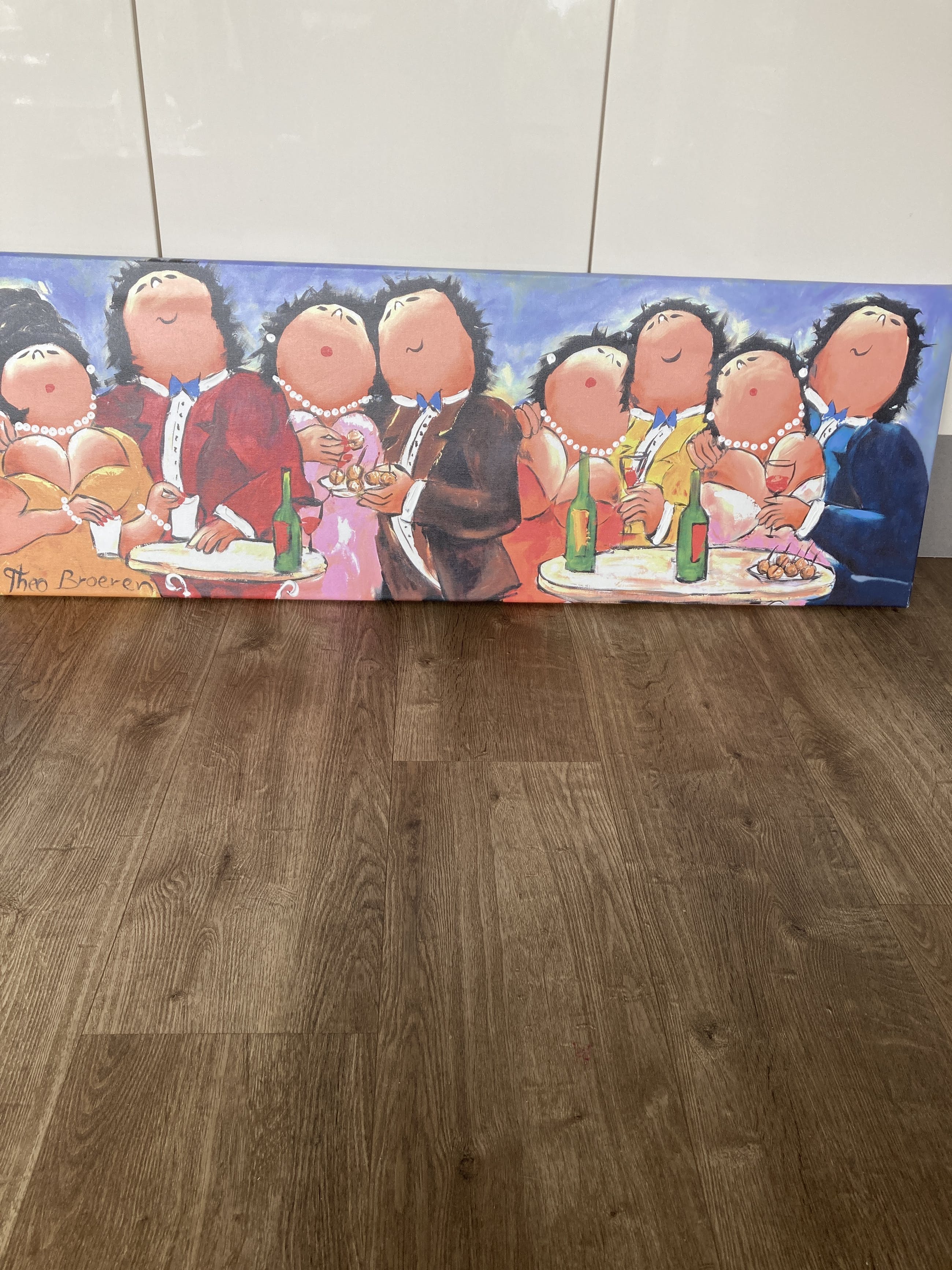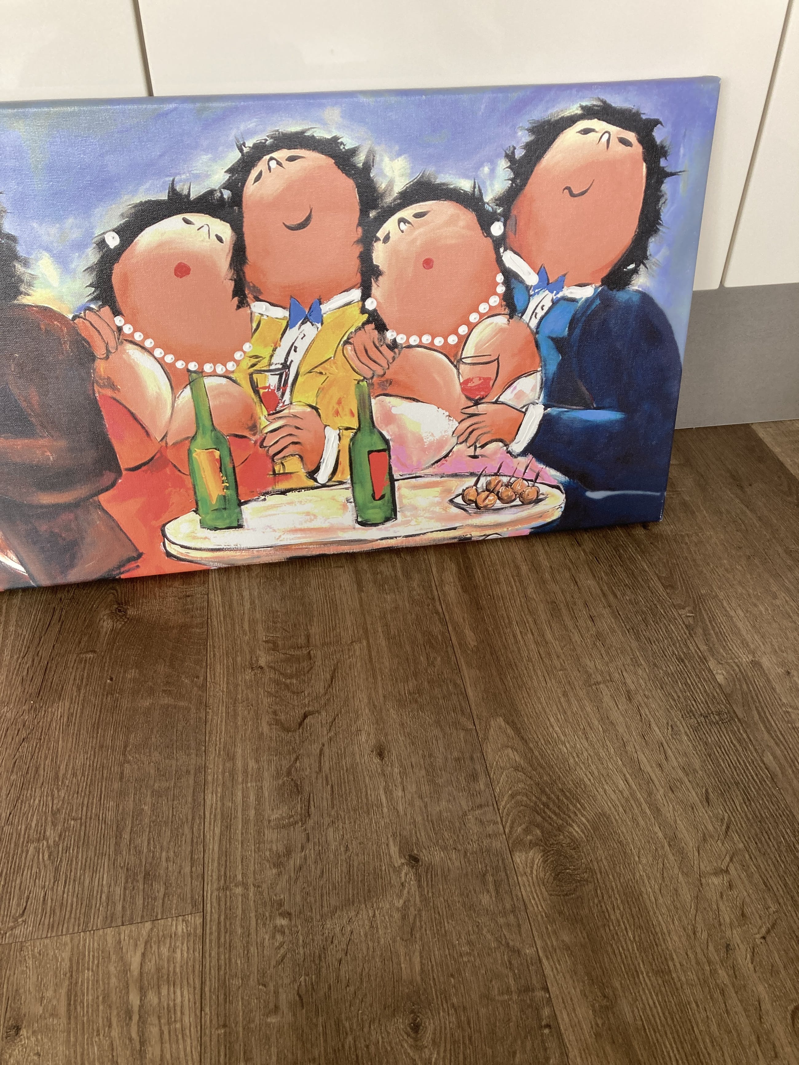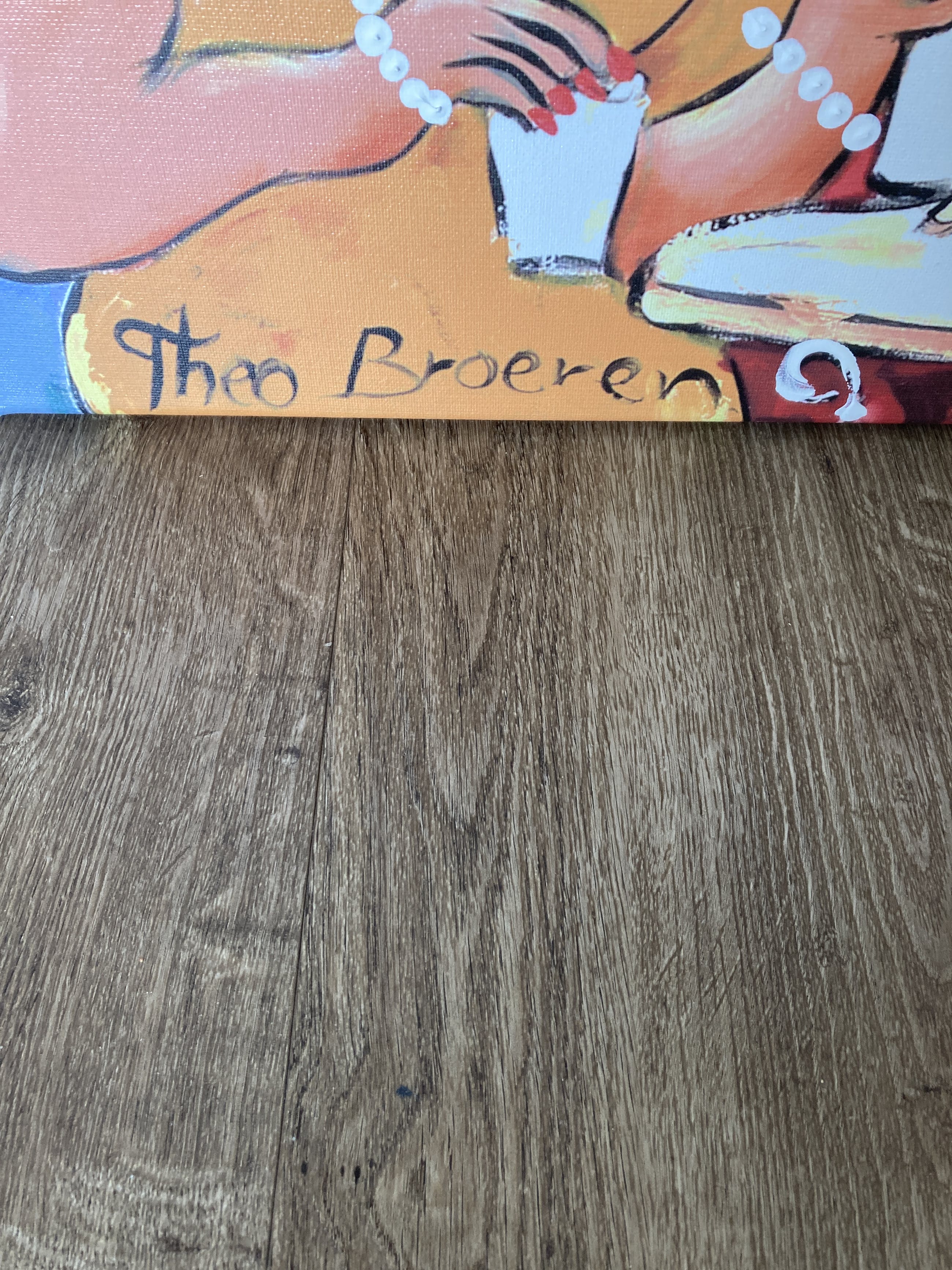 Mooi en kleurrijk schilderij van The Broeren met een typisch Dikke Dames tafereel.