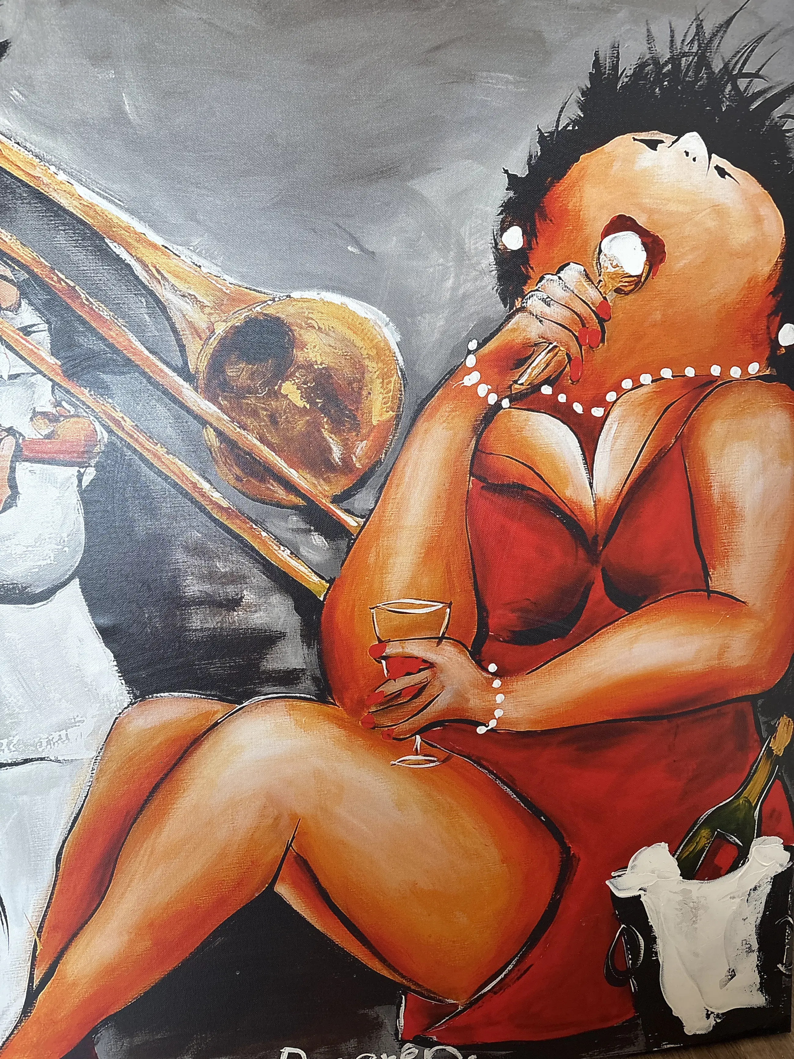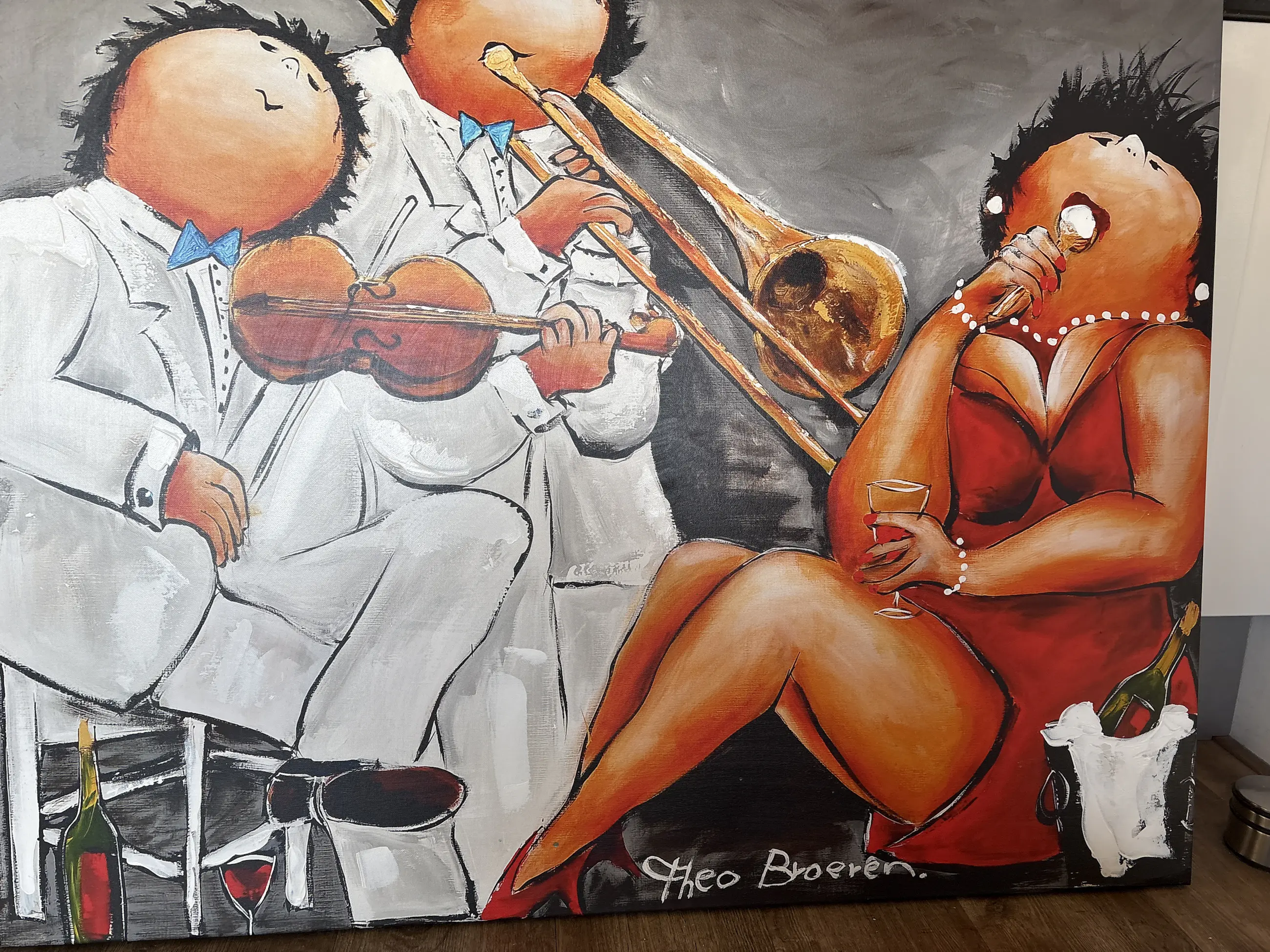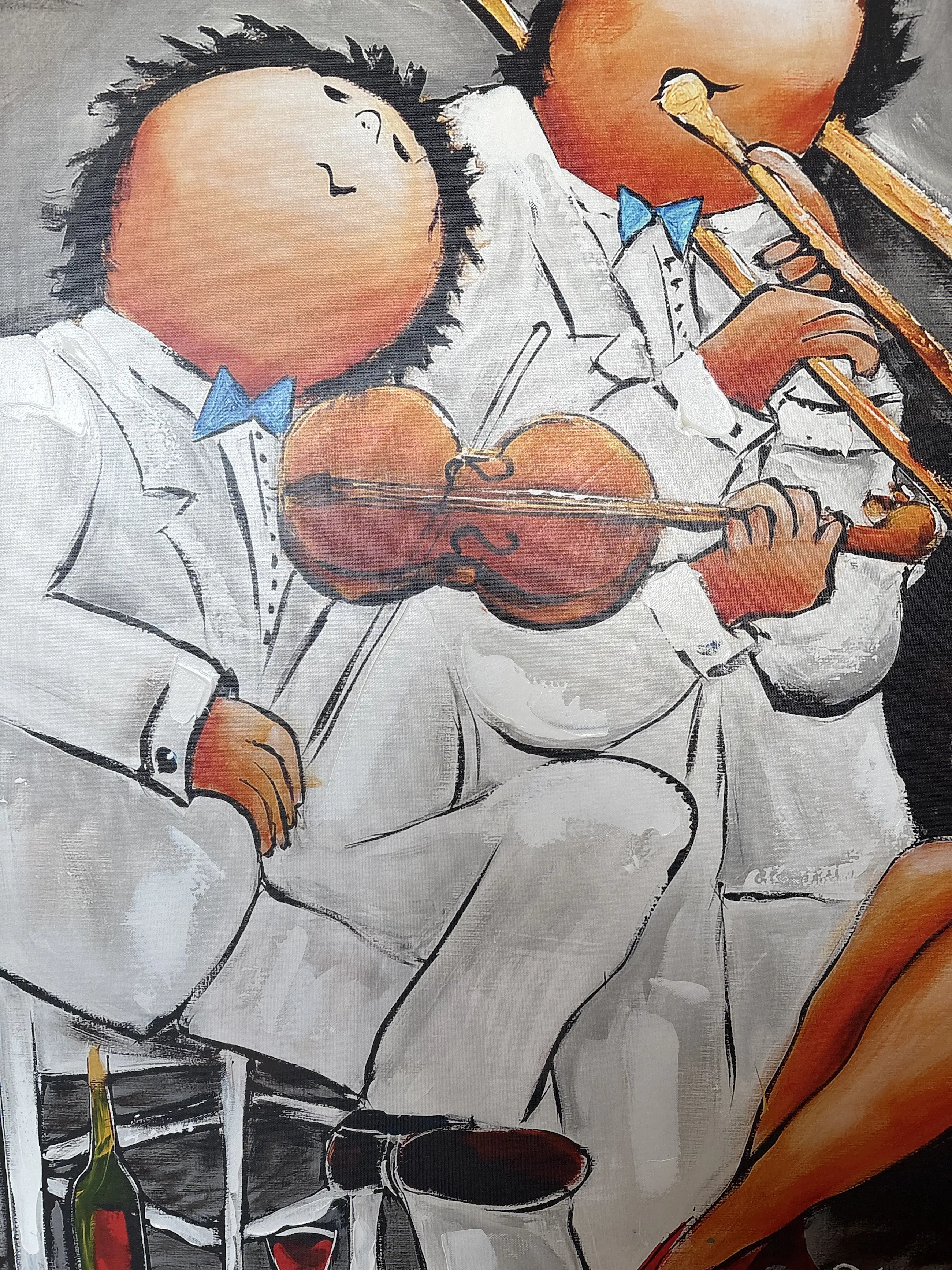 Theo Broeren - Glicée met Acryl op doek “ Muziek spelen “ (ZEER GROOT)
