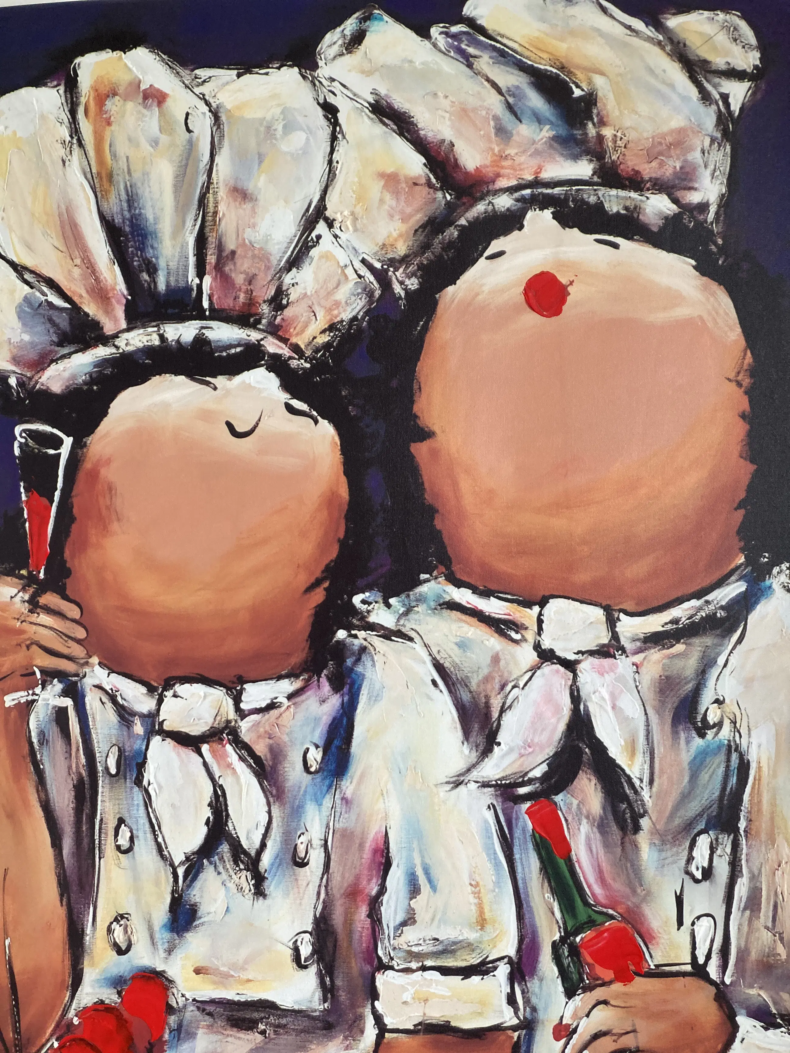 Kleurrijke en vrolijke glicée van Theo Broeren. Echt een plaatje voor in de keuken of voor in een restaurant.