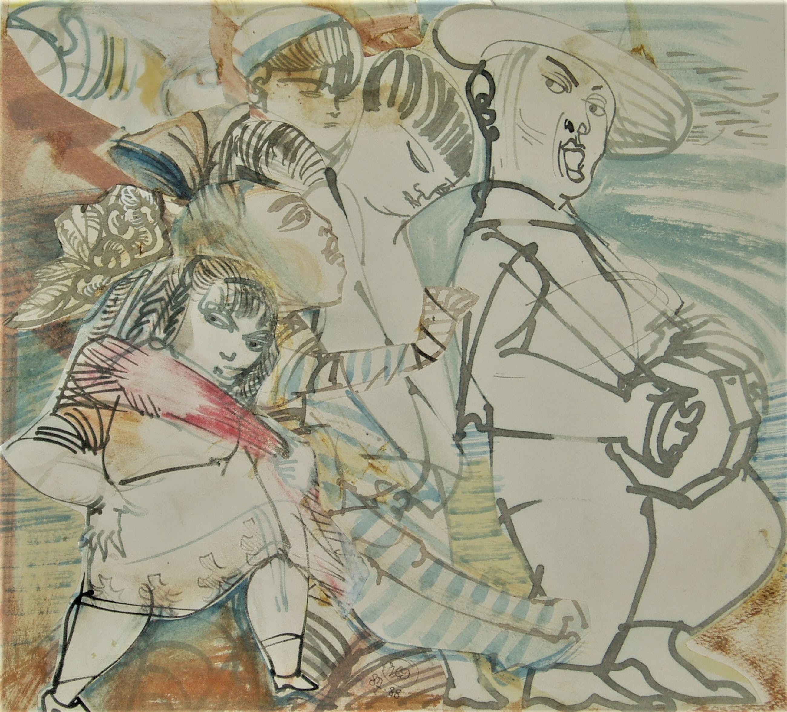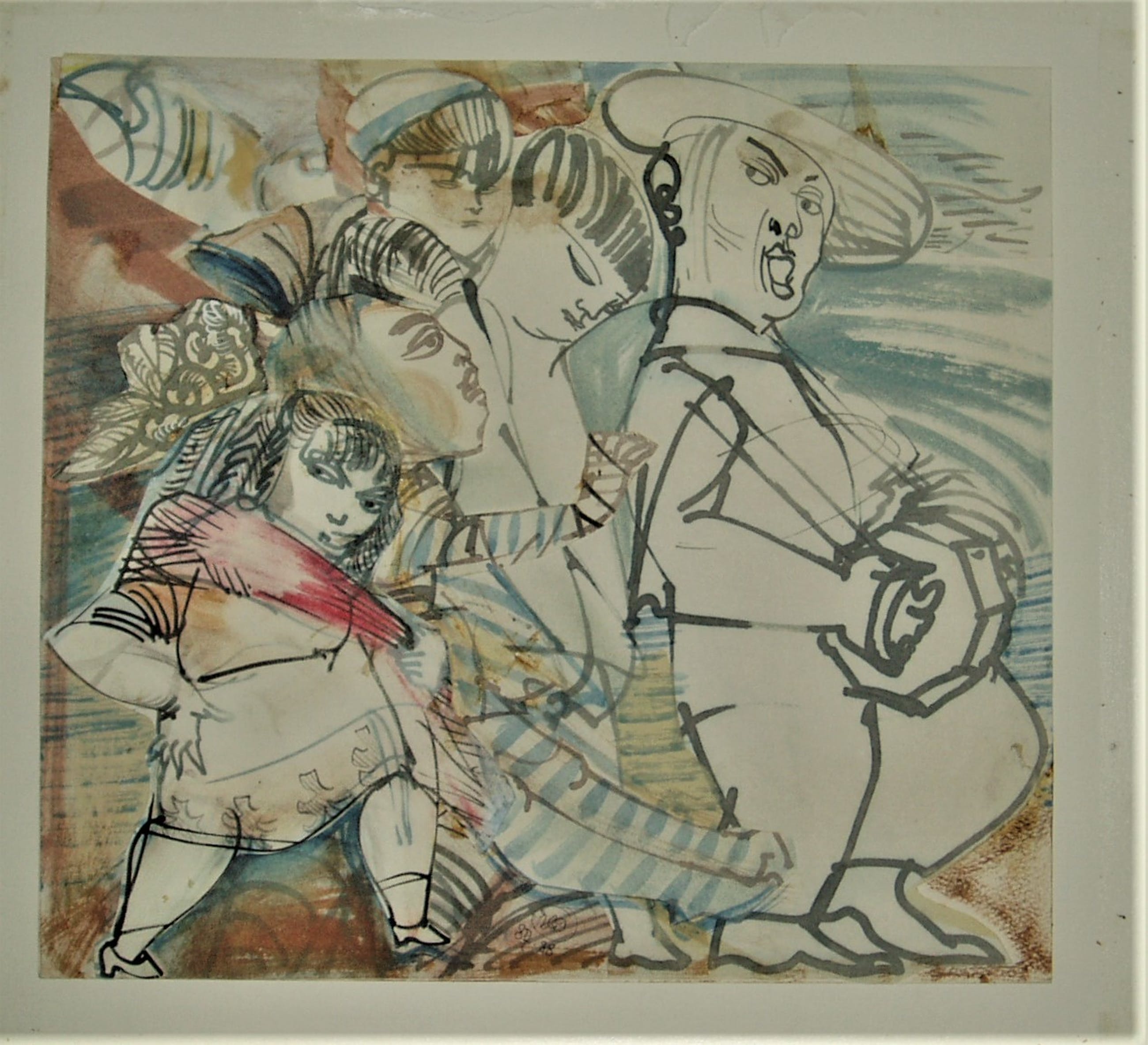| Collage van intekeningen, conditie goed, gemonteerd op harde ondergrond | |||||||||||