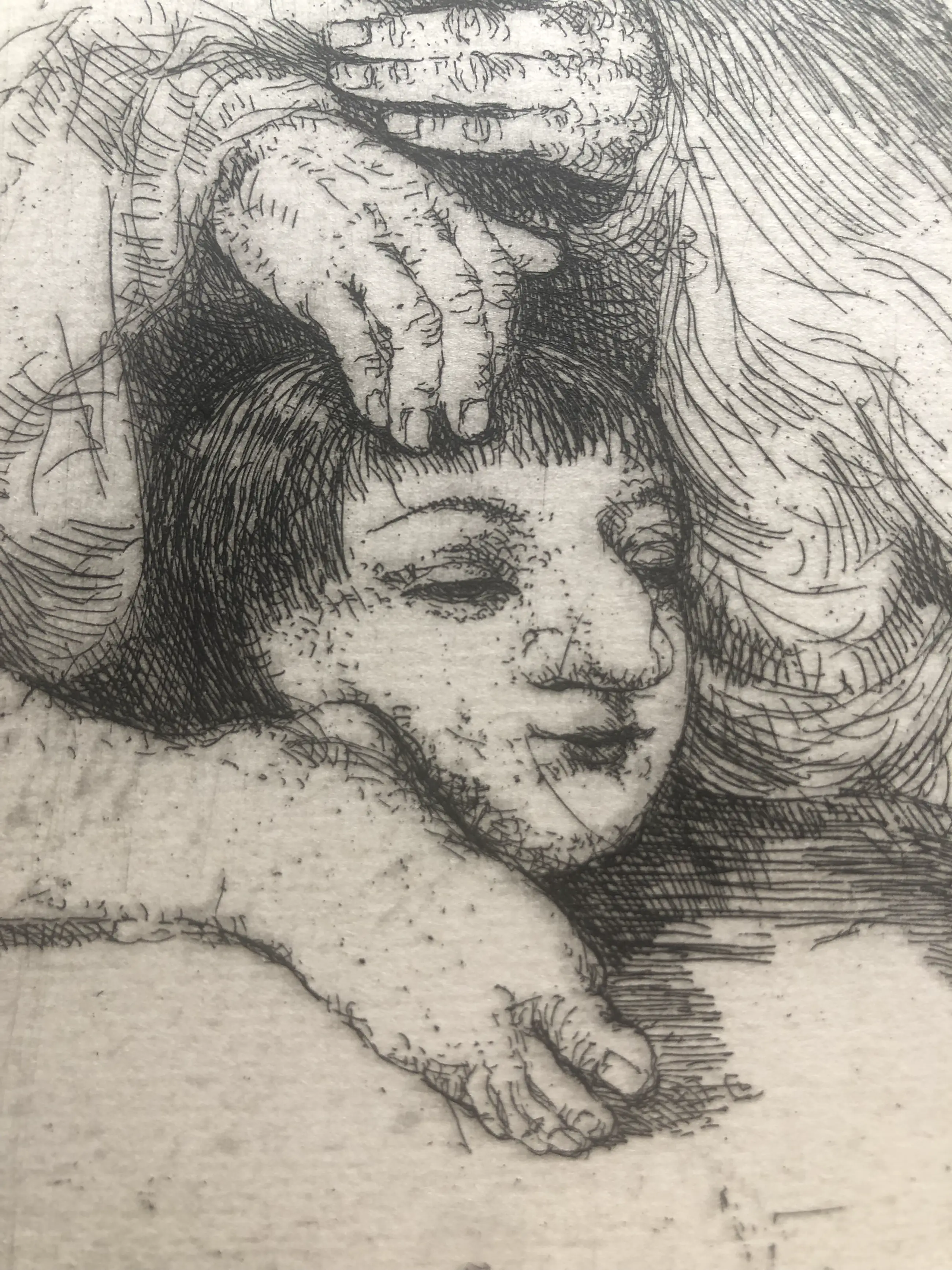 Mooie ets. Afbeelding is 19-16 cm Het blad 31-25 cm