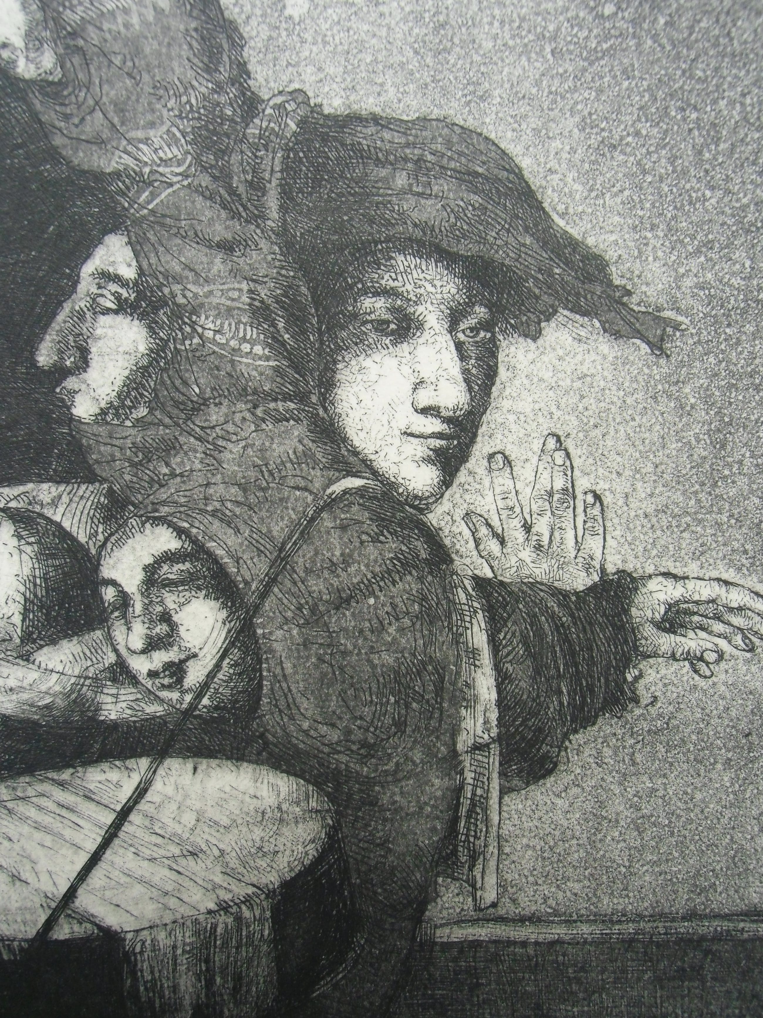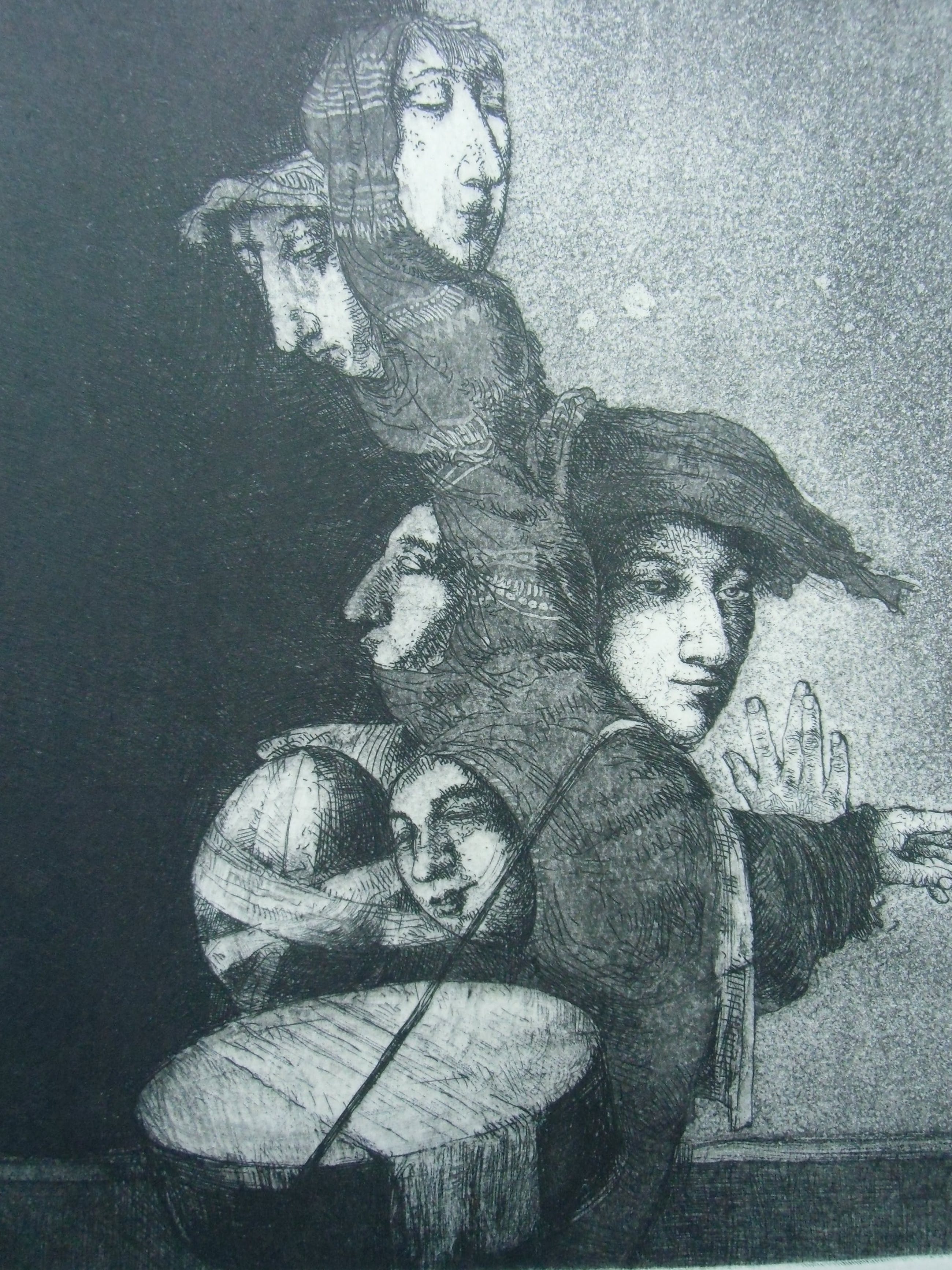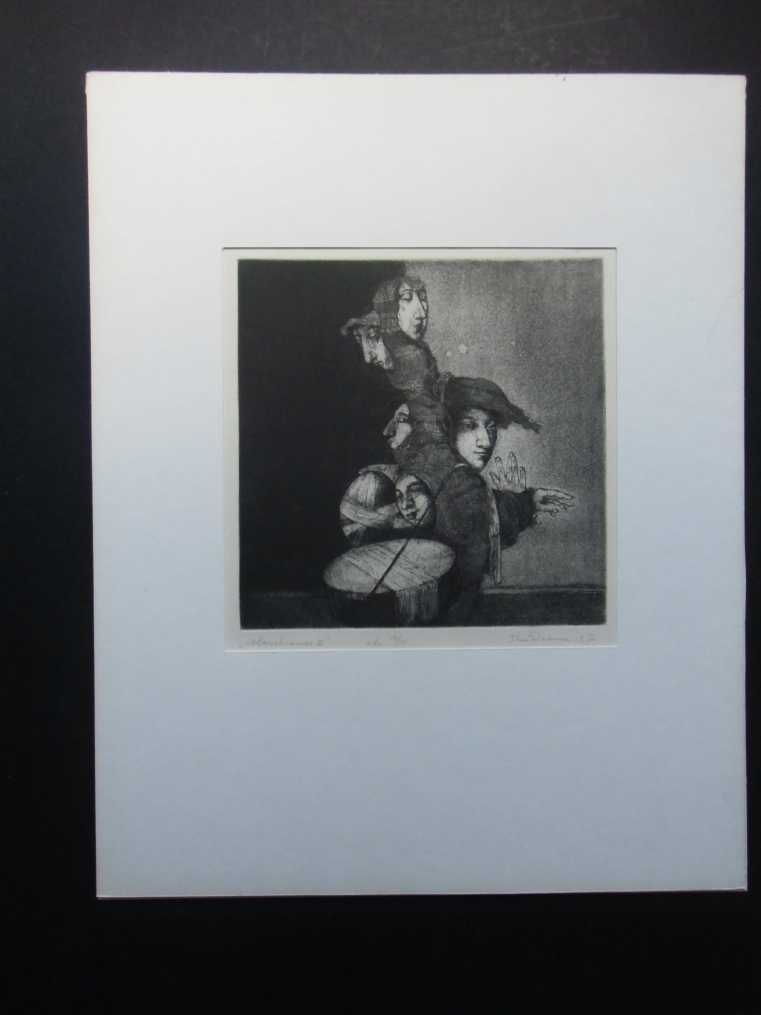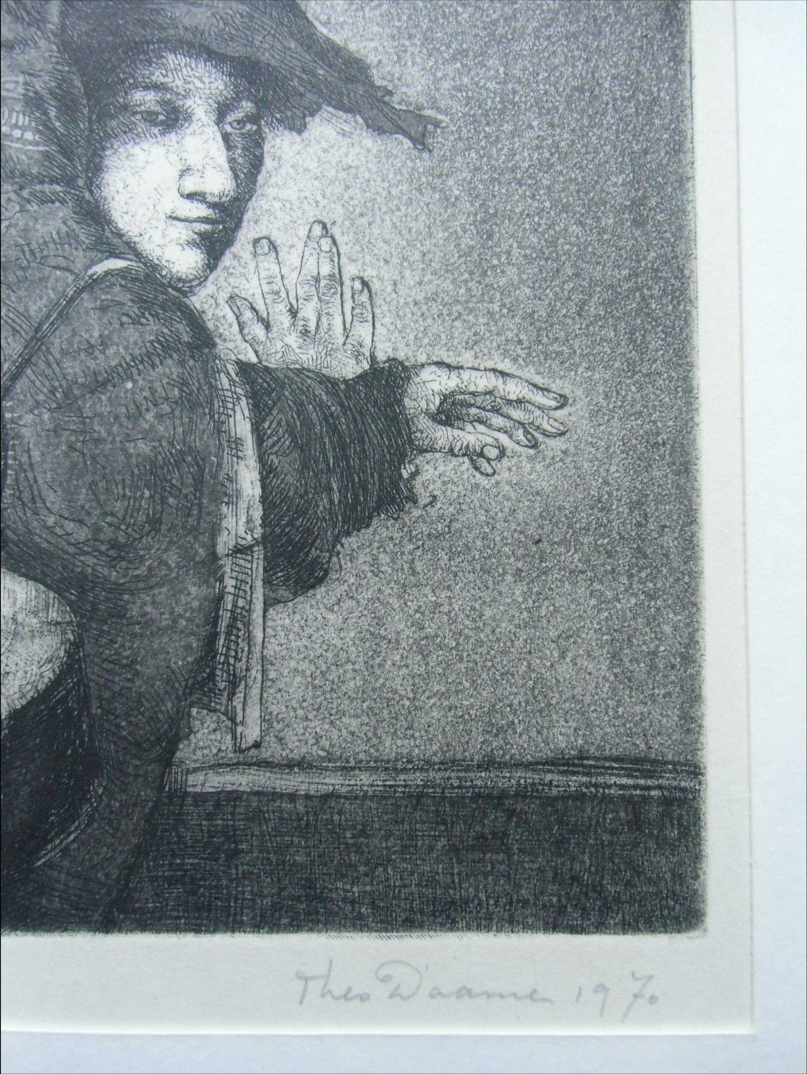 Intrigerende ets uit 1970 van Theo Daamen. Kleine oplage en af gedrukt op geschept papier.