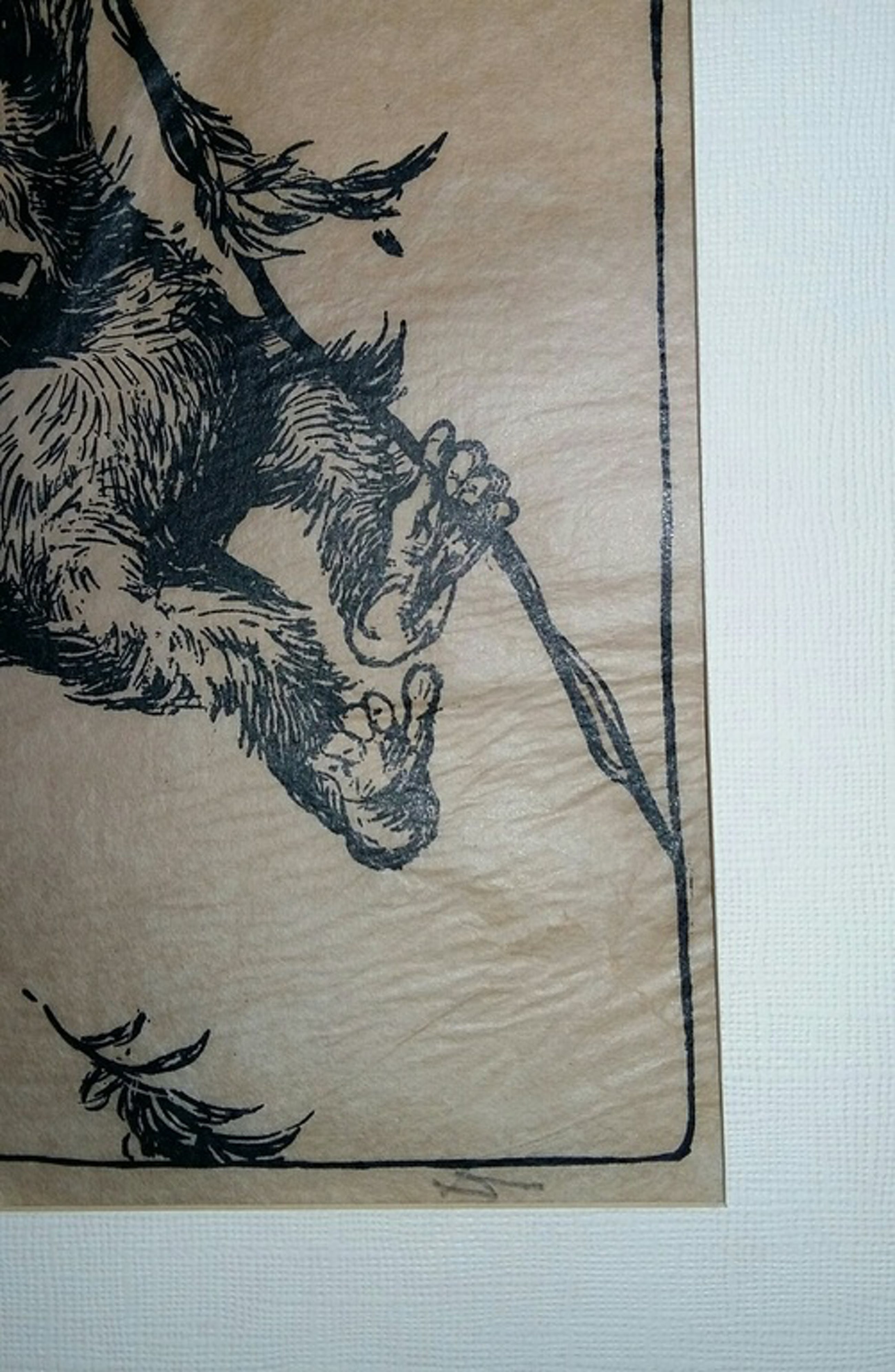 Mooie litho op rijstpapier, links gesigneerd, ´Klimmend aapje´.