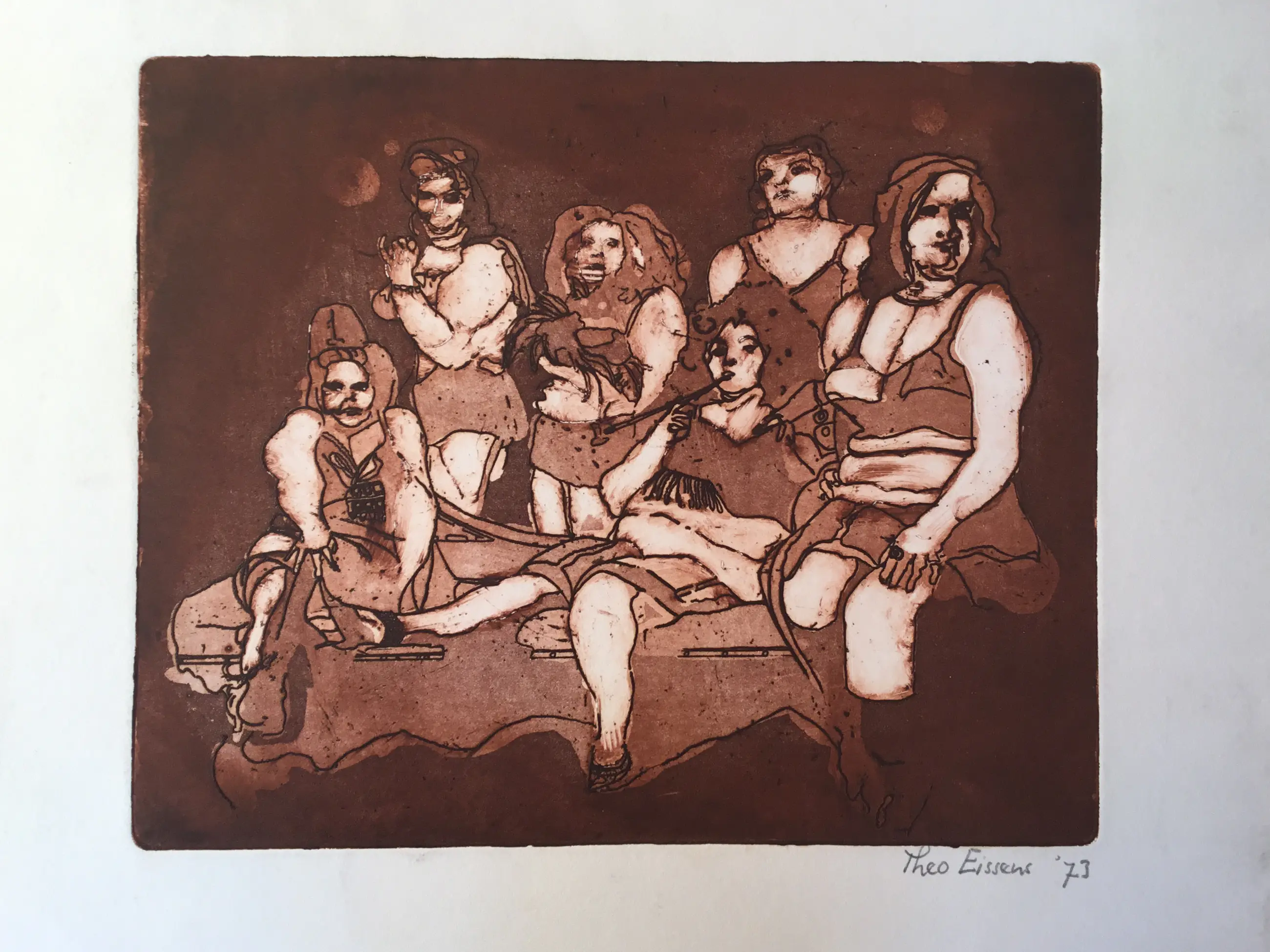 Een vroege ets uit 1973 van de Nederlandse / Amsterdamse kunstenaar Theo Eissens (1952-2015), gemaakt tijdens zijn studietijd aan de Gerrit Rietveld Academie Amsterdam.