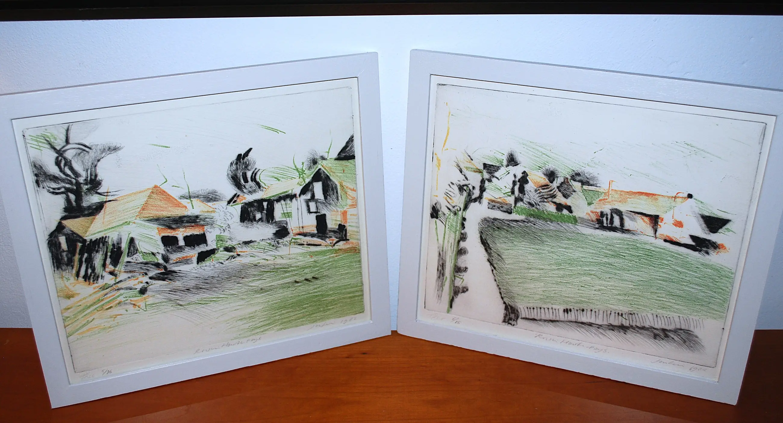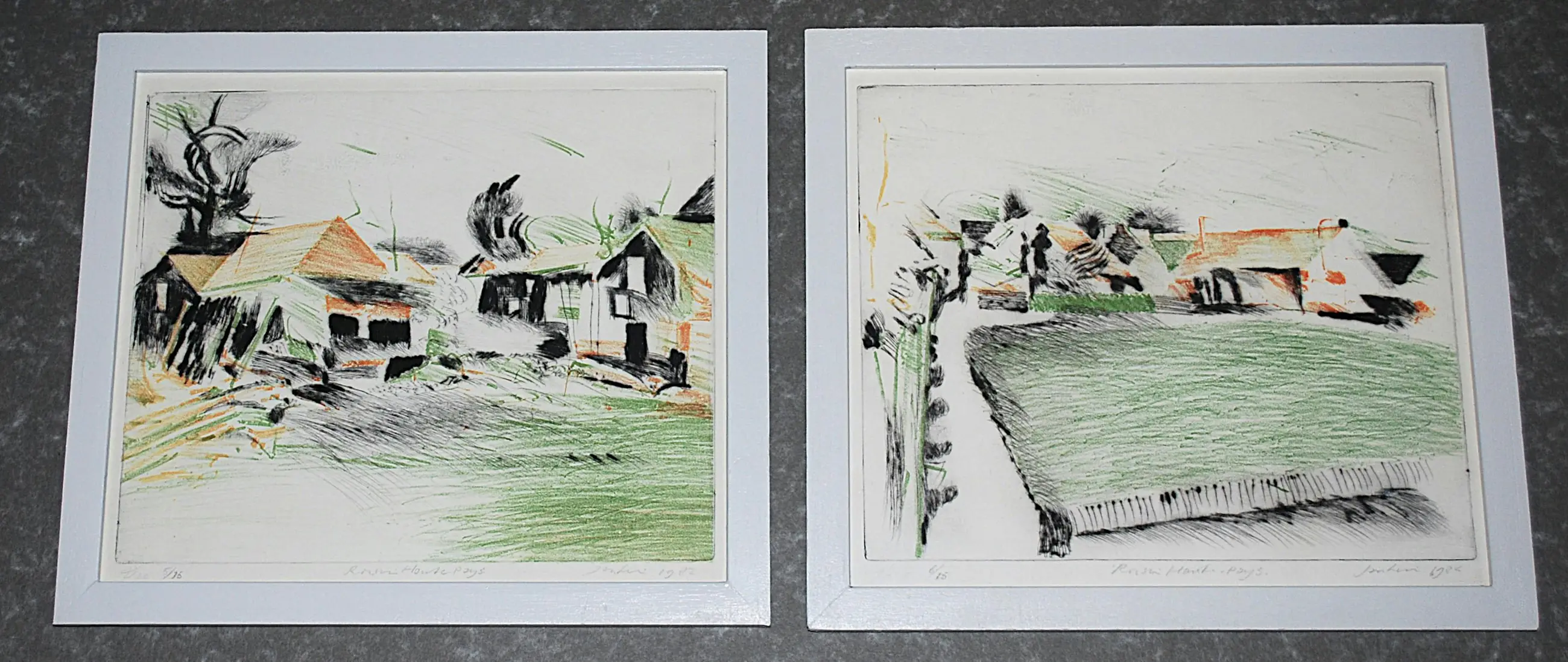 Theo Elfrink - en Jan Hein van Rooij - 2 ingelijste kleuretsen - Roisin-Hauts Pays (FR)