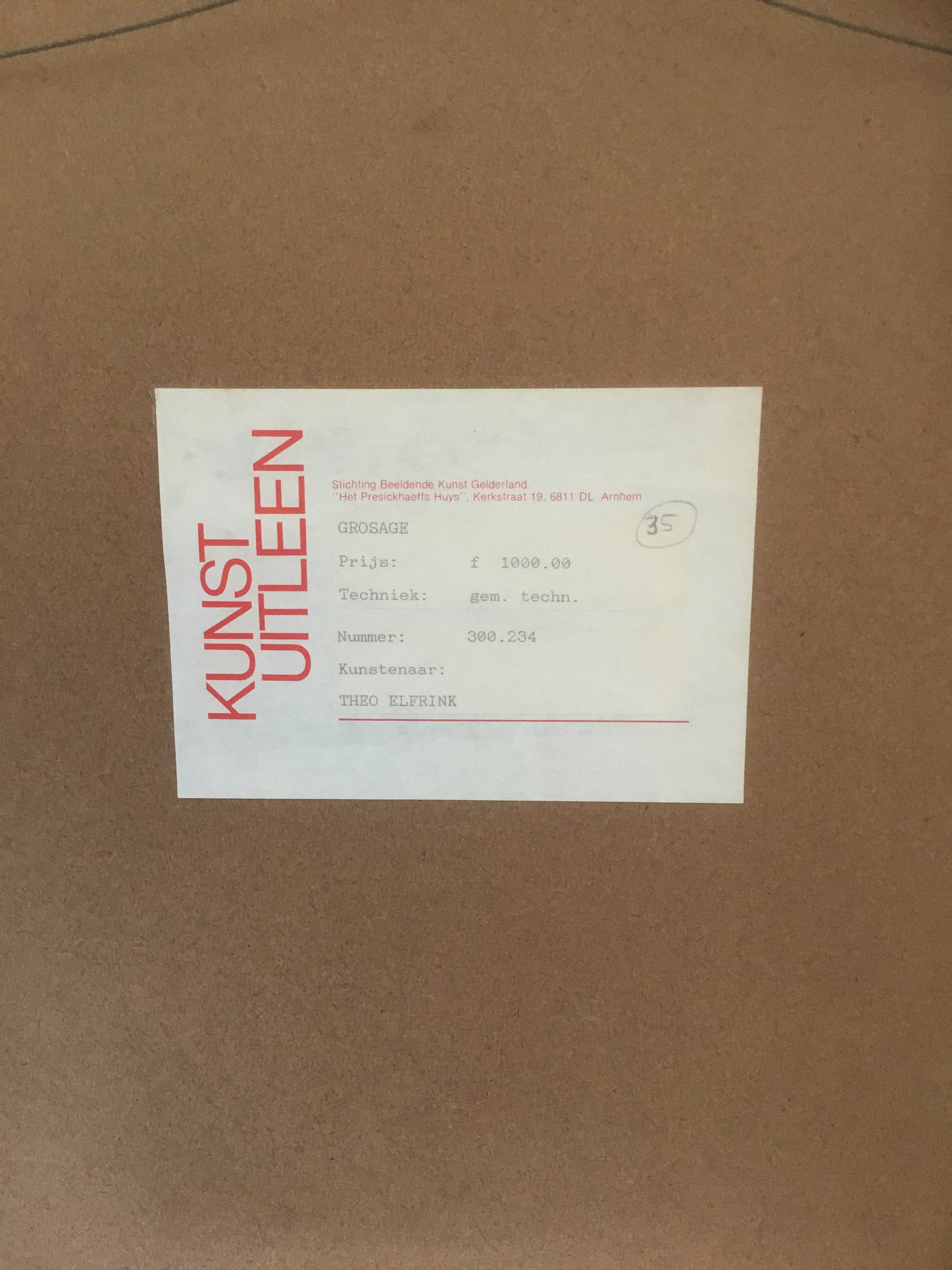Mooi werk van de Gelderse kunstenaar Theo Elfrink. Het werk is een gemengde techniek en in 1991 ingelijst door “Barth lijsten”