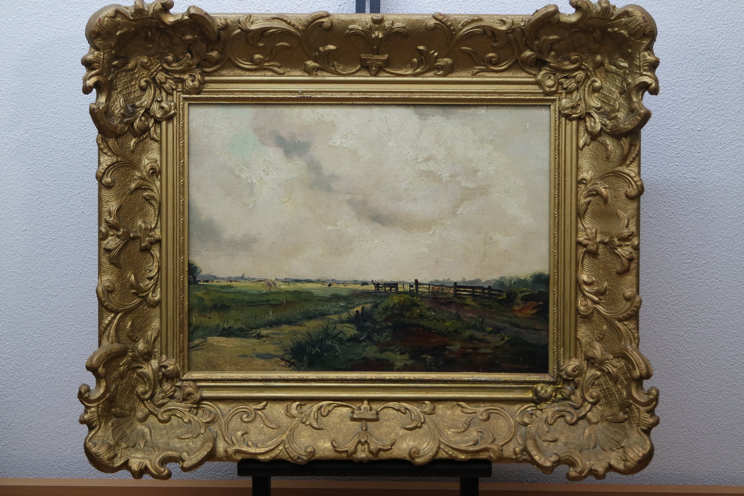 Een schitterend landschapsschilderij (maroufle, olieverf op doek op paneel) van de Nederlandse kunstschilder Theo Goedvriend (1879-1969). Gesigneerd rechts onder. Het kunstwerk is heel mooi gelijst. De conditie van het werk is goed. Het kunstwerk wordt geleverd met een echtheidscertificaat en de verzending is gratis binnen Nederland.