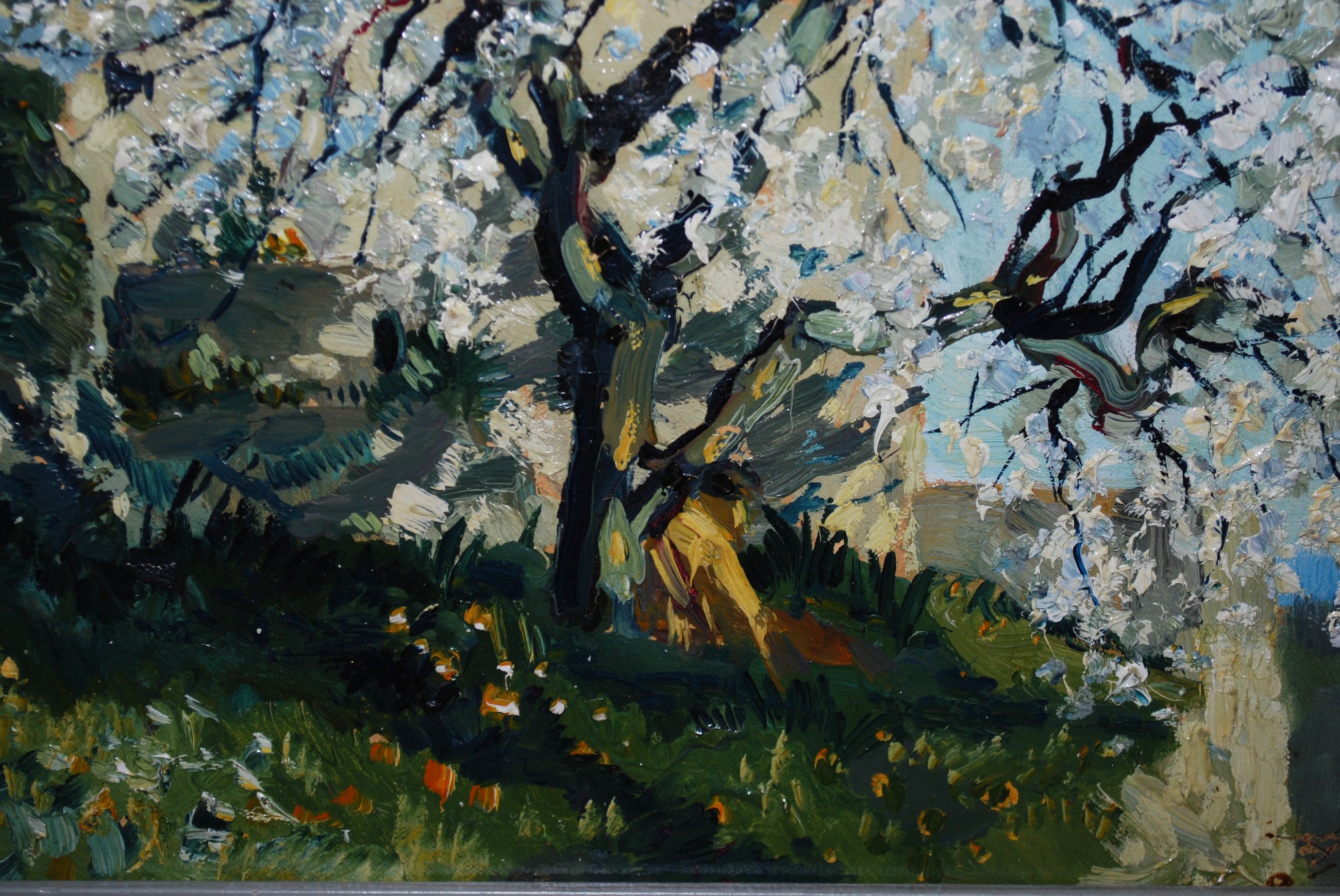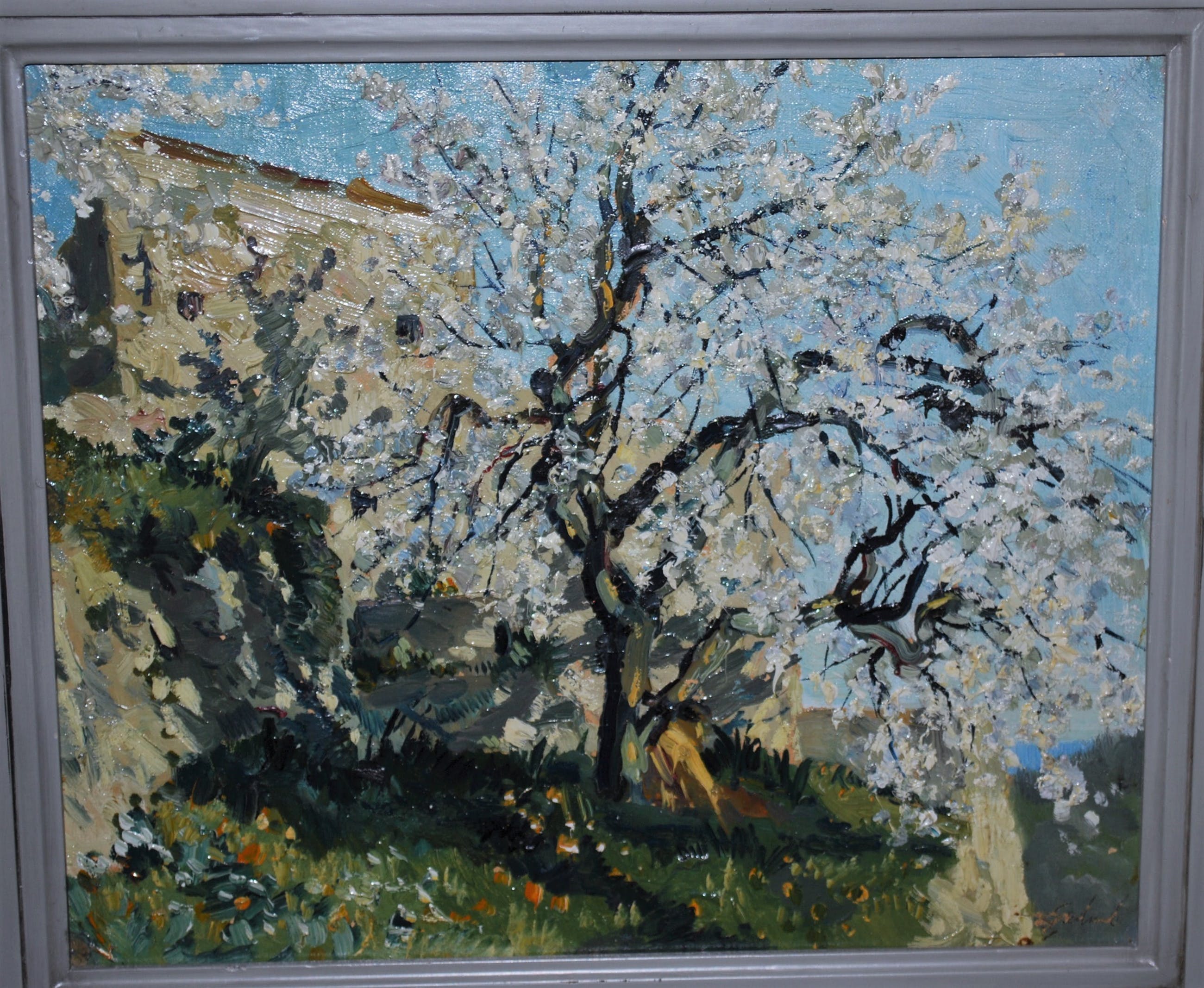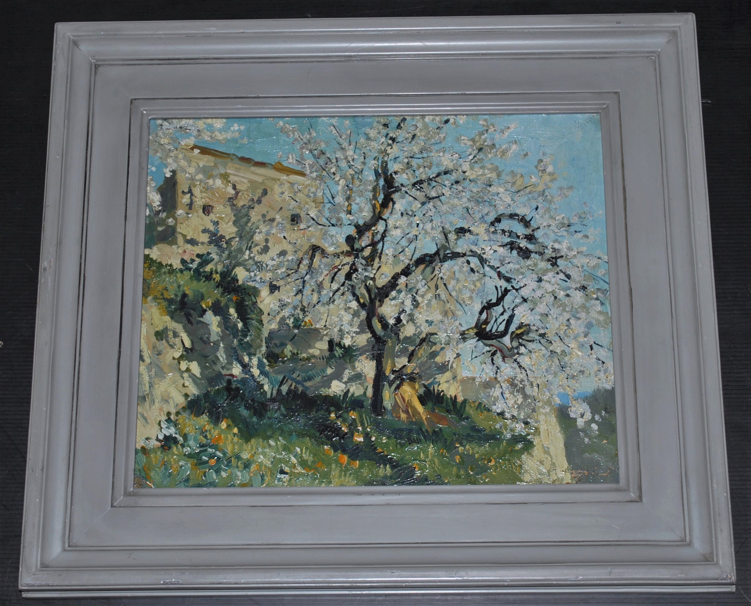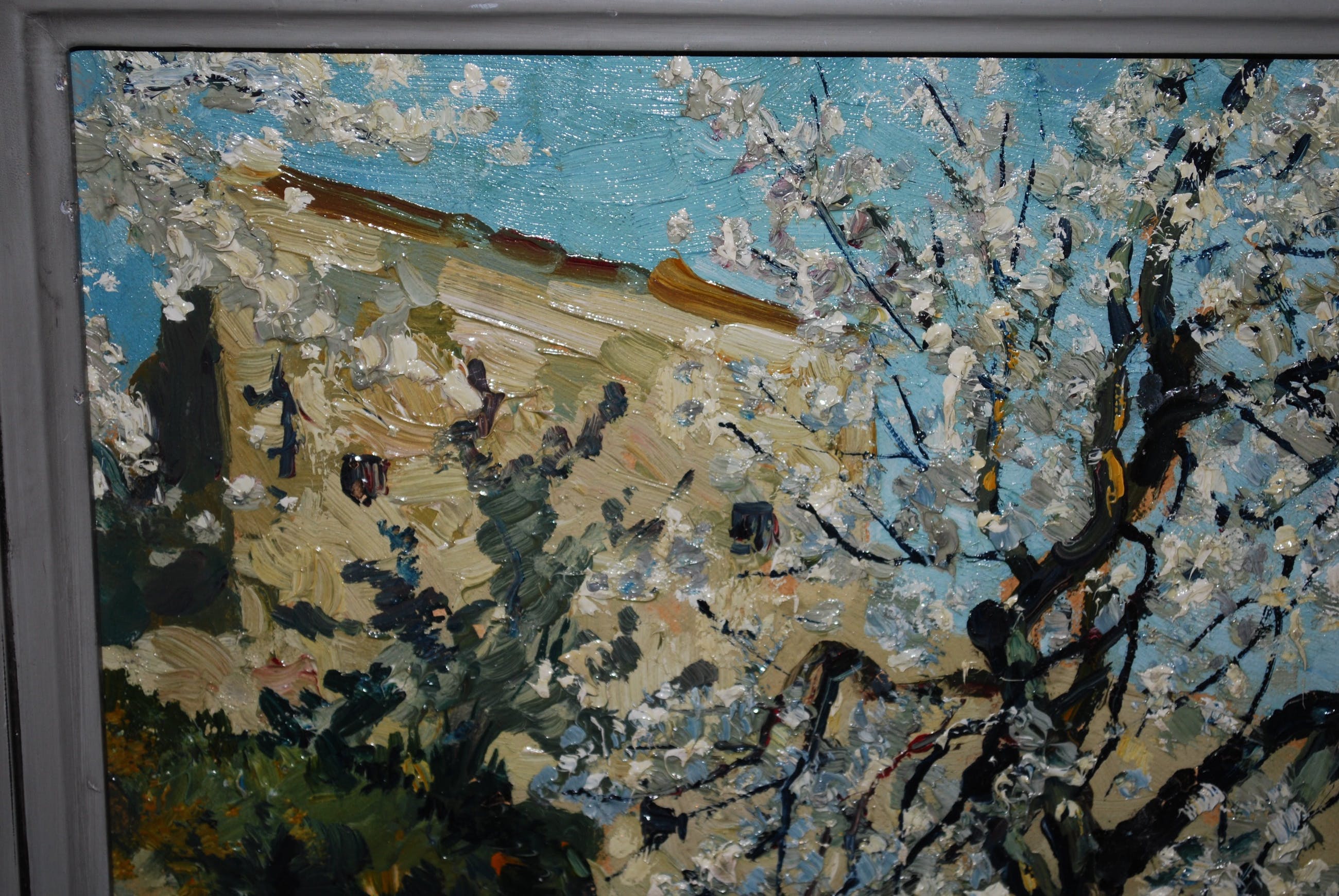 olieverf op olieverfpapier, bevestigd op triplex. Het werk is zeer waarschijnlijk 'plein air' geschilderd, aangezien de hoeken en randen nog de punaisegaatjes hebben. Het werk heeft enkele kleine retouches. De laatste foto toont een vergelijkbaar werk welke te koop staat bij een bekende kunsthandel, de prijs liegt er niet om.