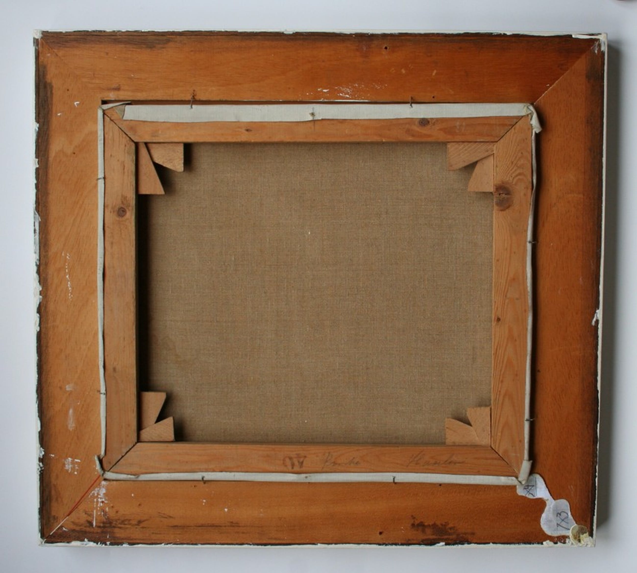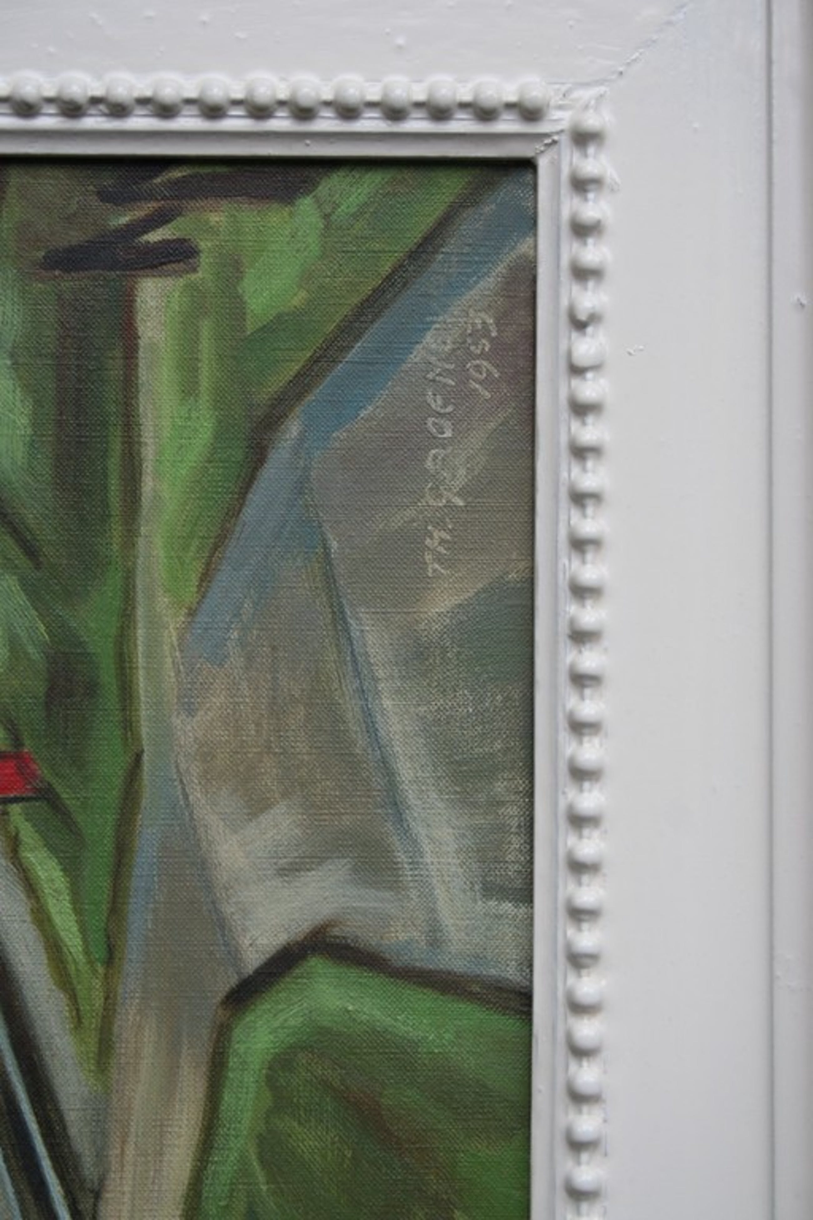 Schilderij in houten lijst. Afmeting met lijst 54 x 48,5 cm. Schilderij meet 40,5 x 35. Gesigneerd en uit jaar 1953. Een lijsthoek is iets slordig verlijmd, zie foto. Schilderij is in goede conditie.
