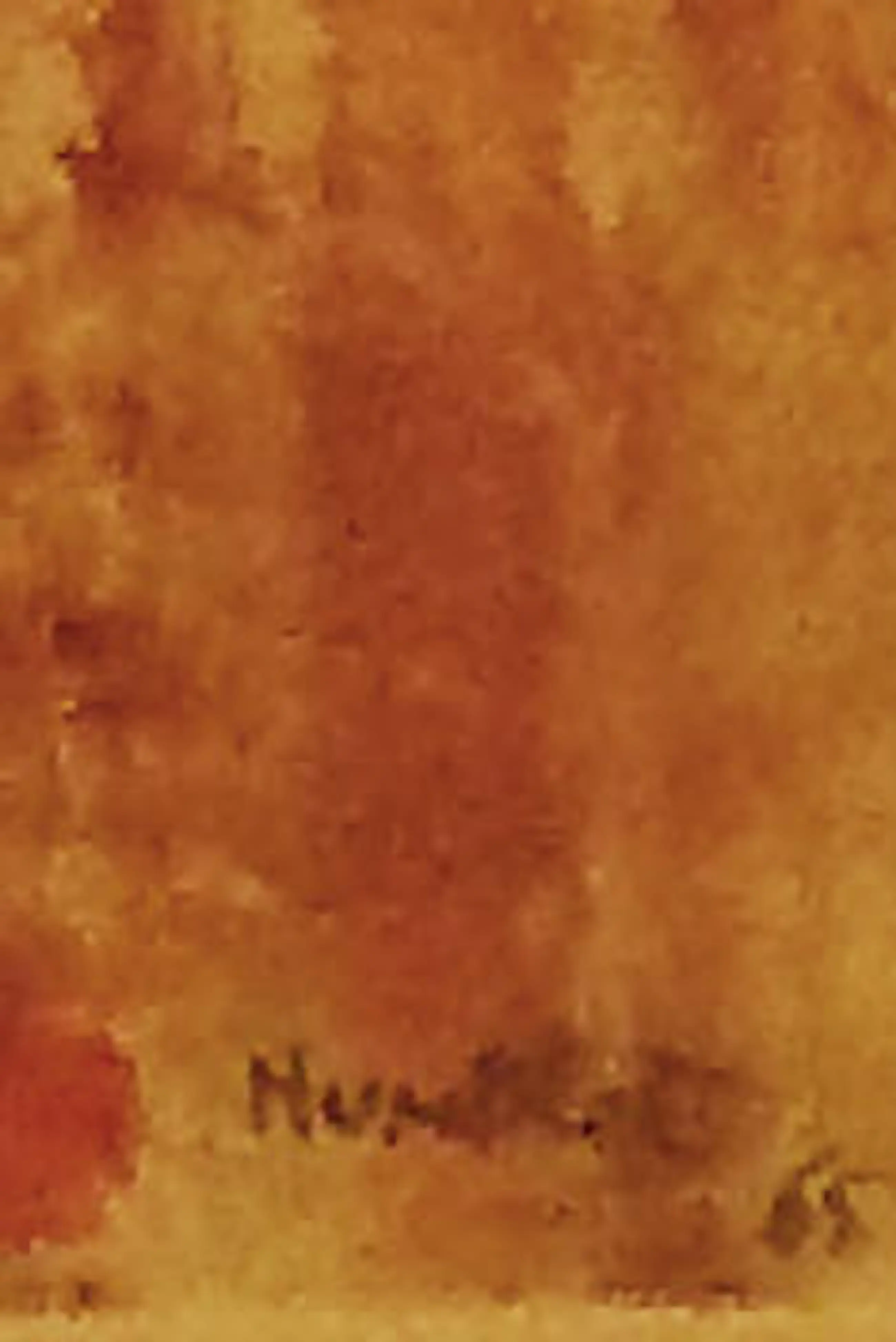 Het werk, meer dan 50 jaar oud, zit onder glas en is in zeer goede conditie.Passe-partout (vergeeld) en kader zouden een 'update' kunnen gebruiken.