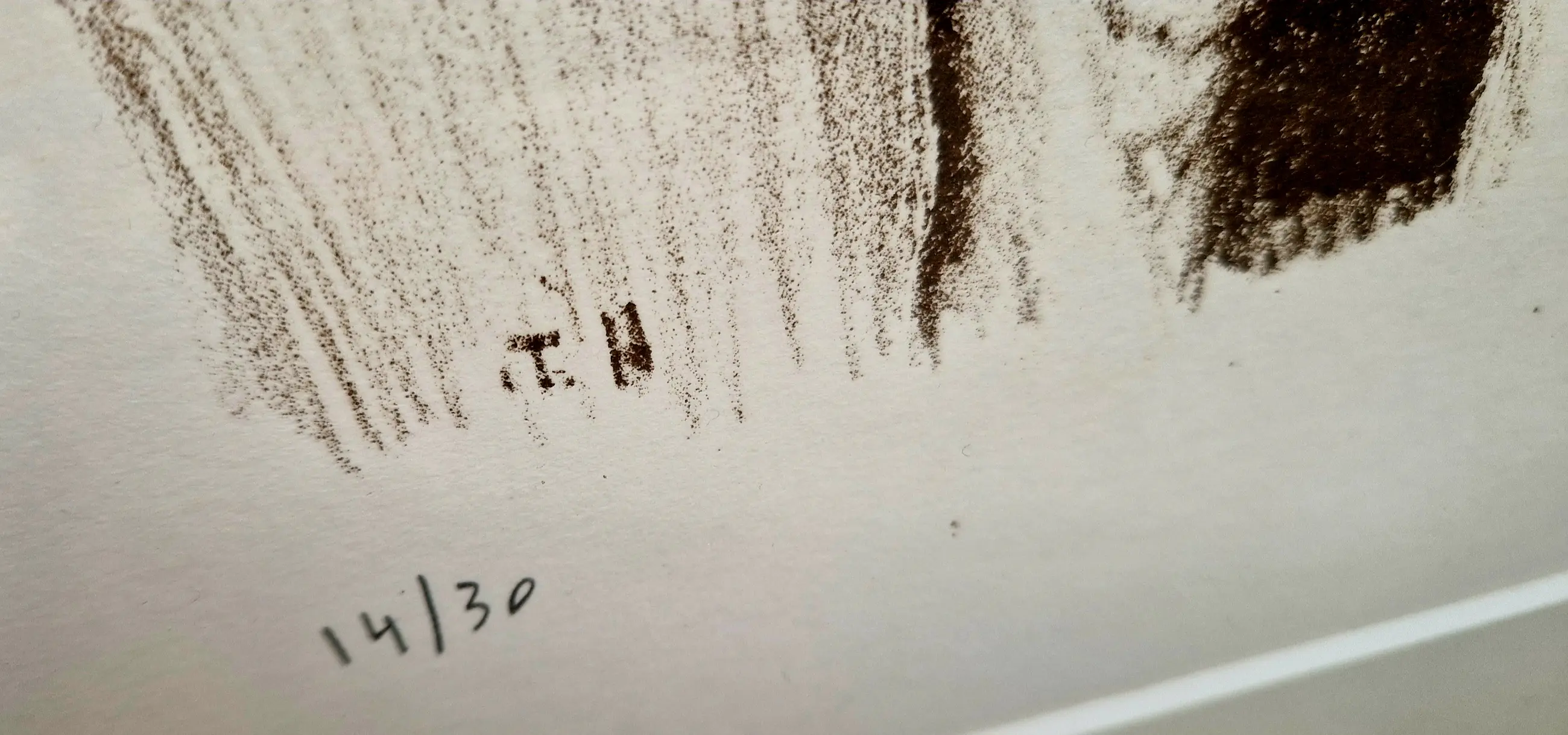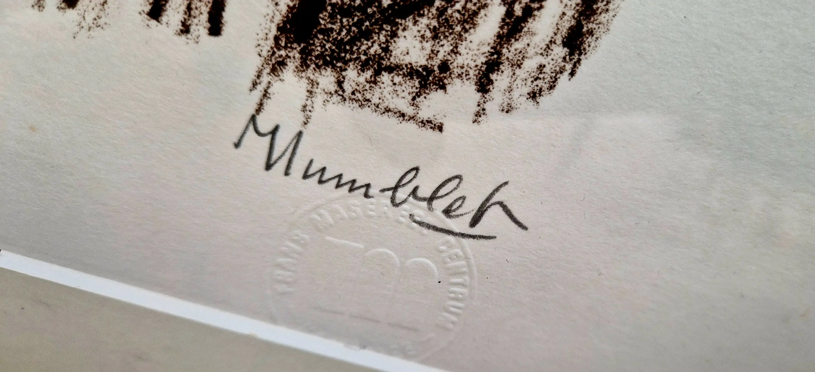 Fraaie monochrome litho in bruintinten van de Leuvense kunstenaar Theo Humblet. Handgesigneerd, genummerd 14/30, met monogram en stempel Centraal Frans Masereel.