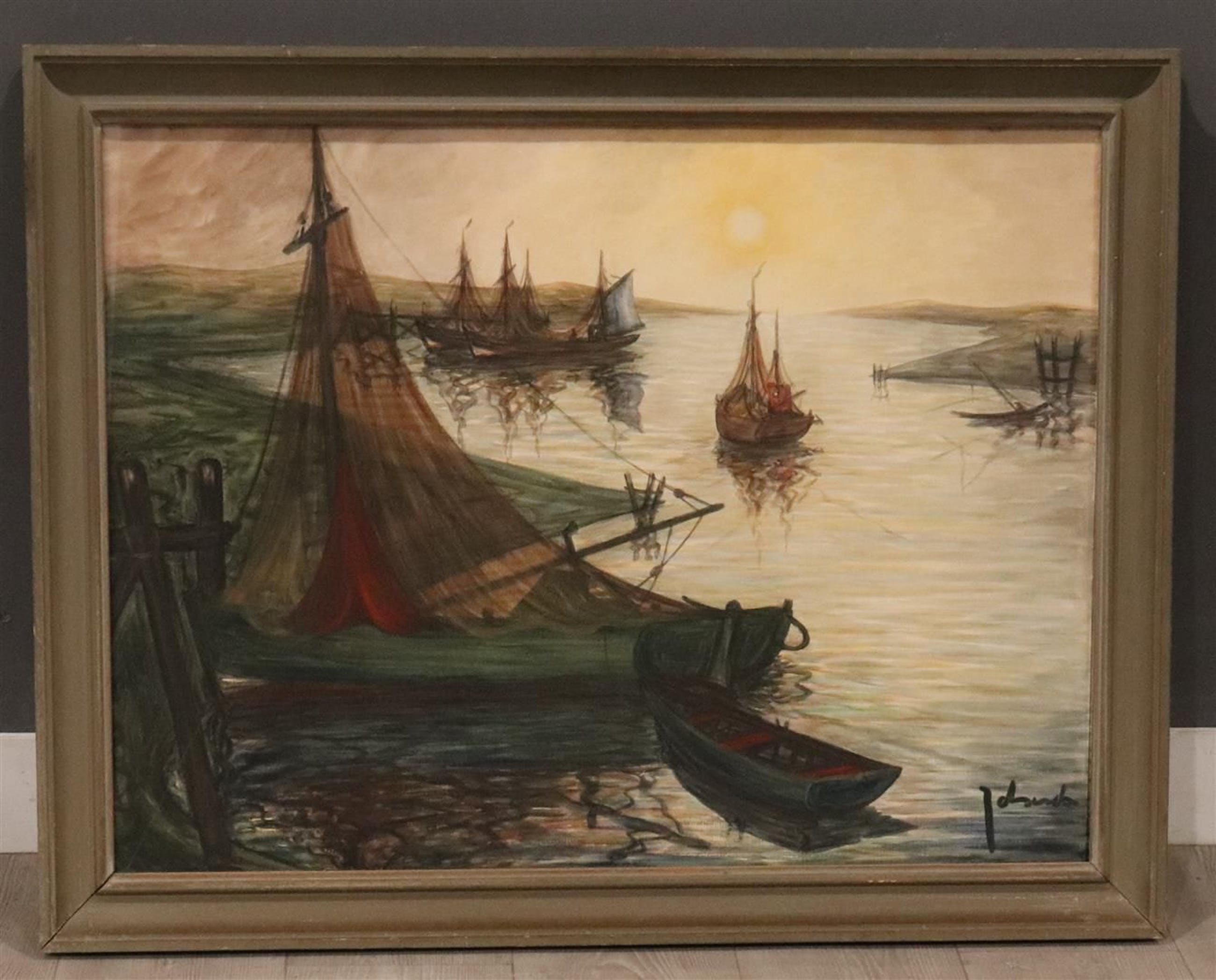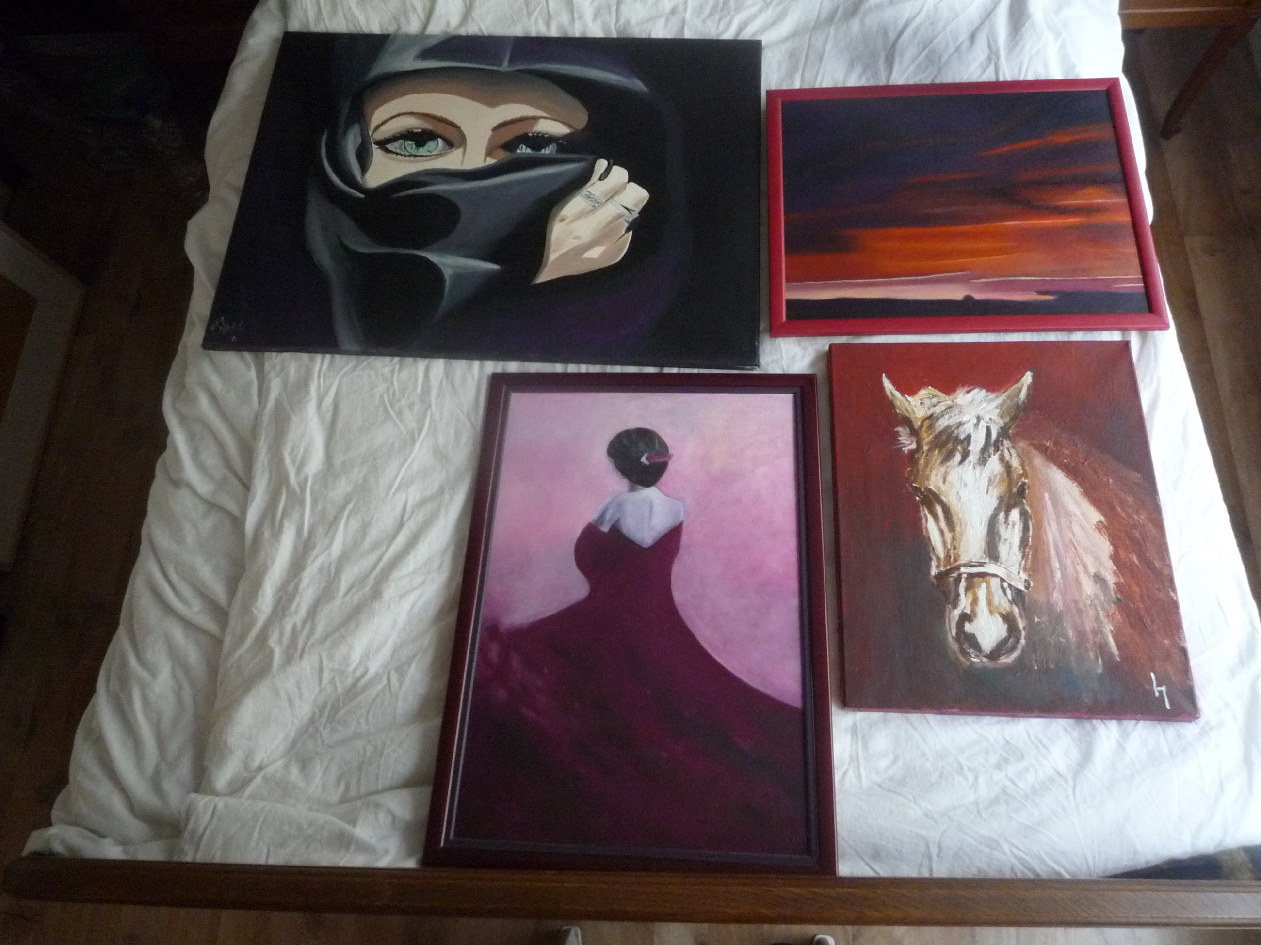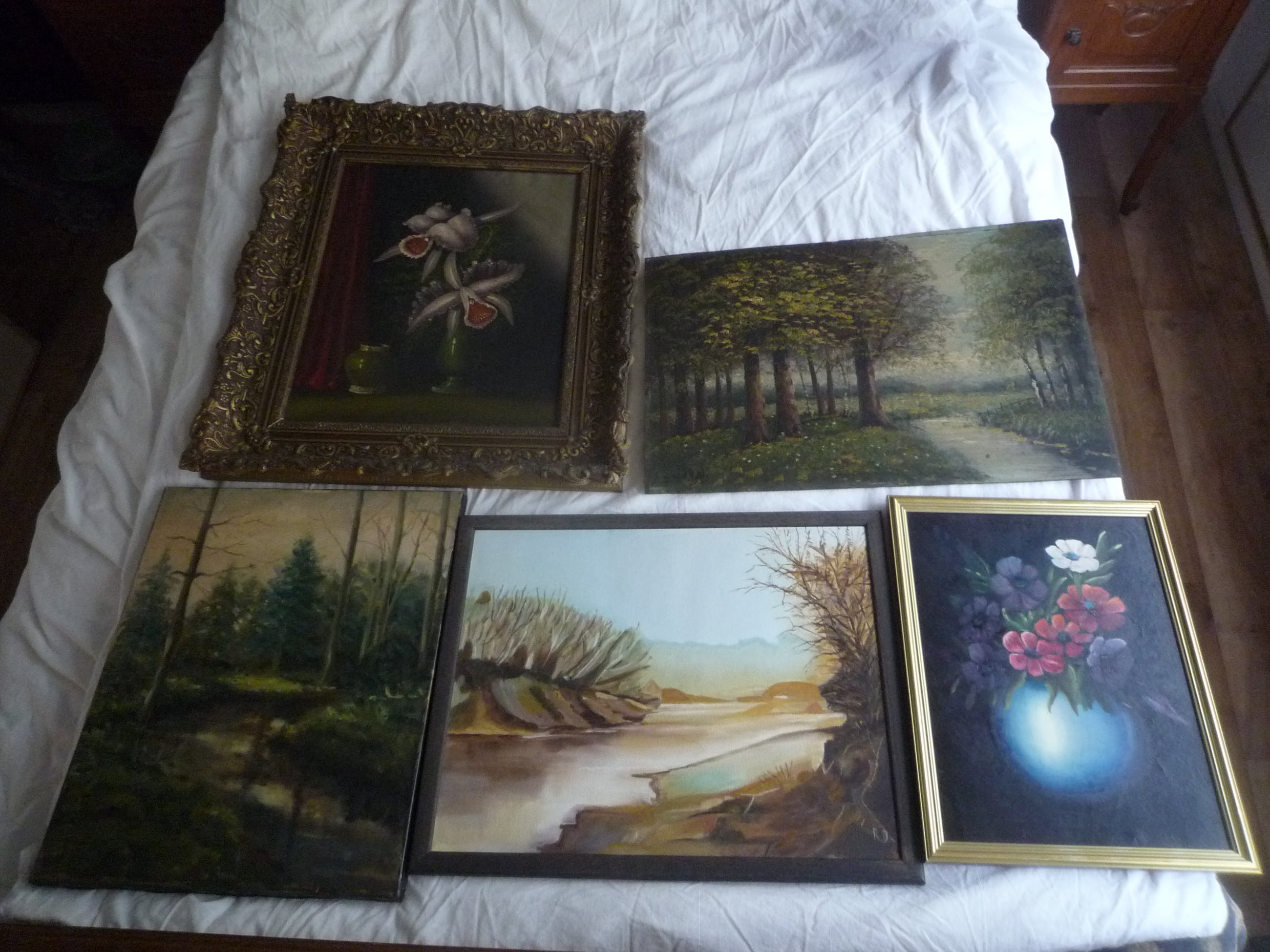 1 grote ingelijste aquarel van Theo Idserda en nog 9 werken van diverse voor mij niet te achterhalen kunstenaars. De helft gesigneerd (zie foto's)