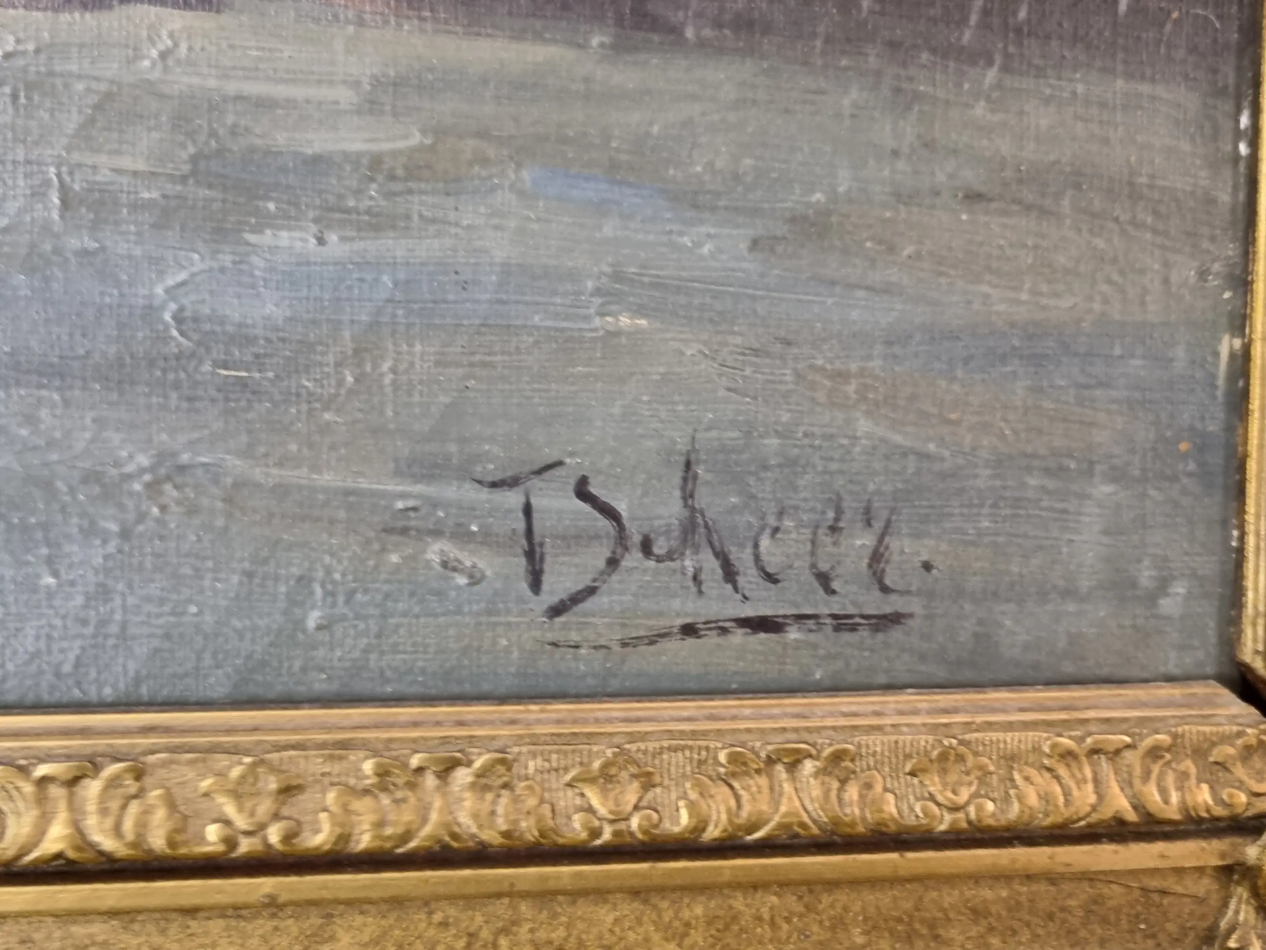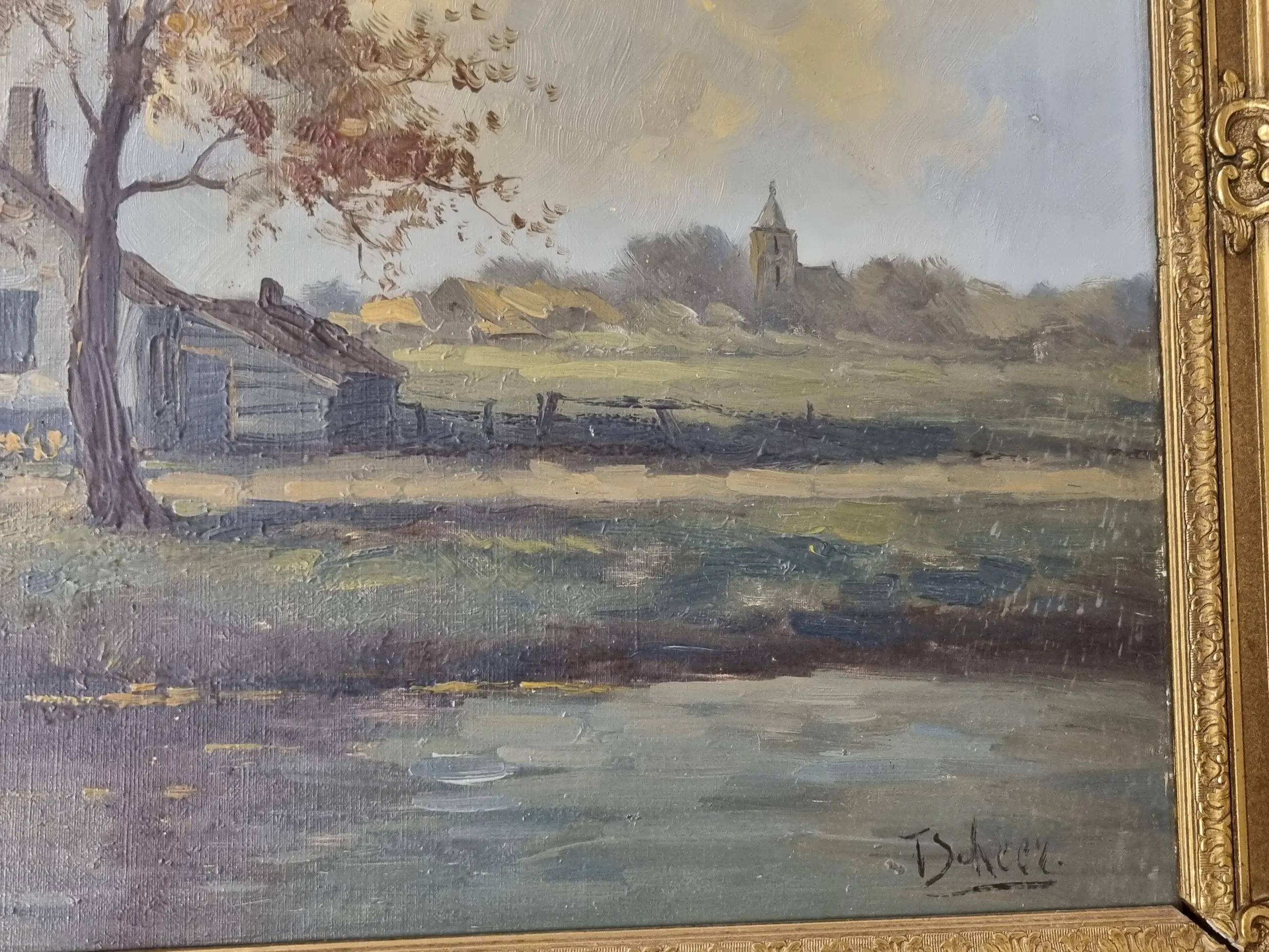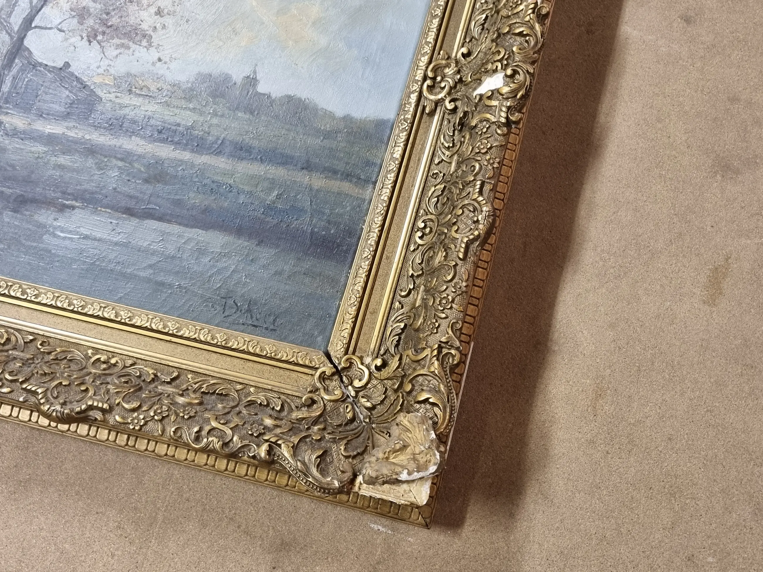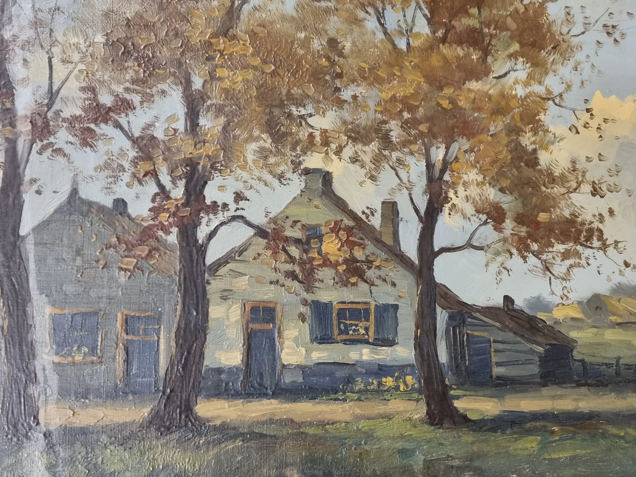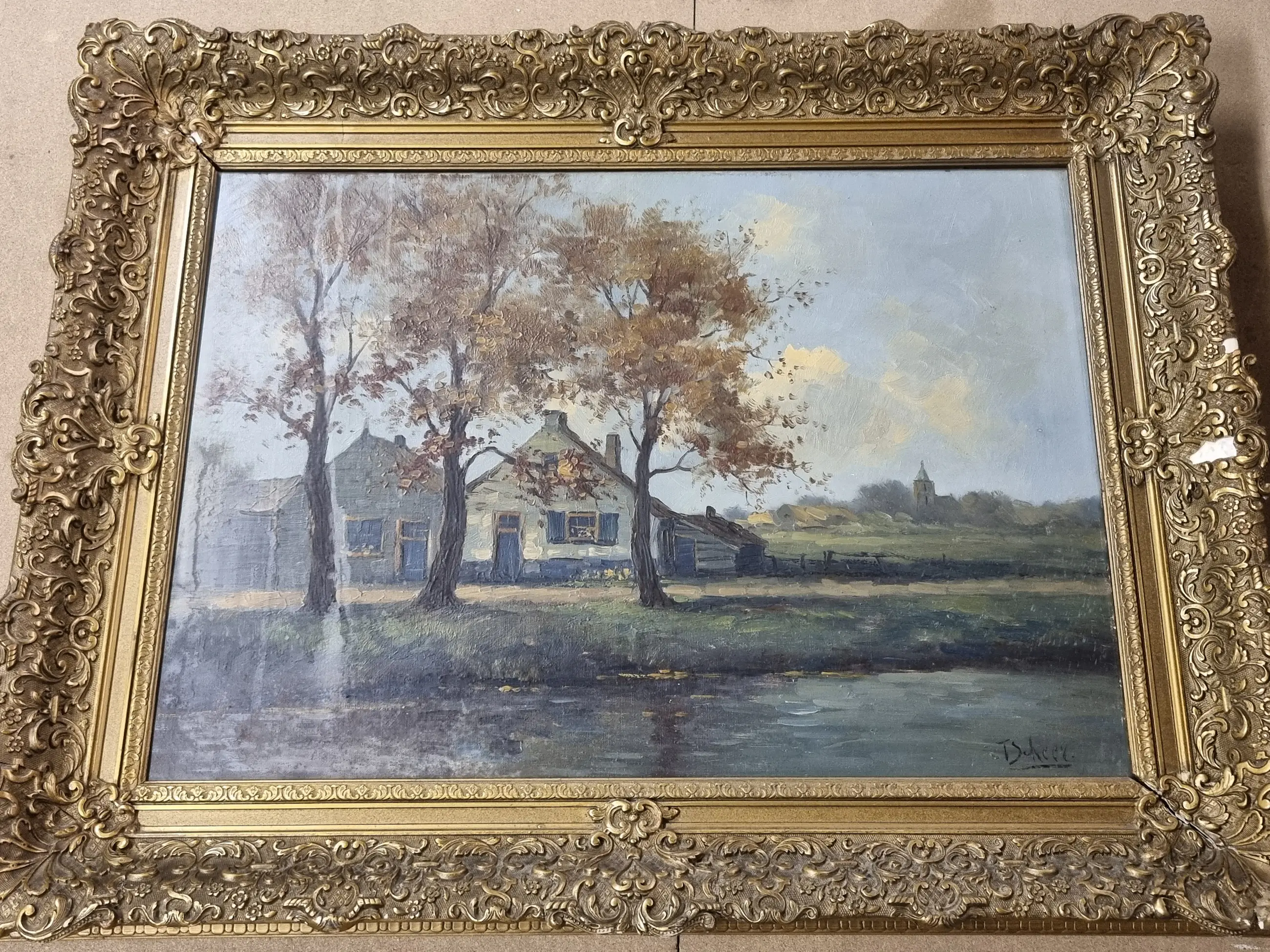 Lichte strepen aan de linkerkant van het doek en lijst iets beschadigd