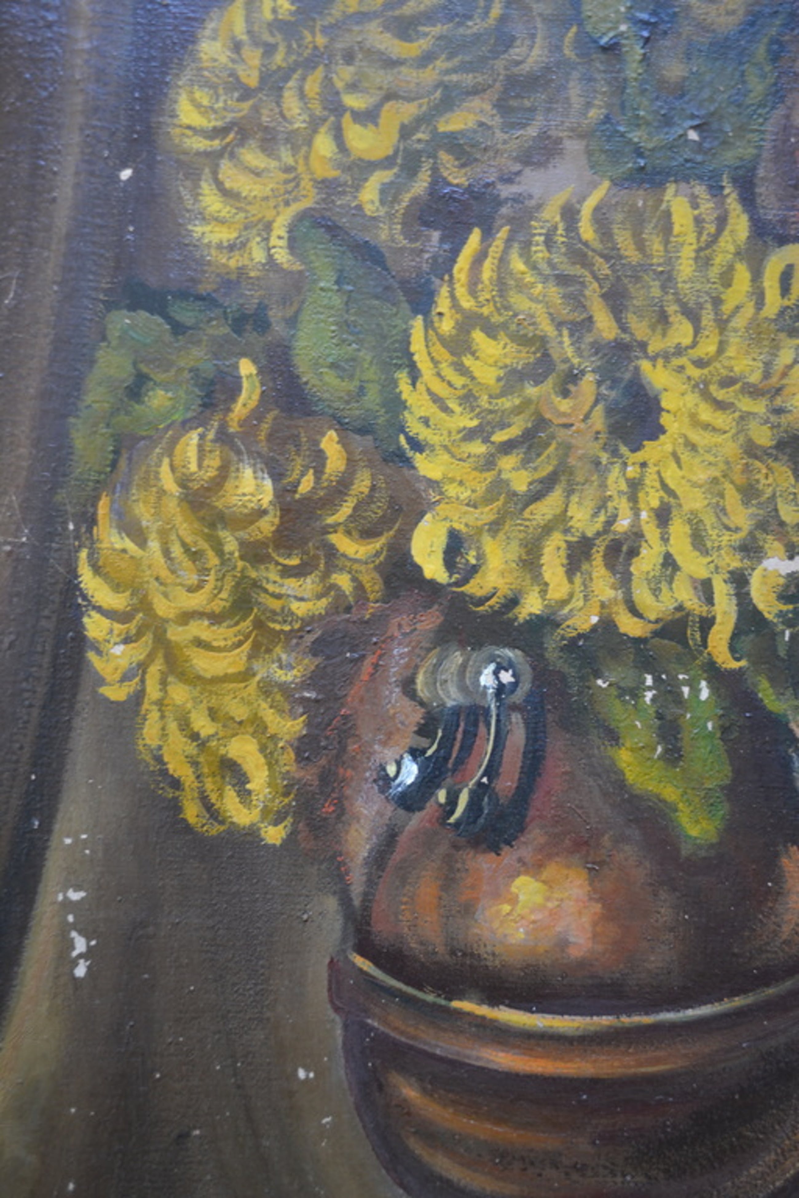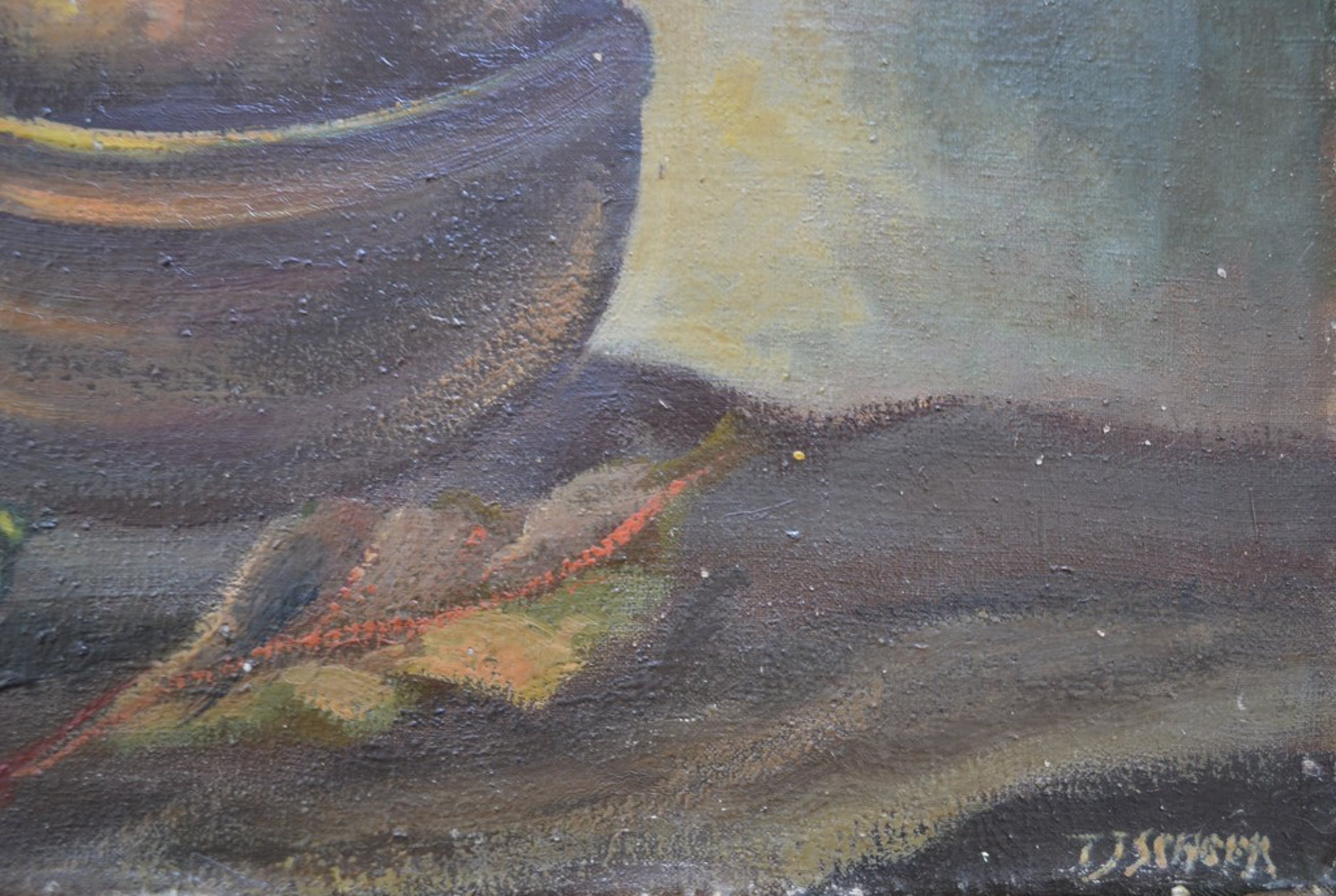 Schilderij van Theo Scheer, rechtsonder gesigneerd TJ Scheer. Betreft stilleven, olieverf op doek, 20ste eeuw.