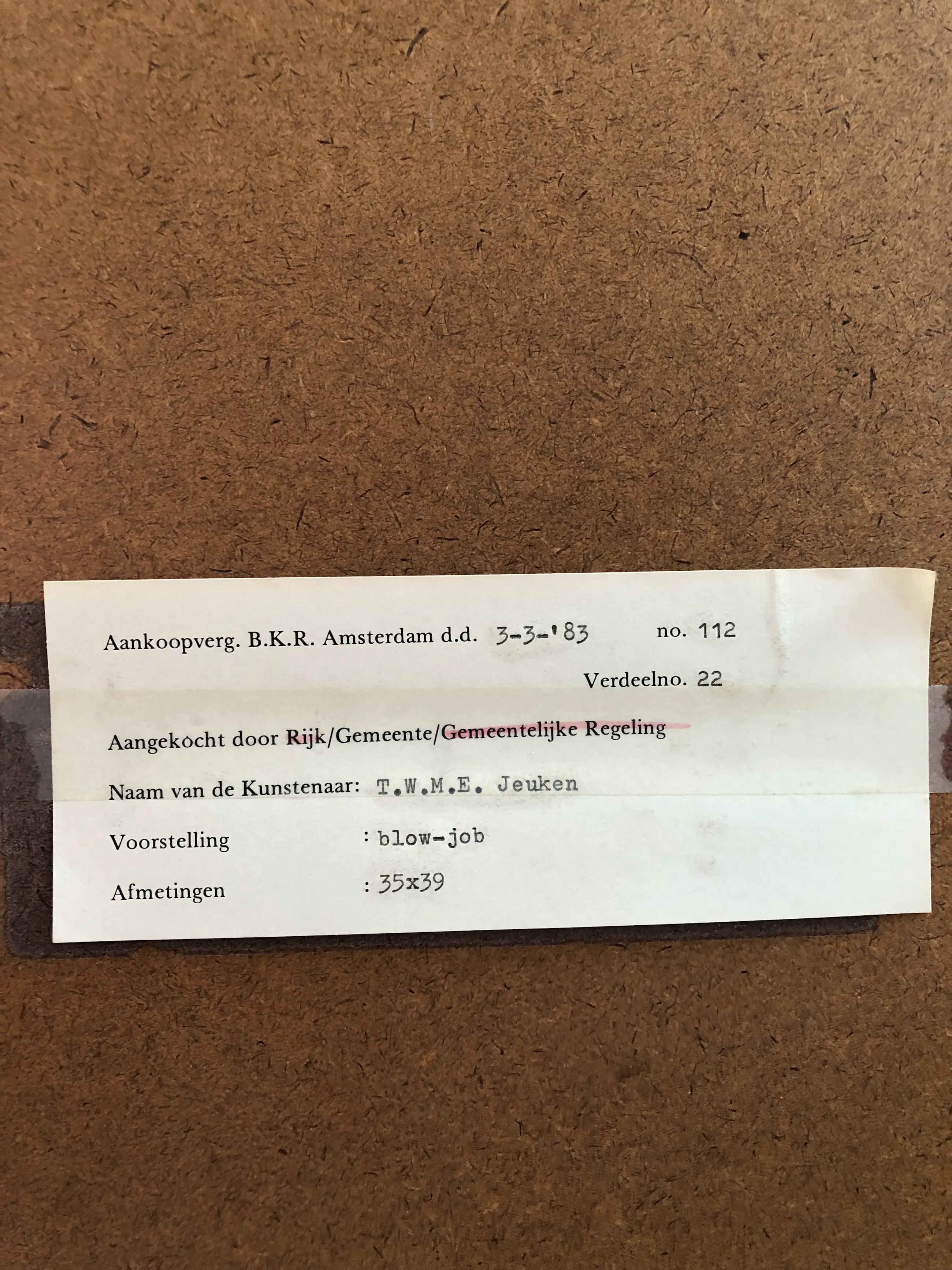 Het werk is af te halen op locatie. Als koper dient u zelf verpakkingsmateriaal mee te nemen. De locatie is: Amsterdam, Nederland