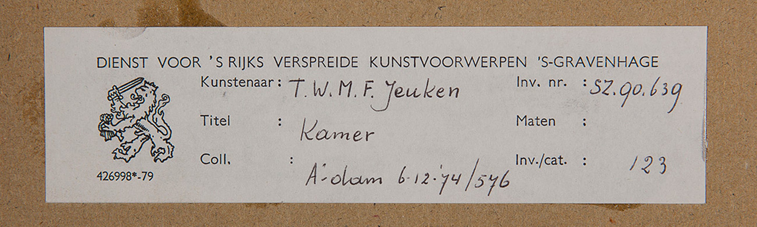 Herkomst: BKR Amsterdam (Het kunstwerk is afgevoerd uit de rijkscollectie in 2018)