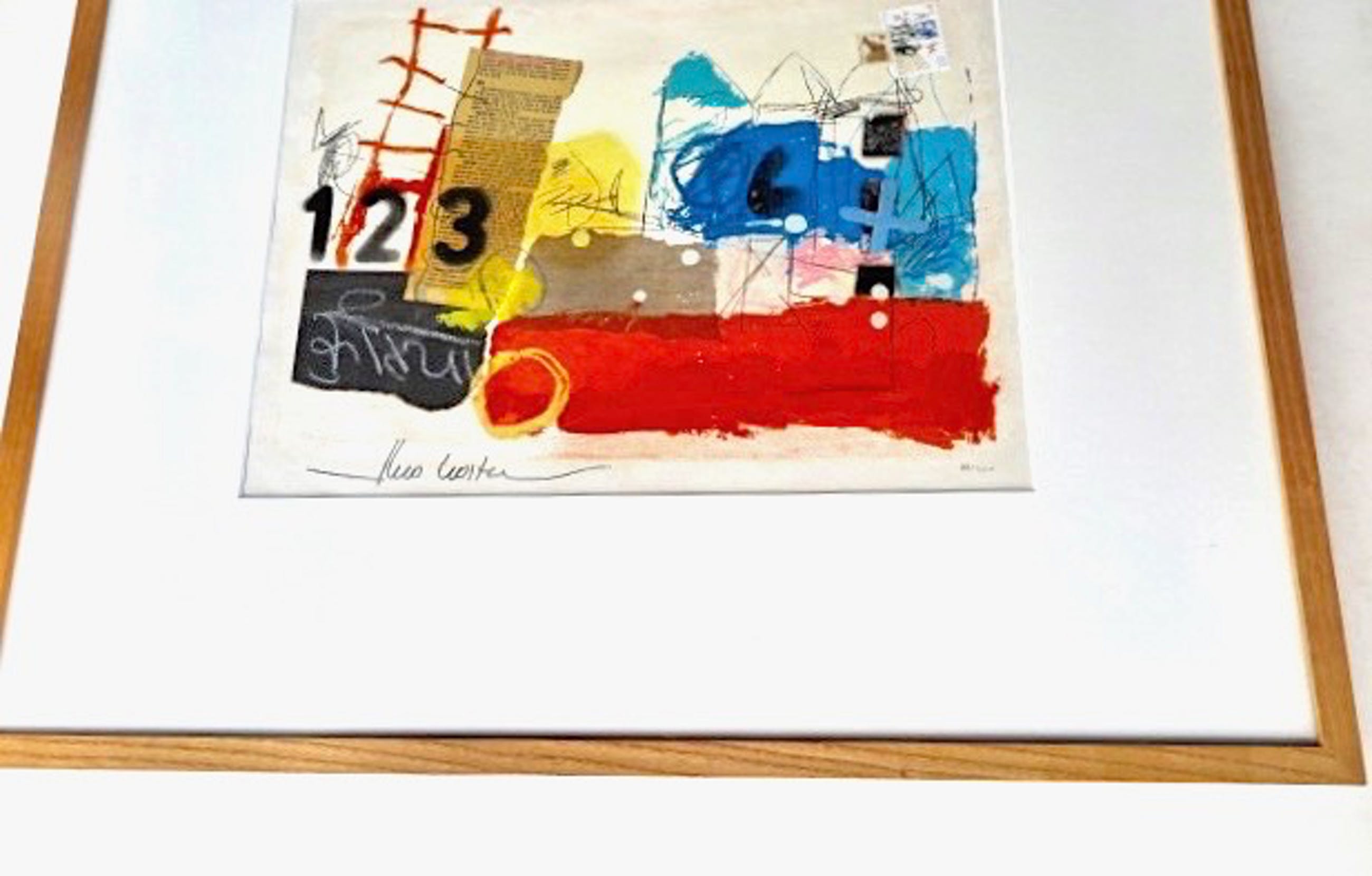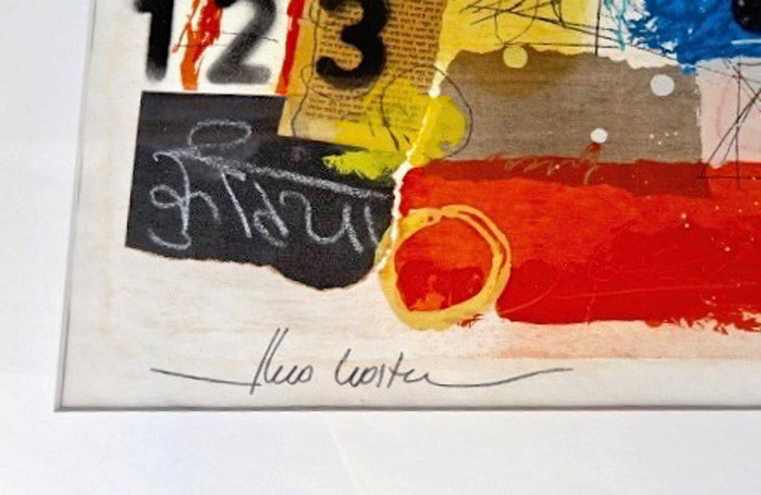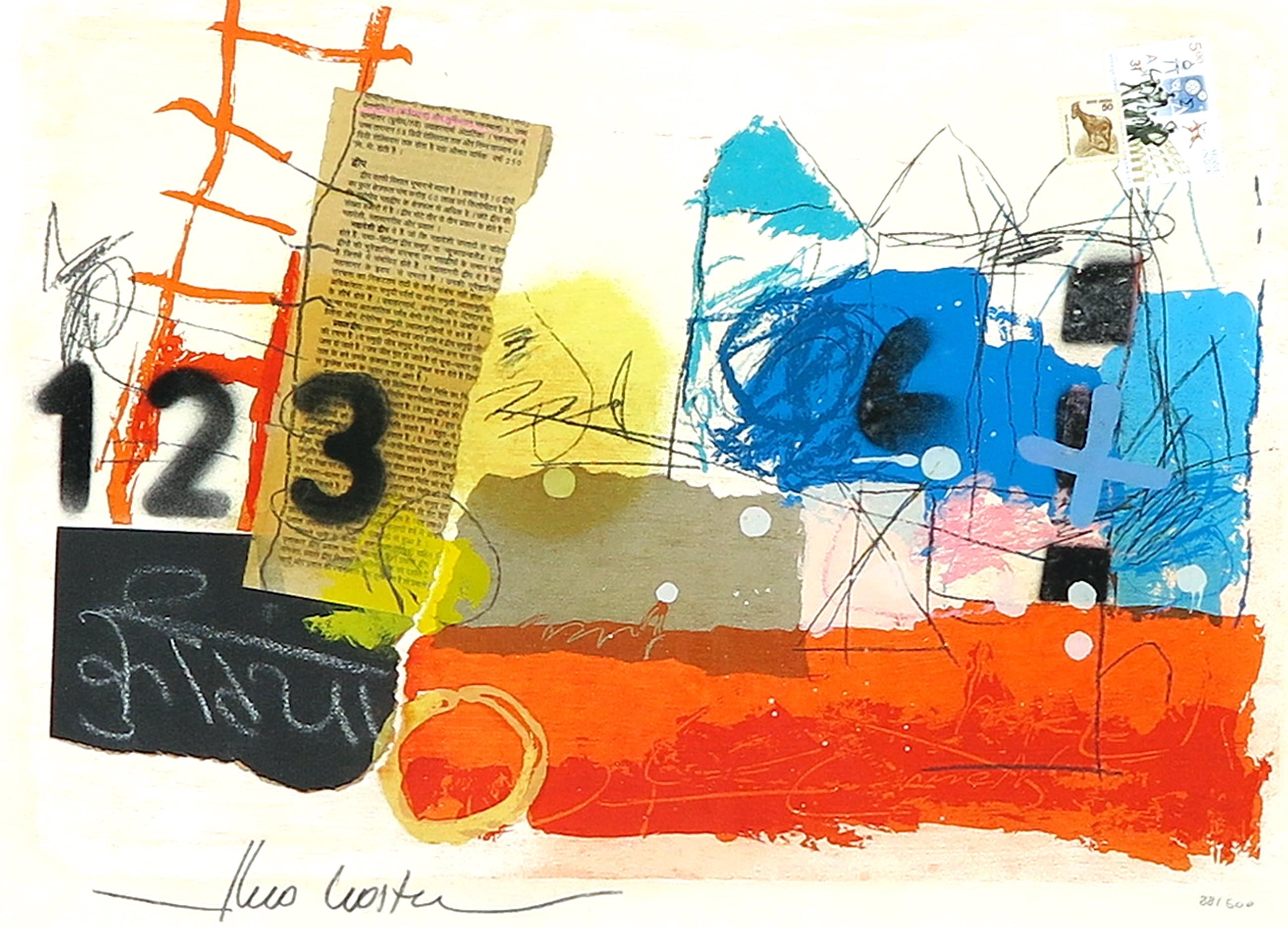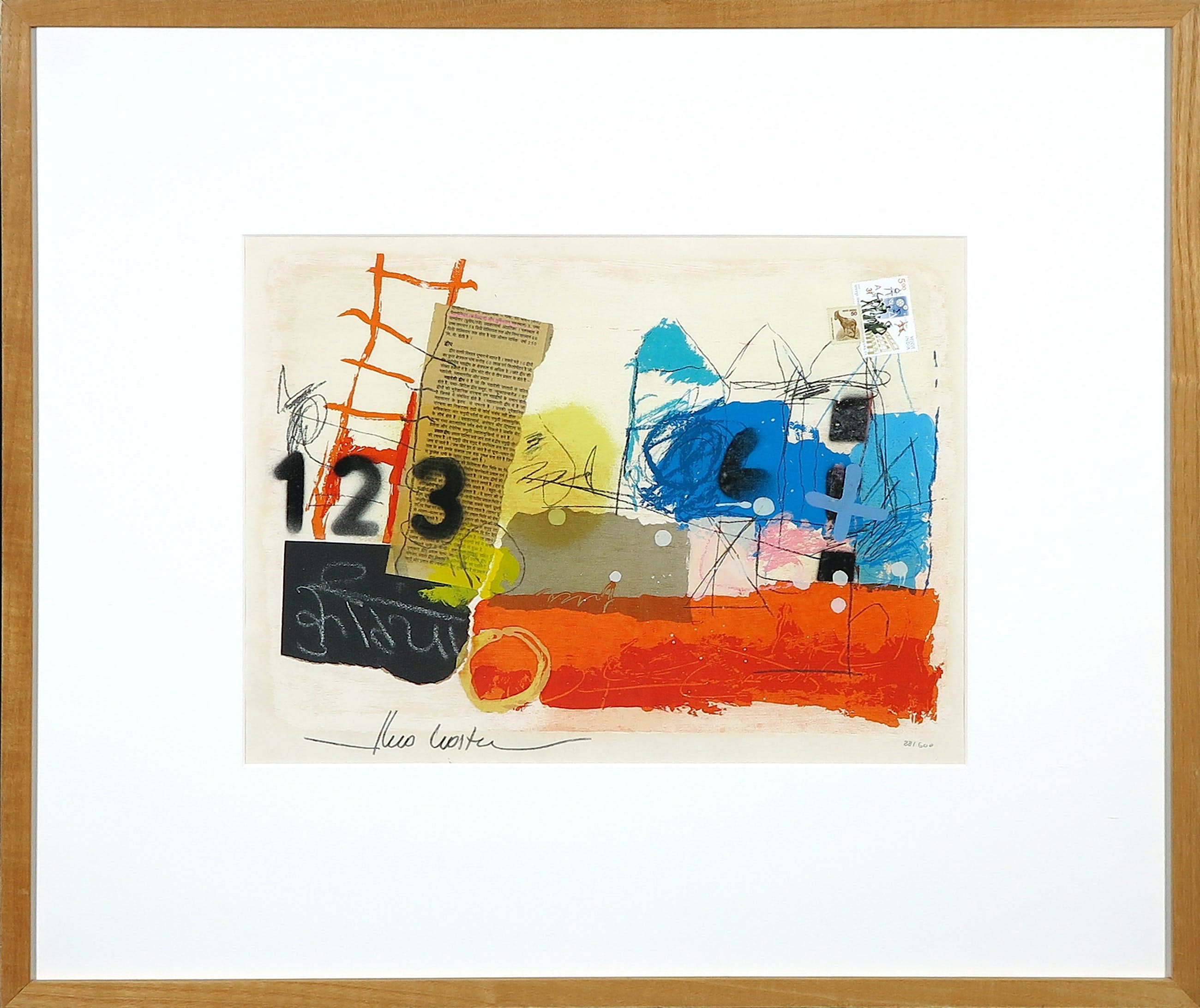 Abstract Landschap Gemengde techniek met o.a. acryl, gouache en collages, op onderliggend een zeefdruk 88/500 Op geschept dik cotton papier In uitstekende conditie