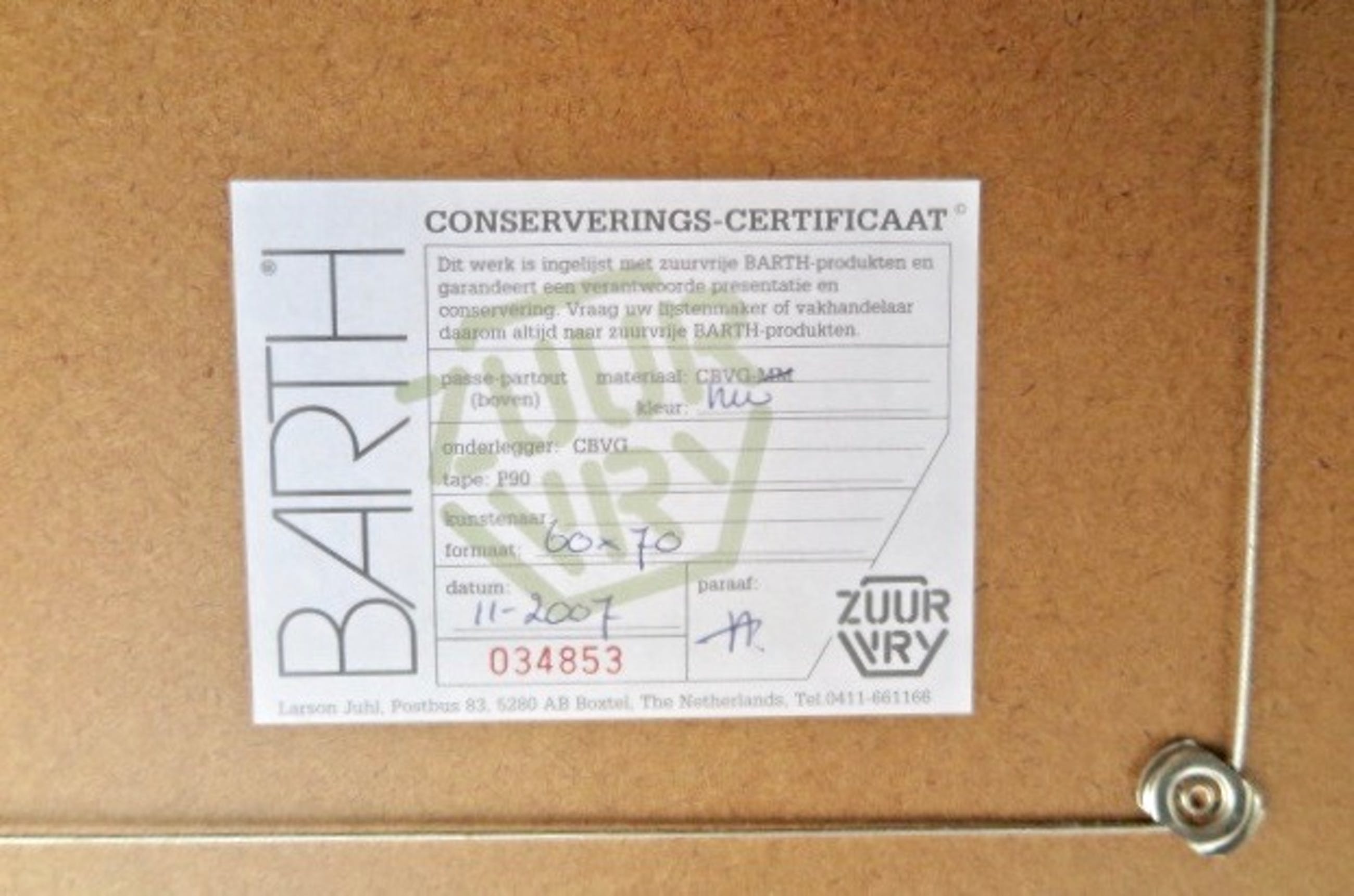Professioneel ingelijst achter glas In dik smetteloos passé-partout en gave mooie houten Barthlijst Met labelgarantie ‘zuurvrij ingelijst’