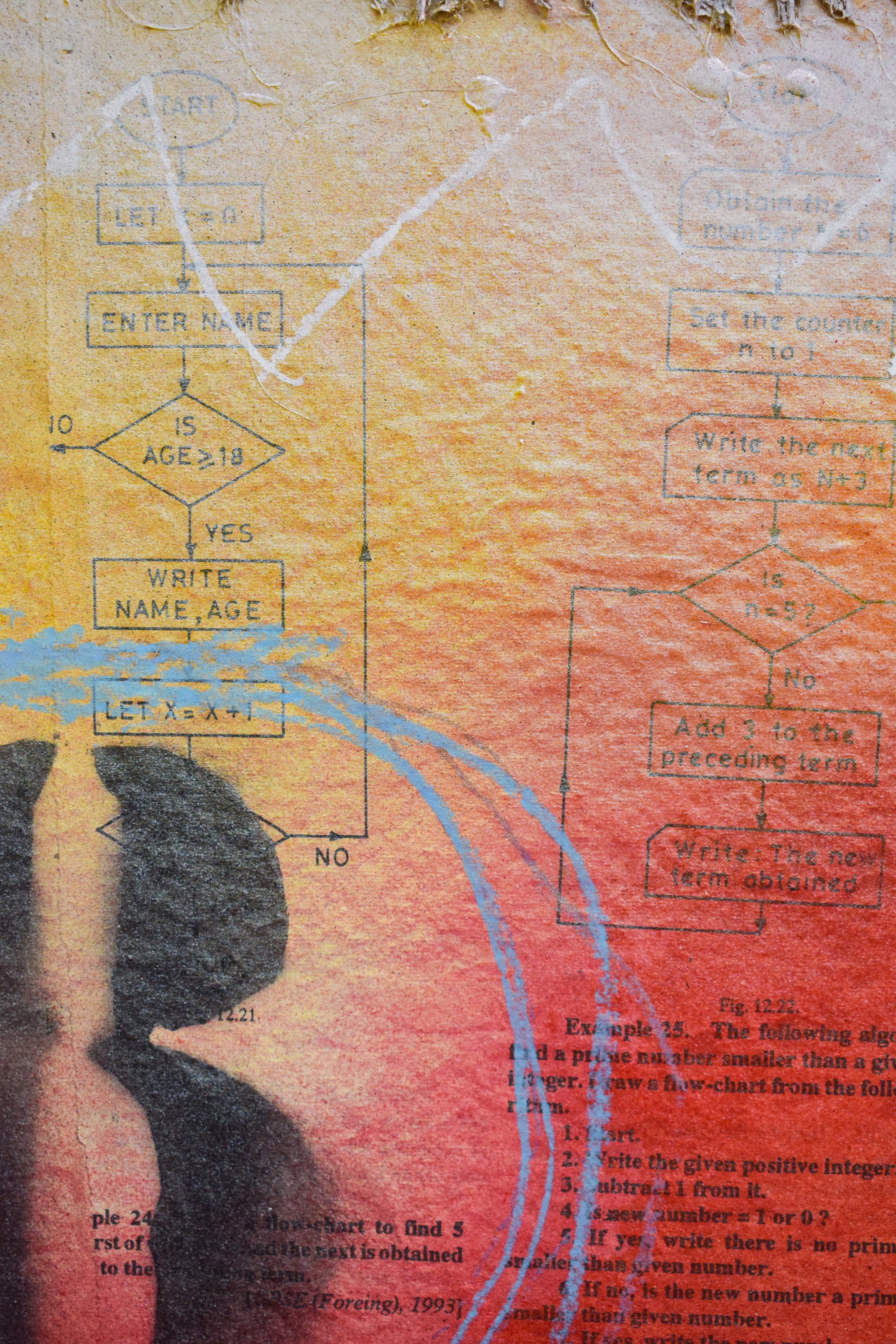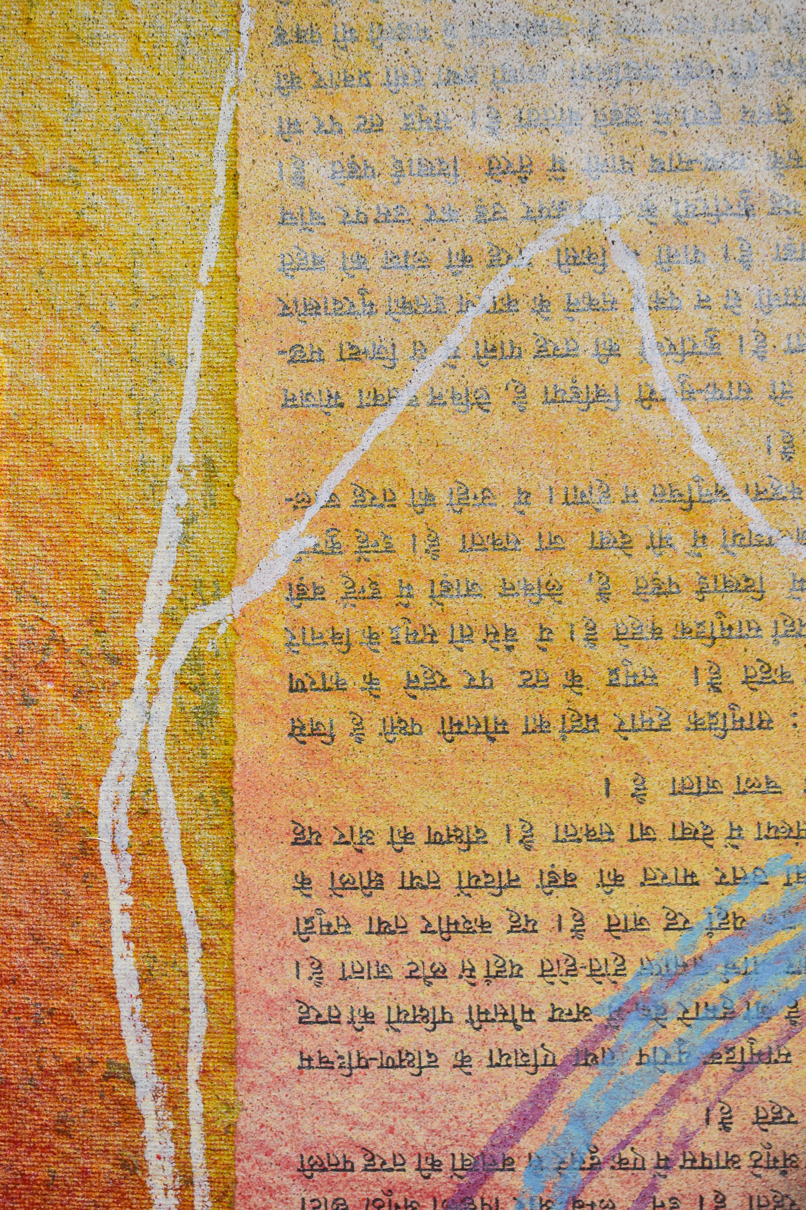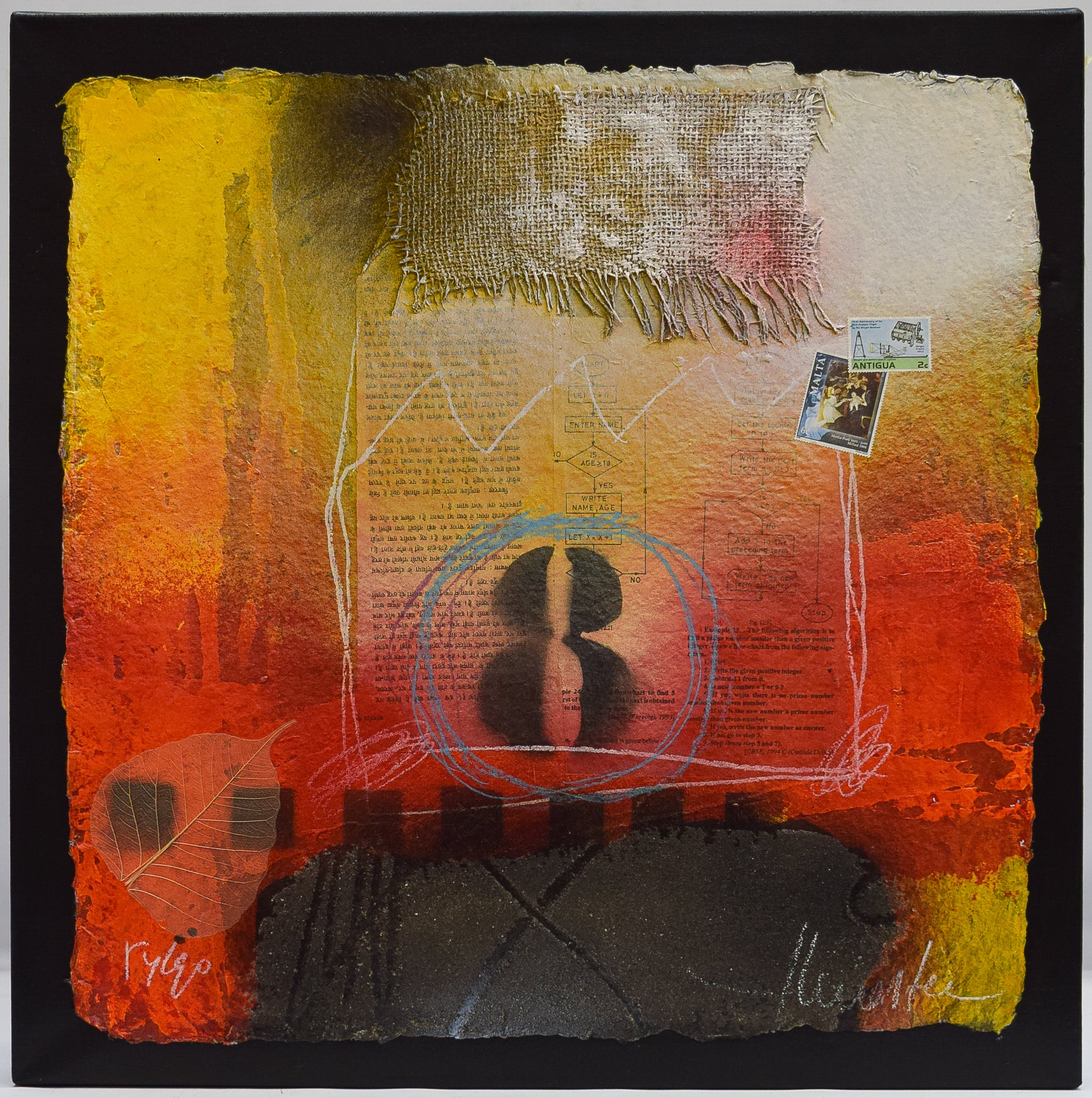 Oplagenummer: 14/90. Op canvas bevestigde zeefdruk met collage details