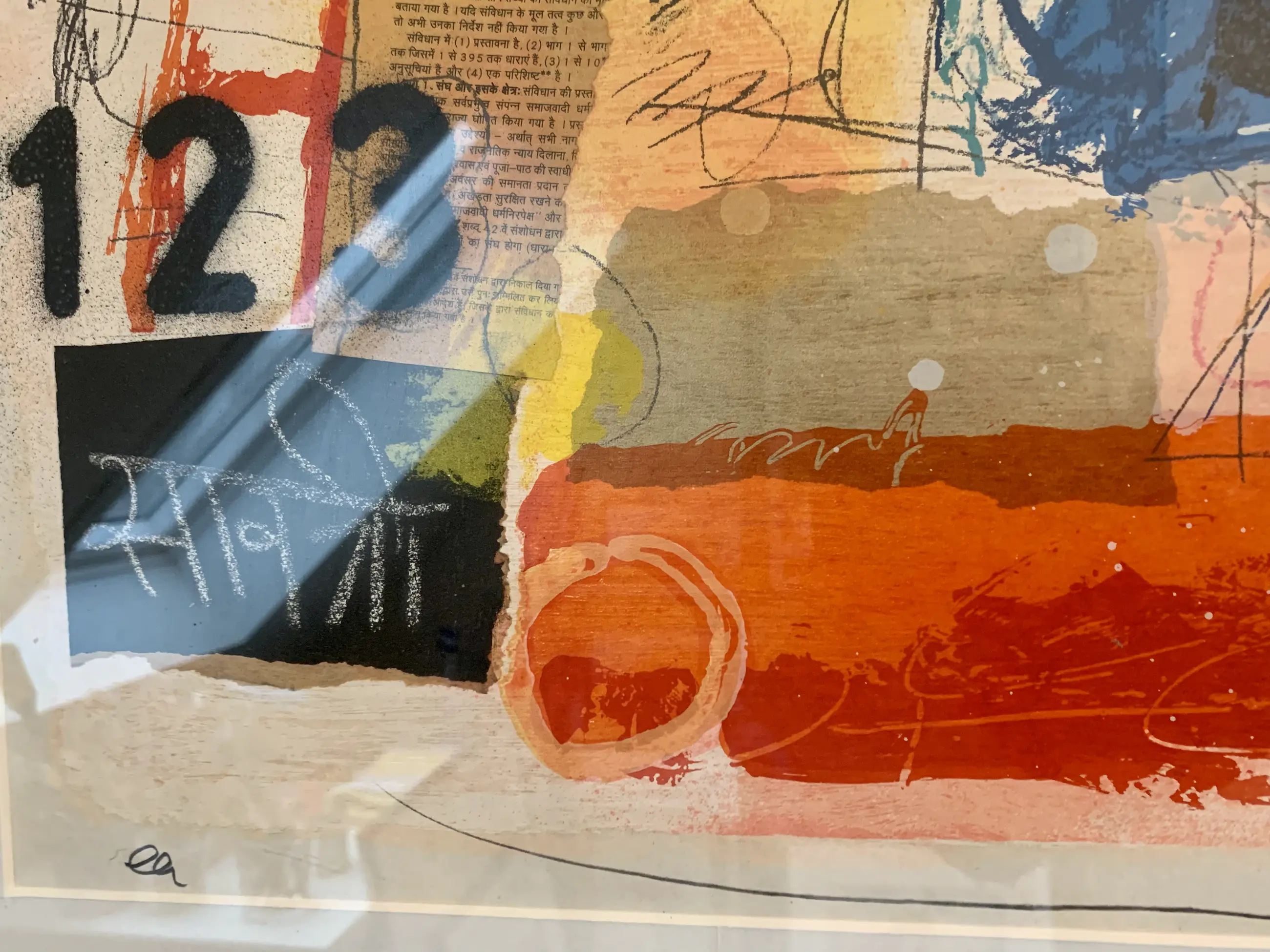 Gemengde techniek , de basis is zeefdruk met daarin collage elementen een e.a (epreuve artist) In zeer goede staat en mooi ingelijst.