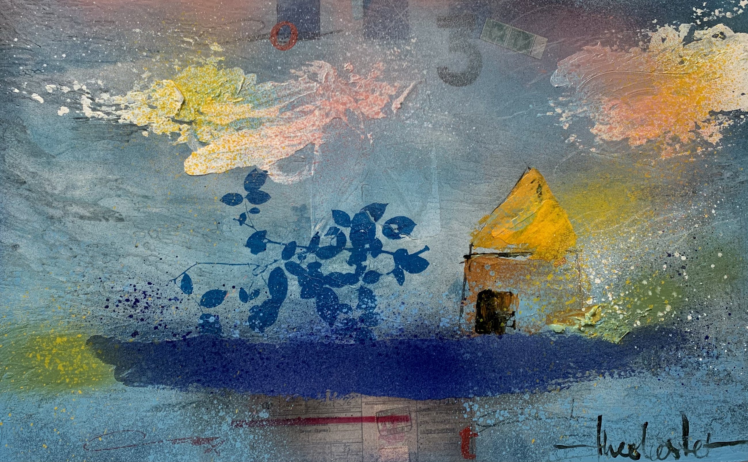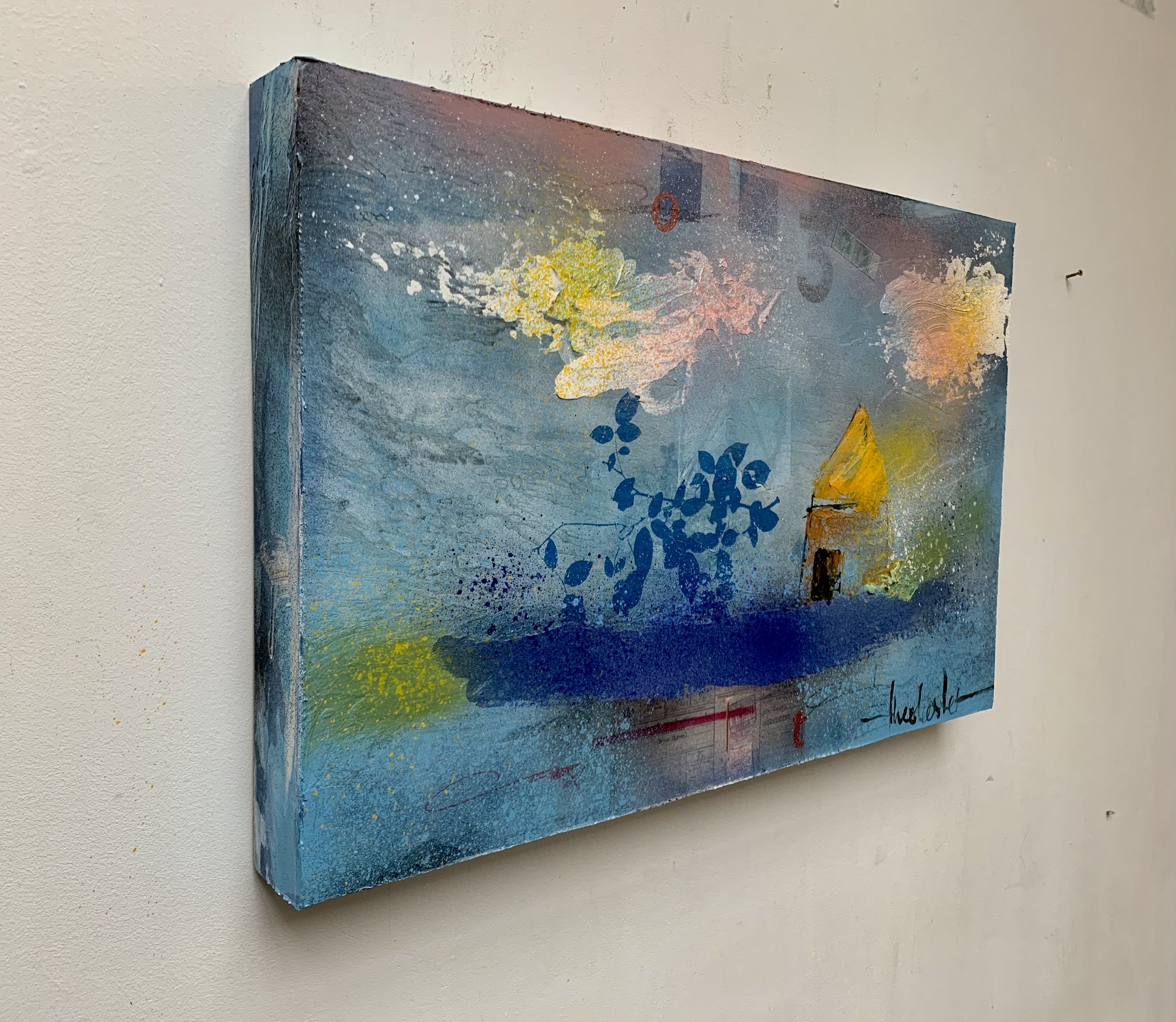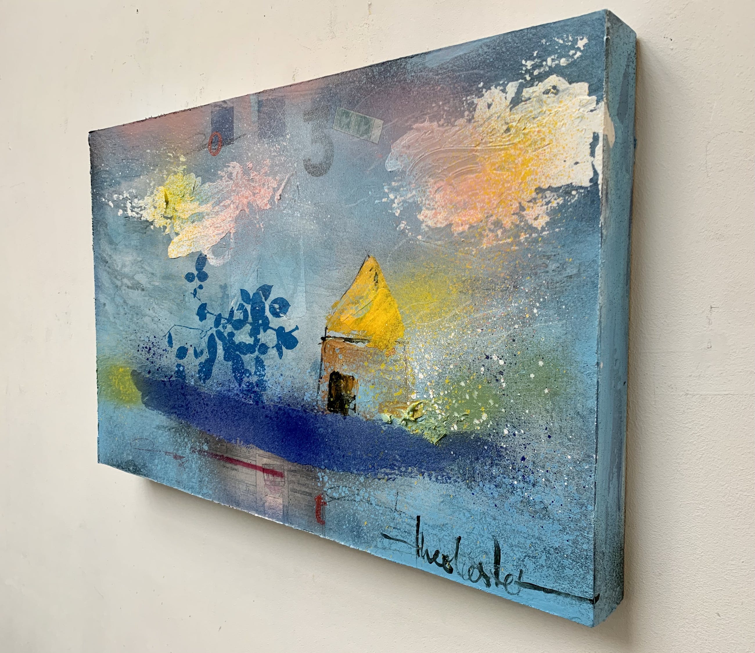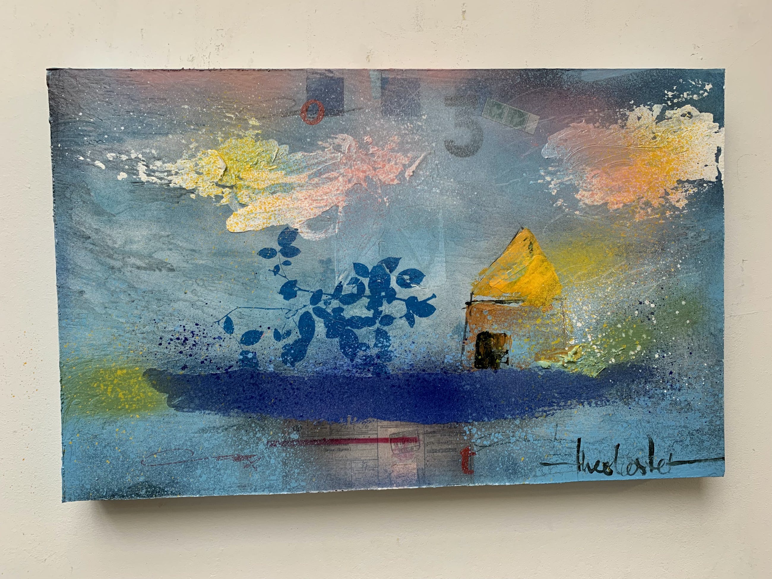 Origineel schilderij op 3 d paneel, inlijsten niet nodig , kan zo aan de wand.