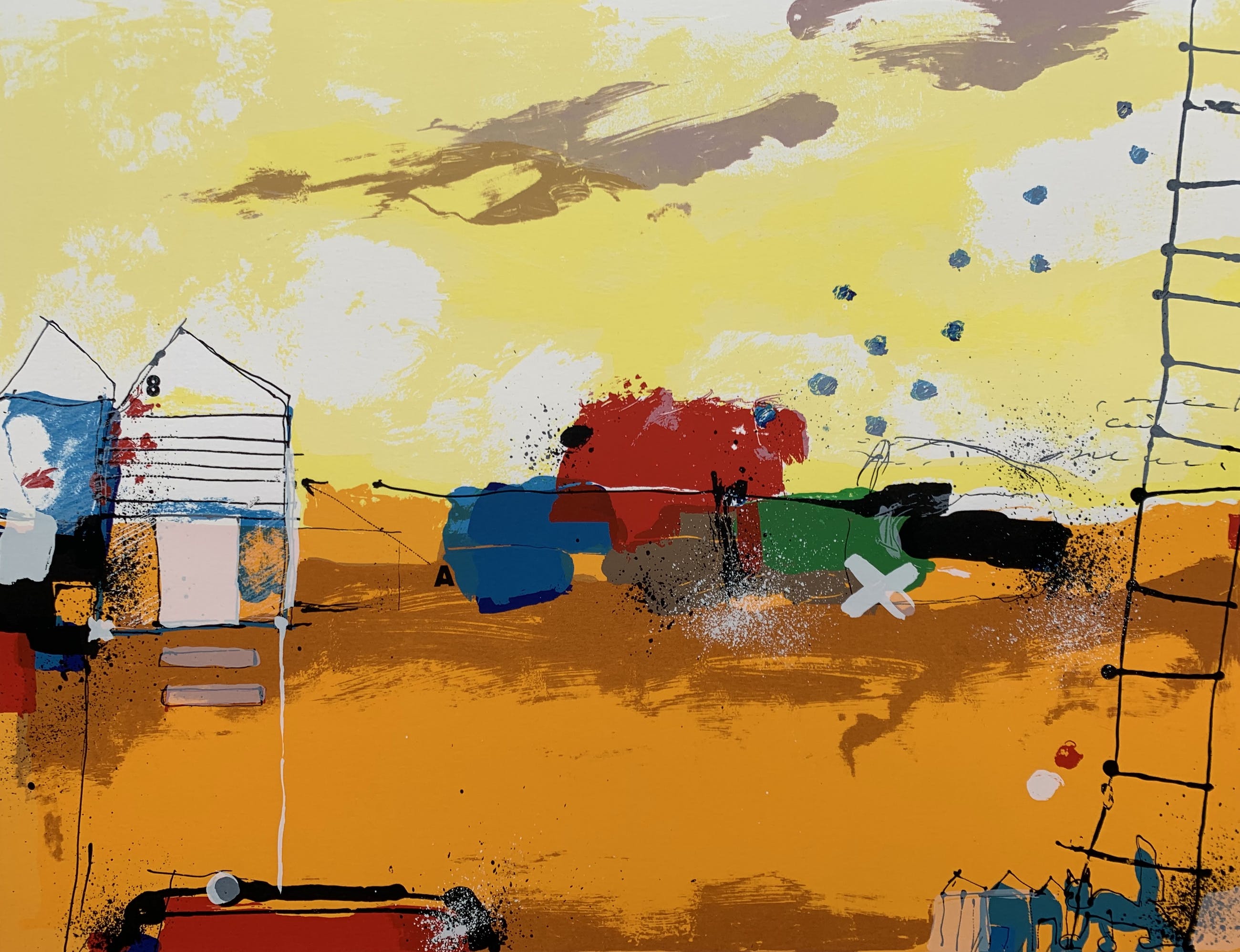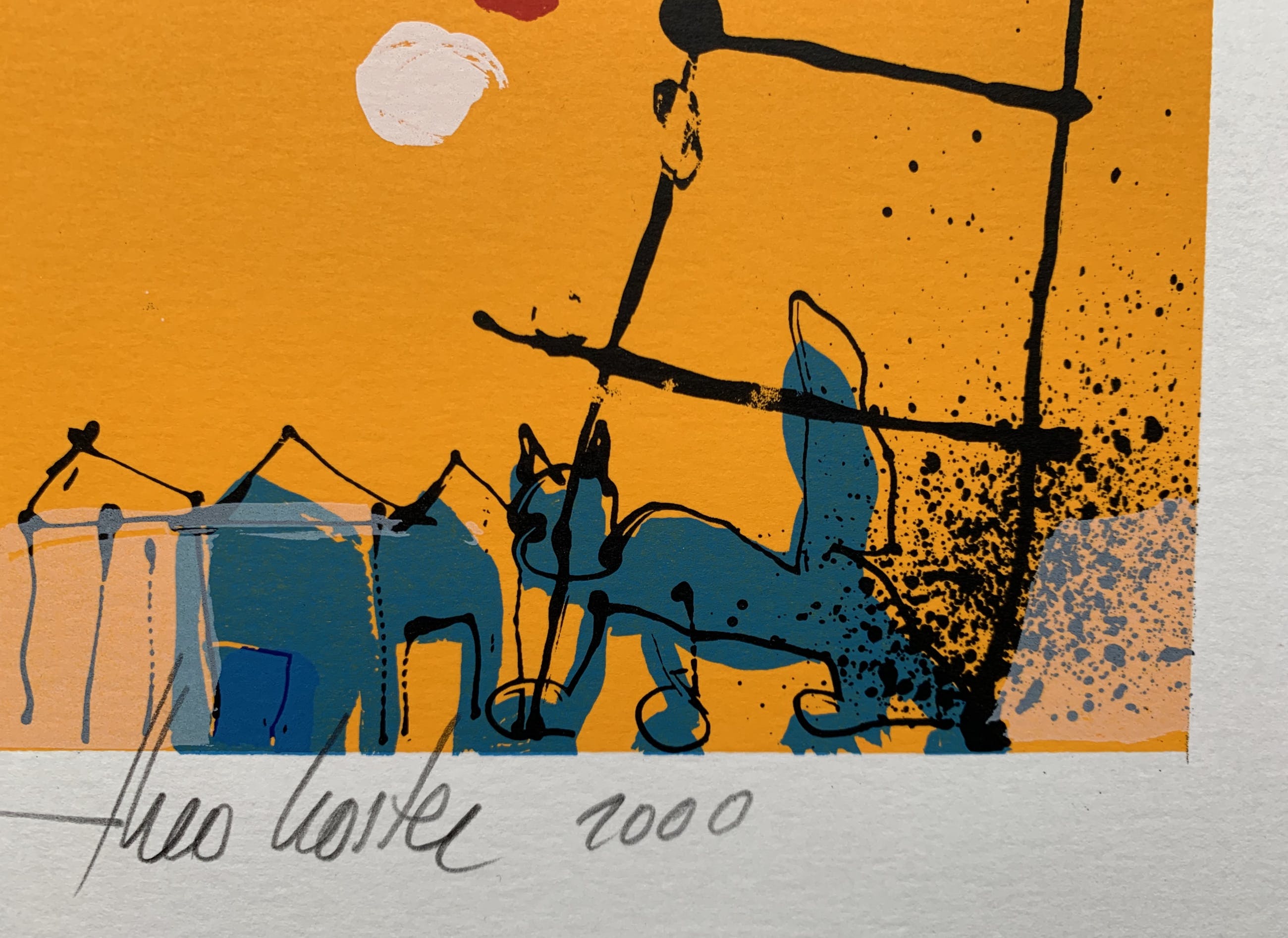 Mooie helder gekleurde zeefdruk van de hand van Theo Koster.