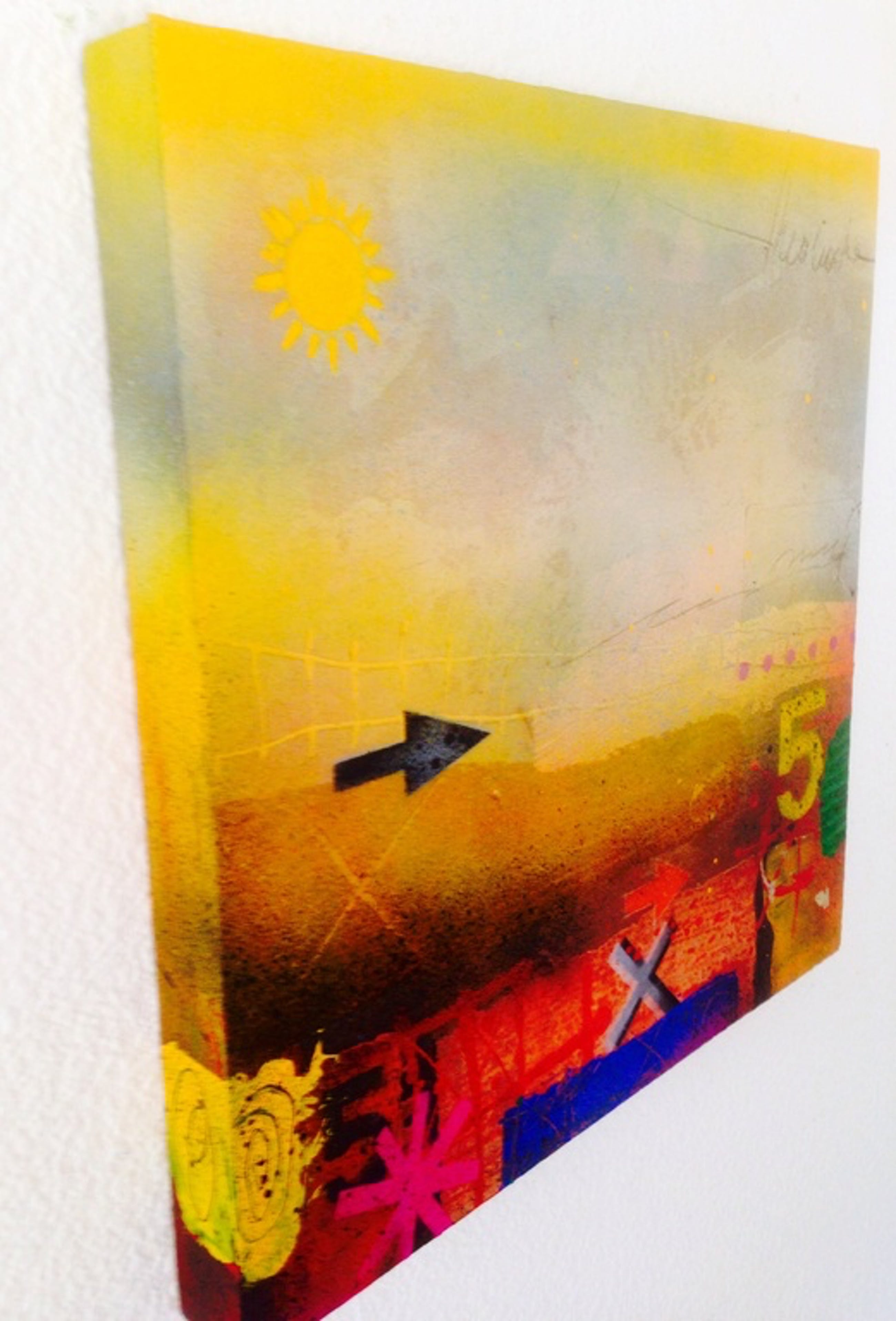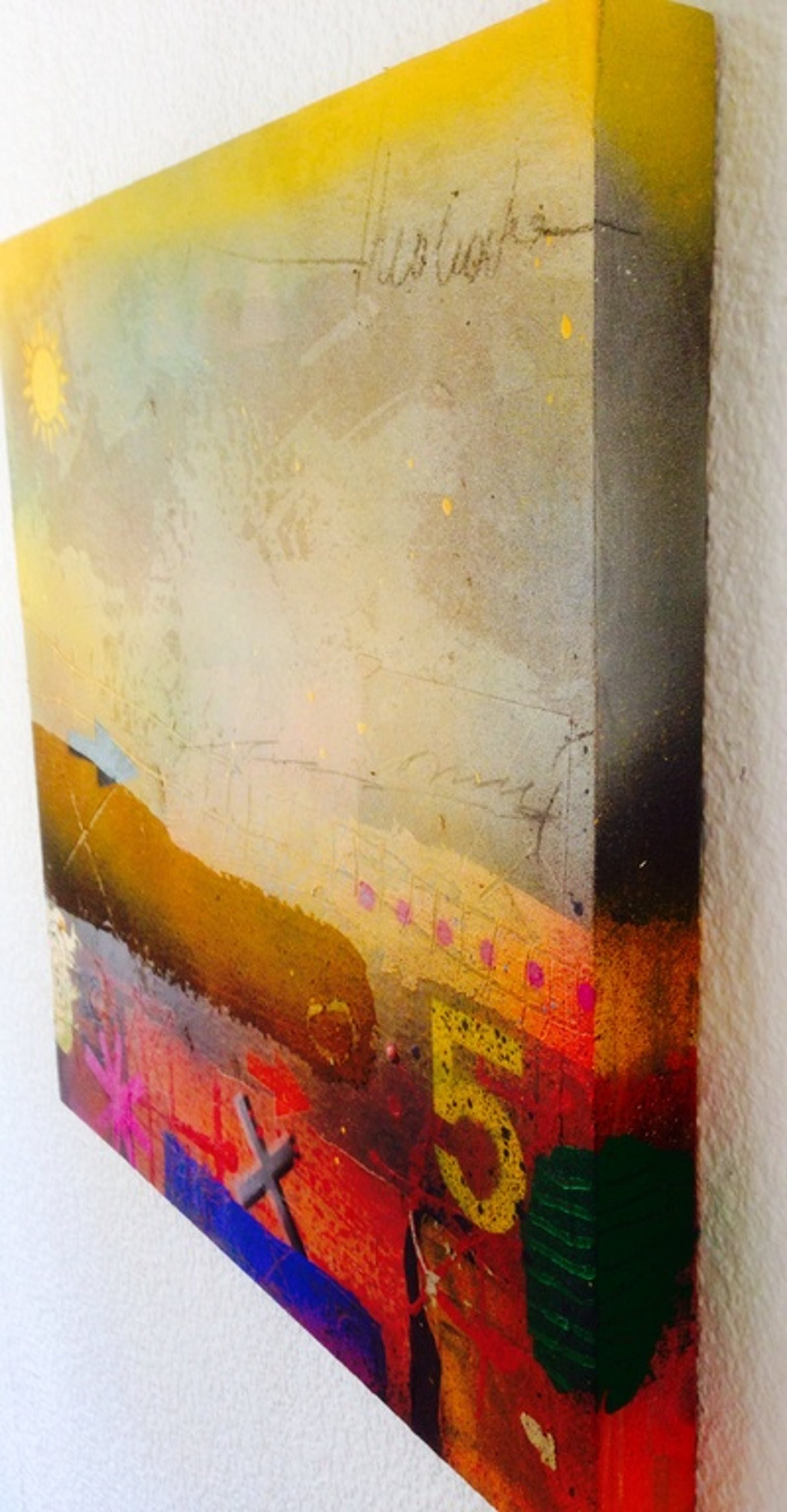 Schilderij in gemengde techniek van de kunstenaar theo koster, afmetingen 55x55x4 cm , titel: a new day, hand gesigneerd in zeer goede staat, galerie verkoopwaarde 1250 €