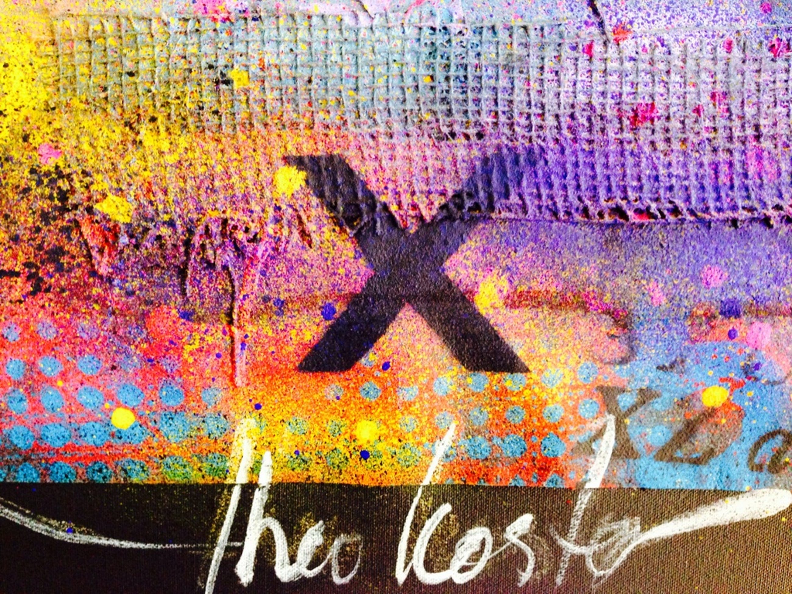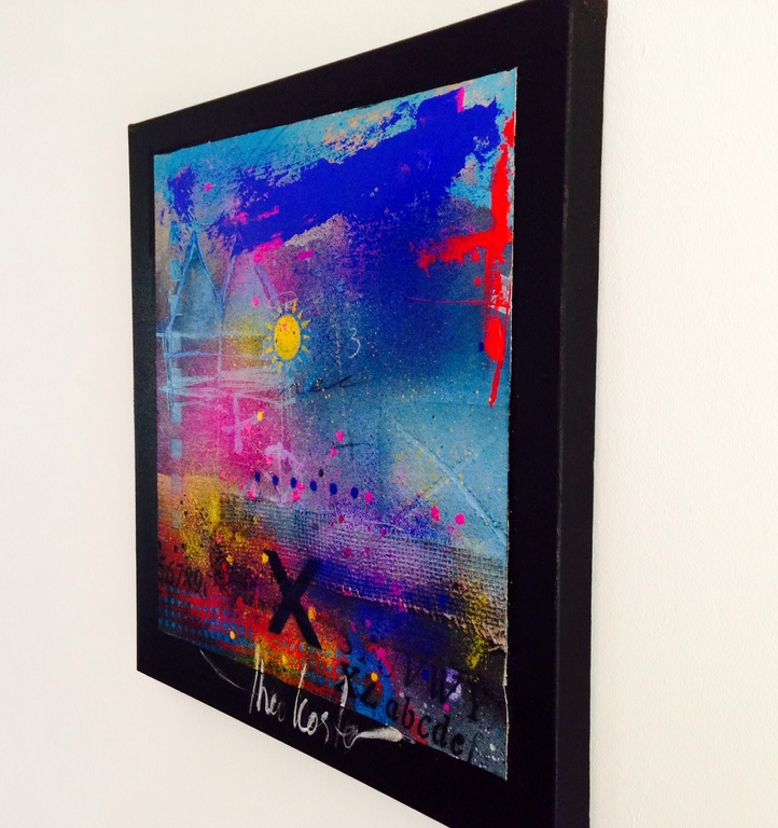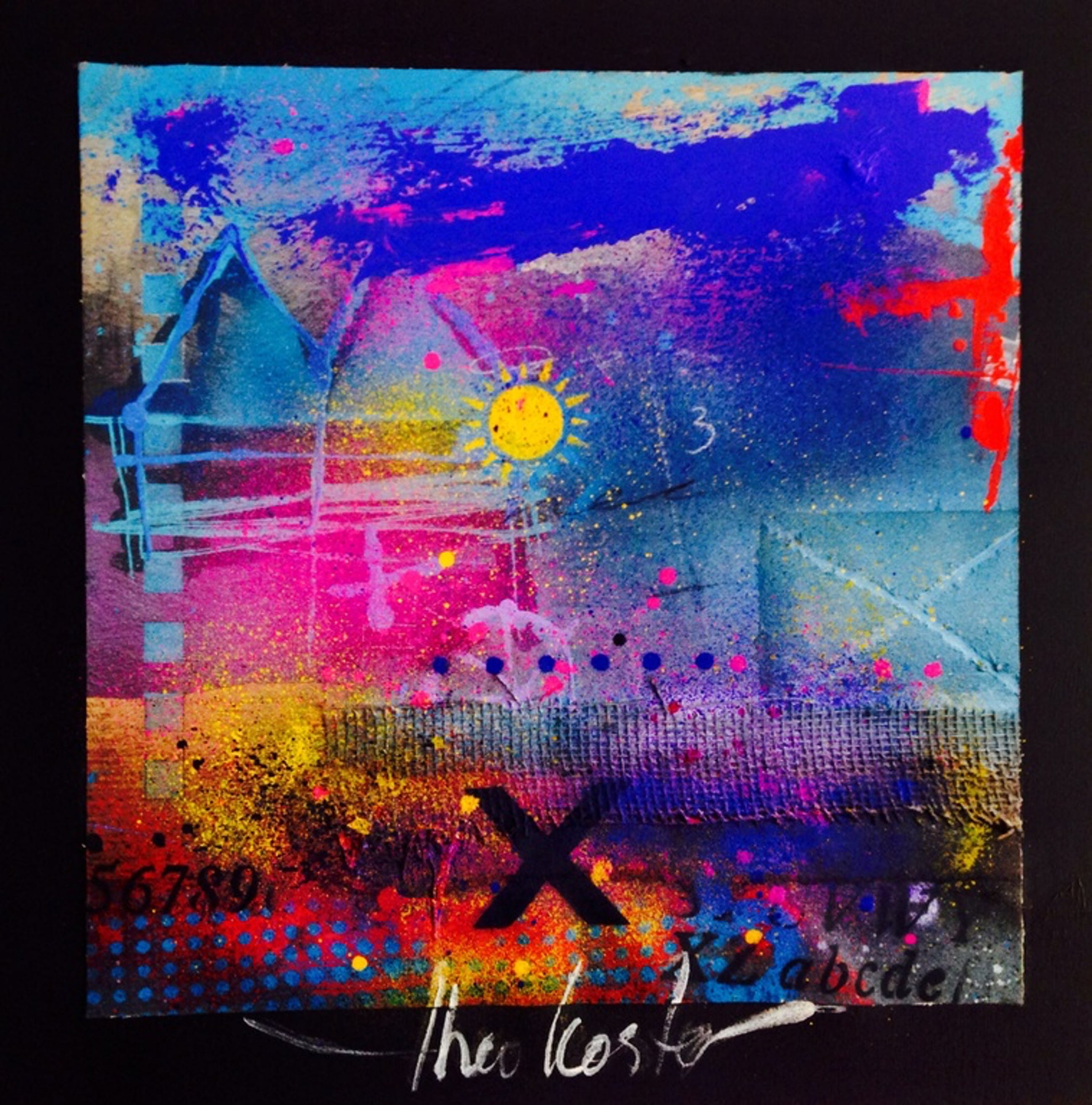 Origineel schilderij in gemengde techniek , in zeer goede staat en handgesigneerd van de kunstenaar theo koster , afmetingen 60x60x4 cm, titel : blue monday, galerie verkoopwaarde €1500,-