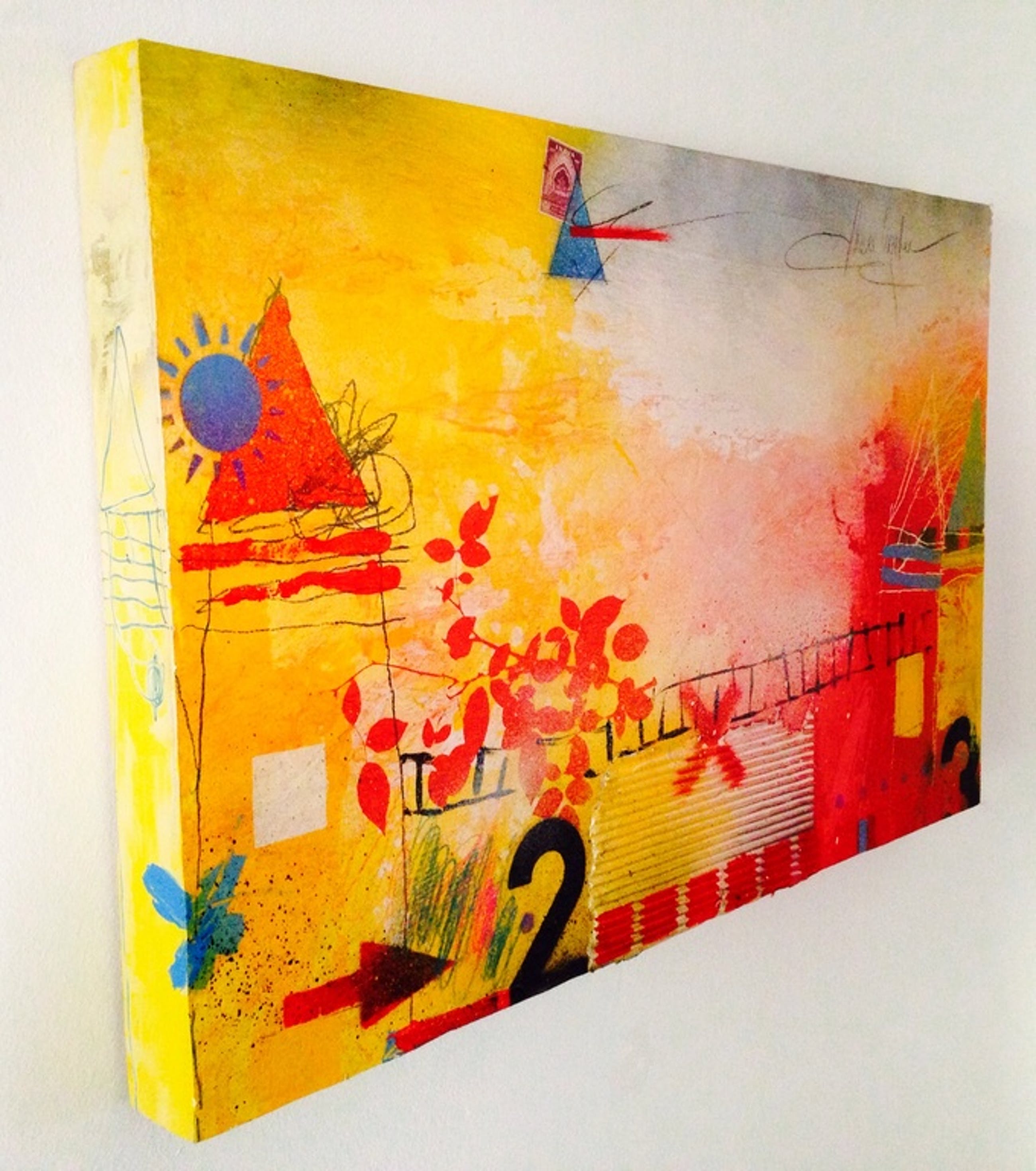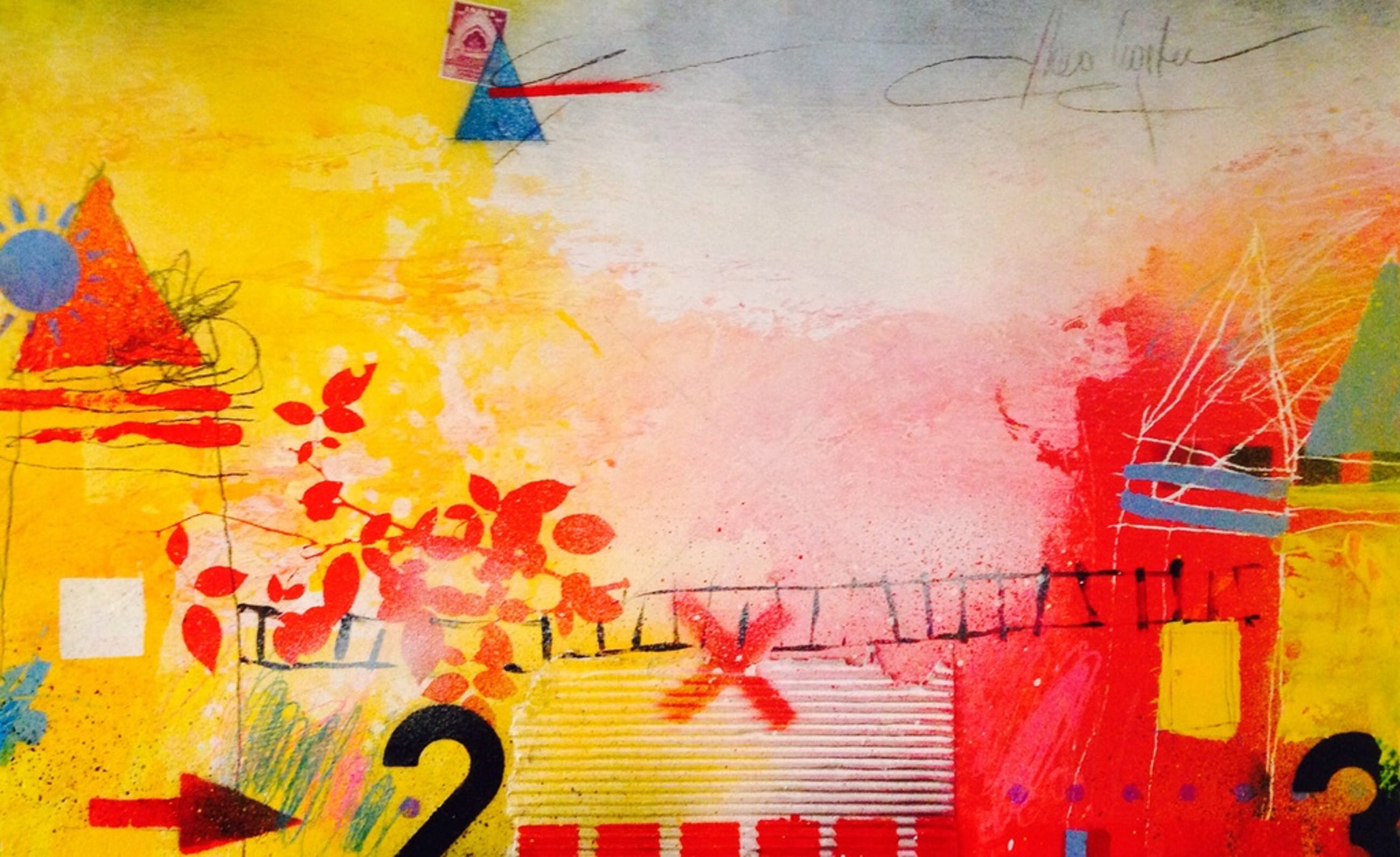 Origineel schilderij in gemengde techniek van de kunstenaar theo koster, afmetingen 70x44x4 cm , titel: "last train to clarksville", handgesigneerd en in goede staat , galerieverkoop waarde 1350 €.