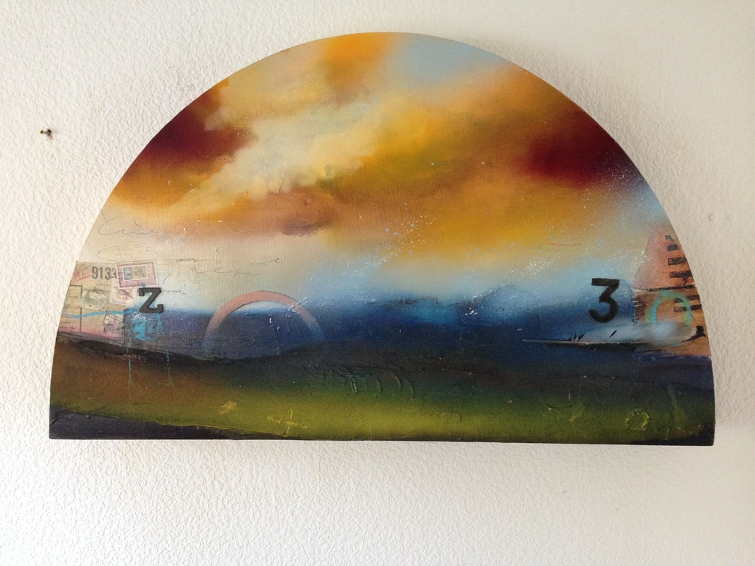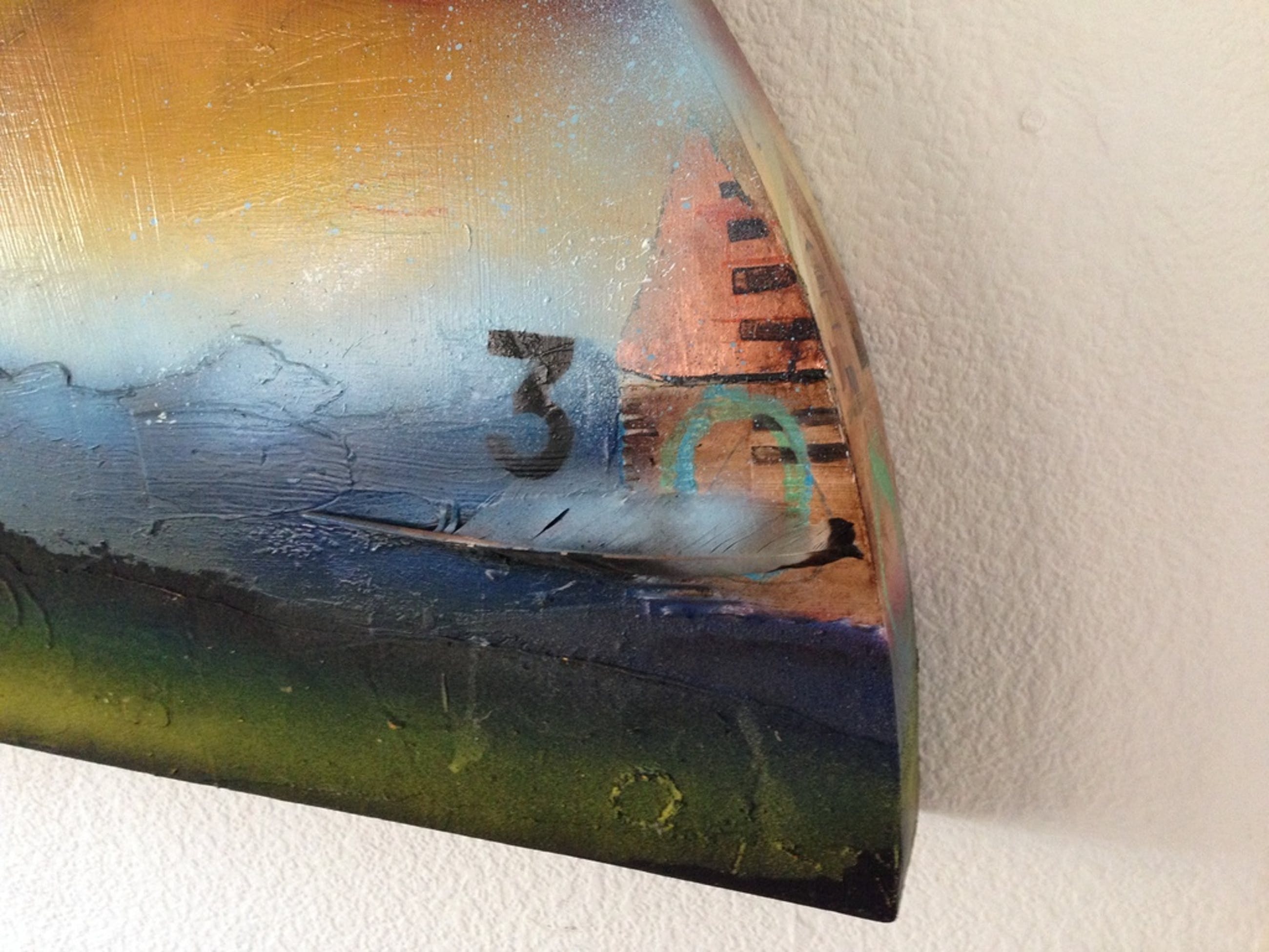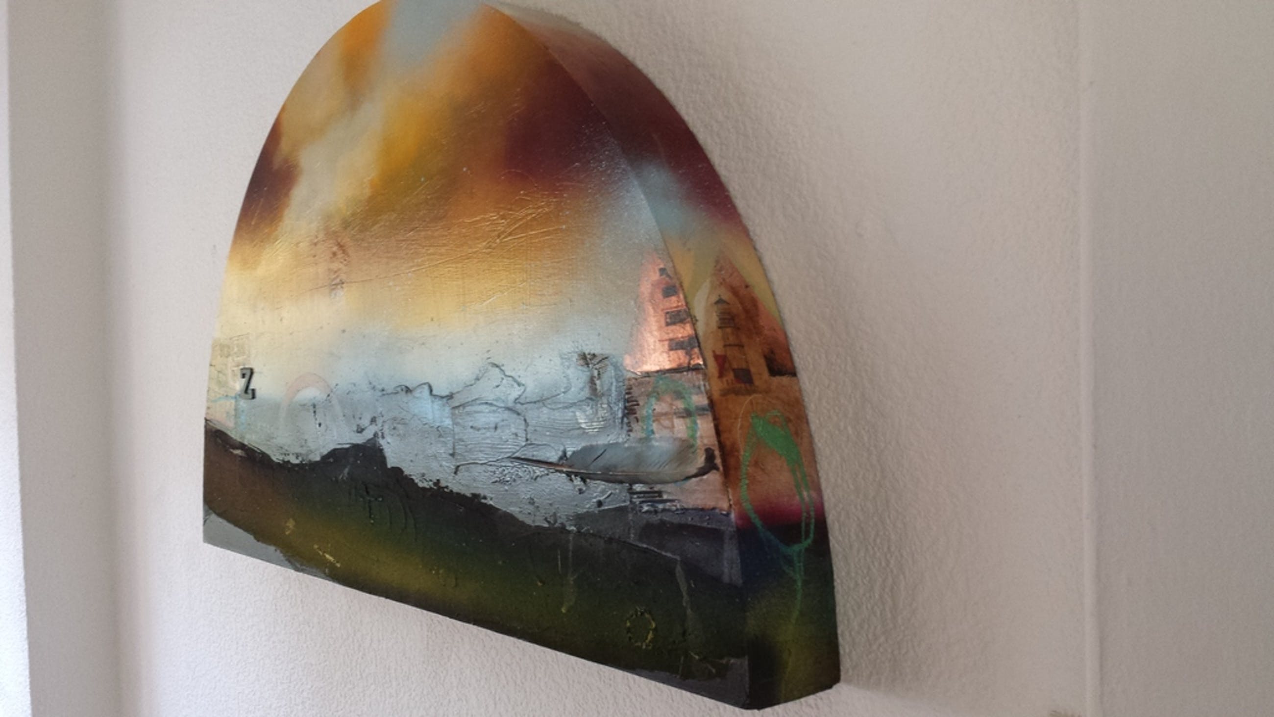Uniek halfrond schilderij van de kunstenaar Theo Koster, hand gesigneerd, voorzien van certificaat van echtheid (100x60x10) Dit werk kan in Nederland worden bezorgd in overleg