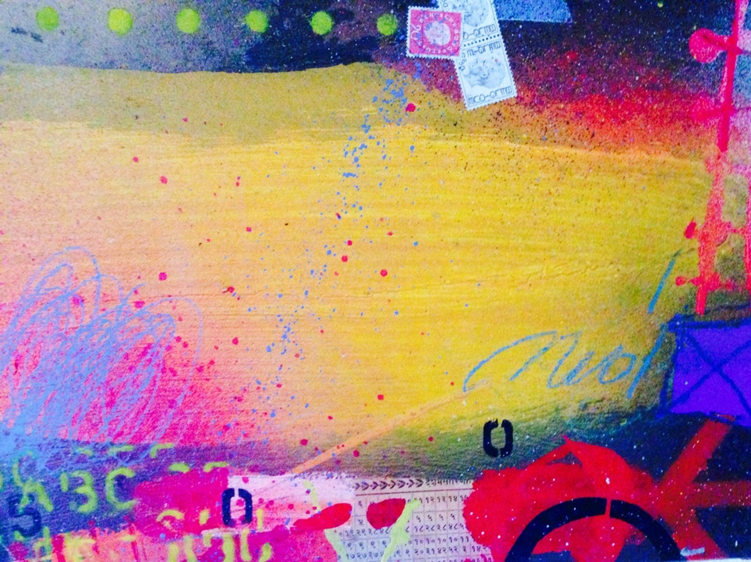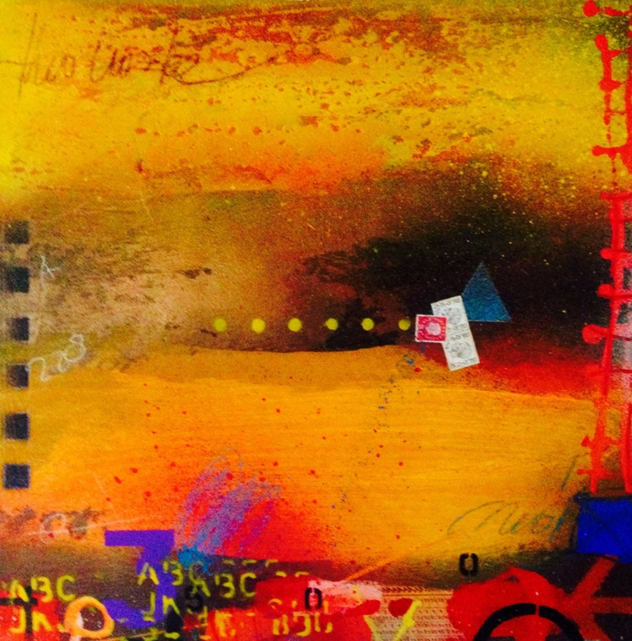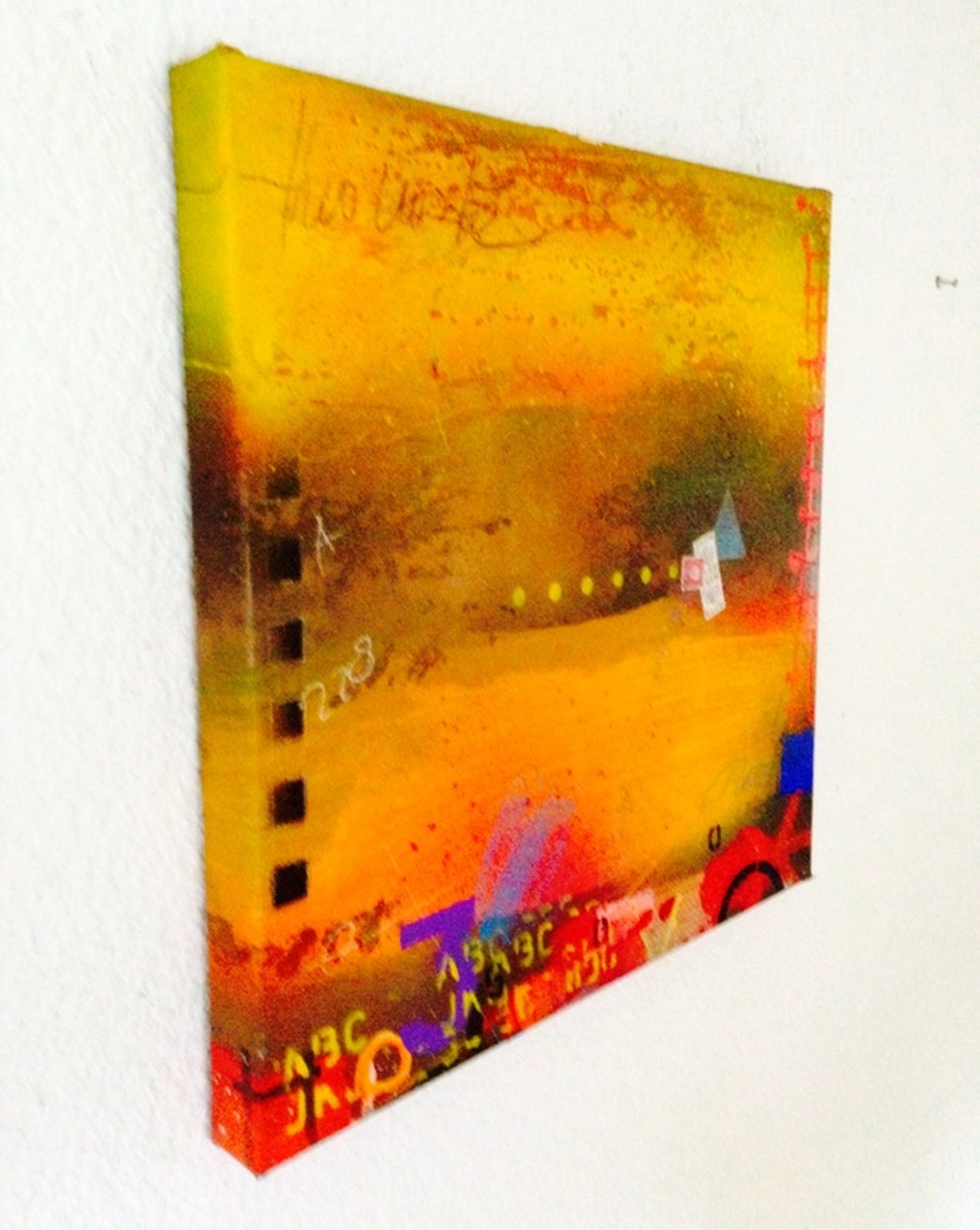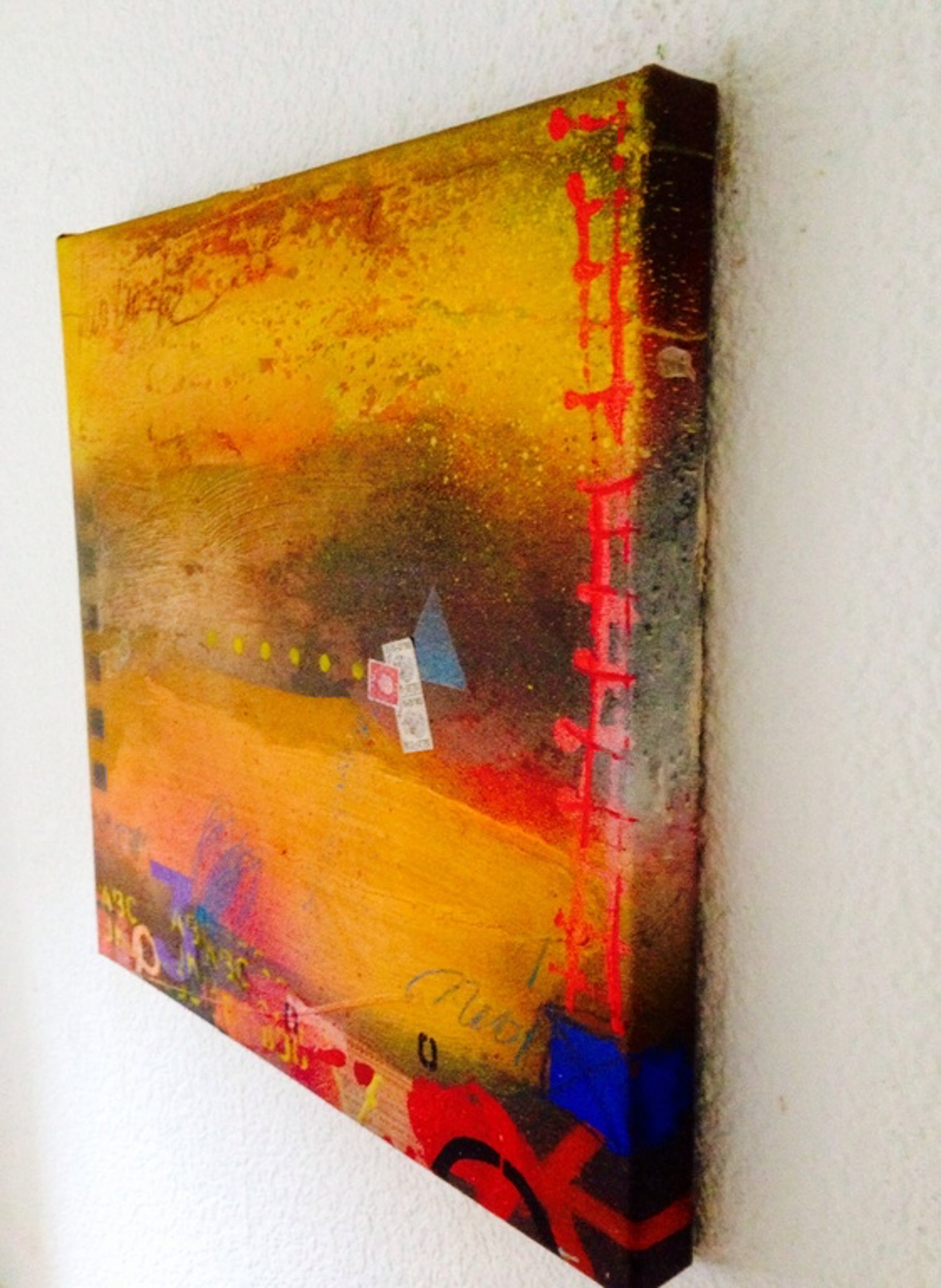 Schilderij in gemengde techniek op linnen door de kunstenaar theo koster afmetingen :50x50x4 cm titel : onderweg 1 handgesigneerd galerie verkoopwaarde 1250 €
