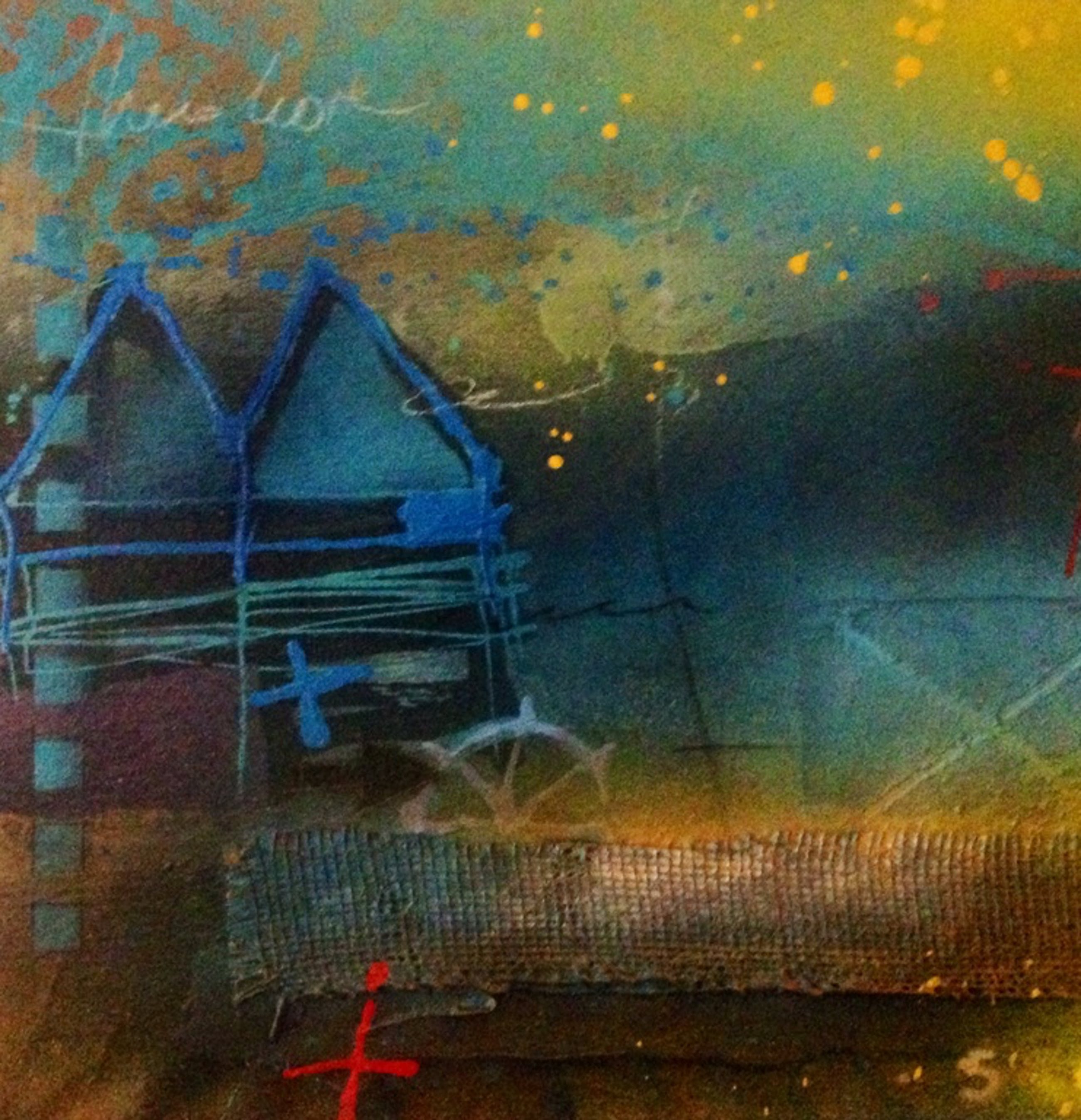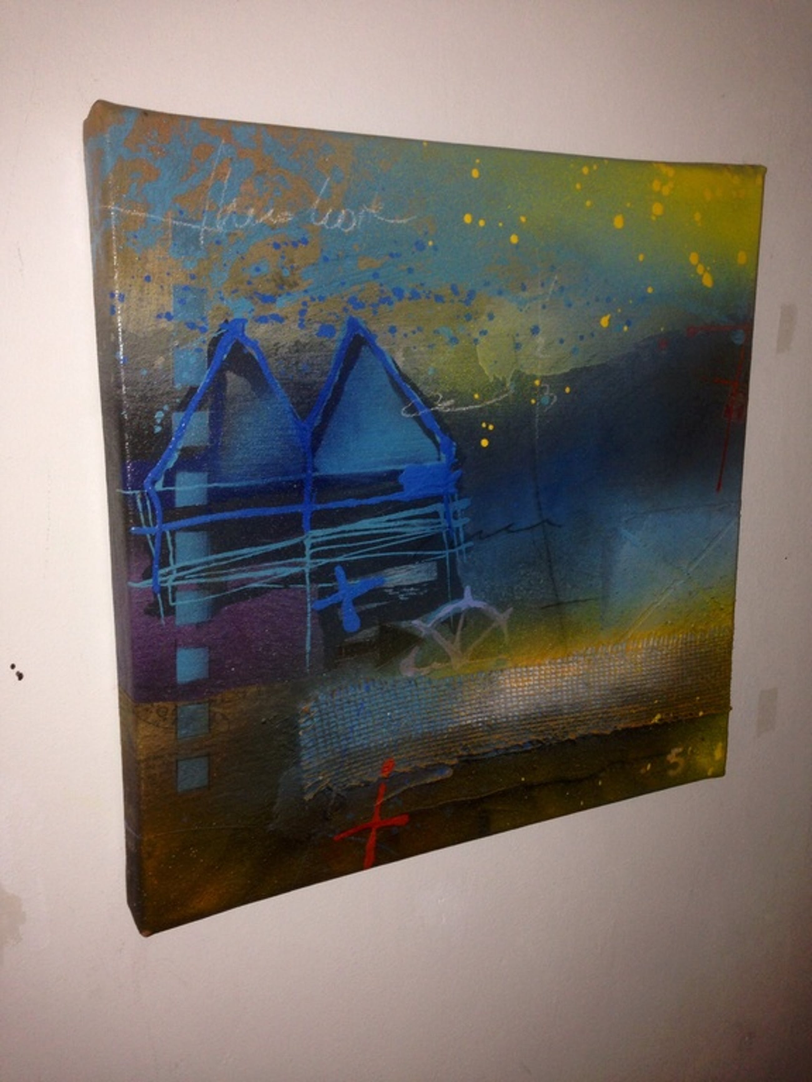 Origineel schilderij van de kunstenaar theo koster titel: het regend zonnestralen . afmeting 50x50x4 cm handgesigneerd galerieverkoop waarde1250 euro