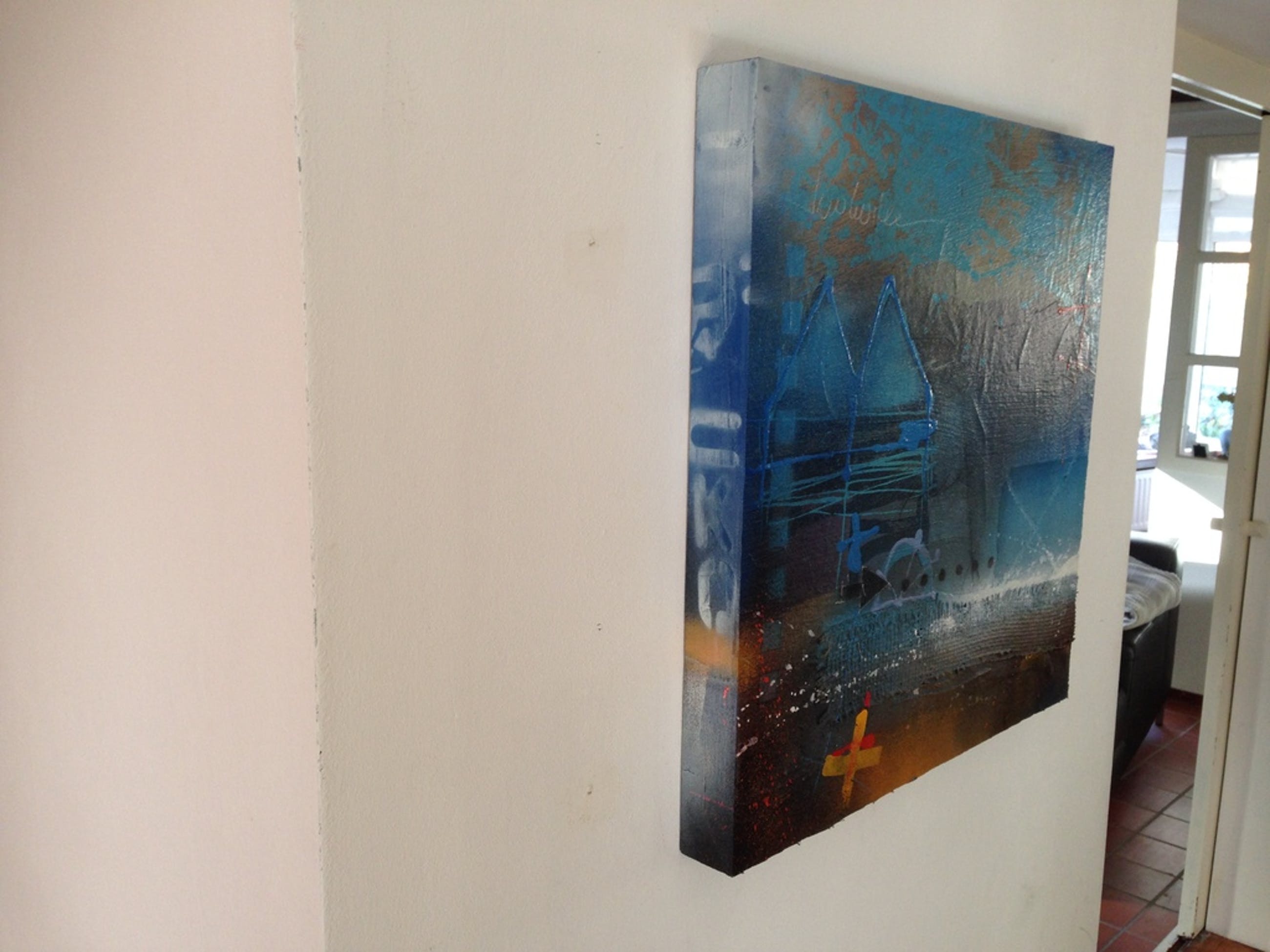 origineel schilderij (down by the riverside )van de kunstenaar theo koster afmetingen 54 x 54 x 4 cm hand gesigneerd ,