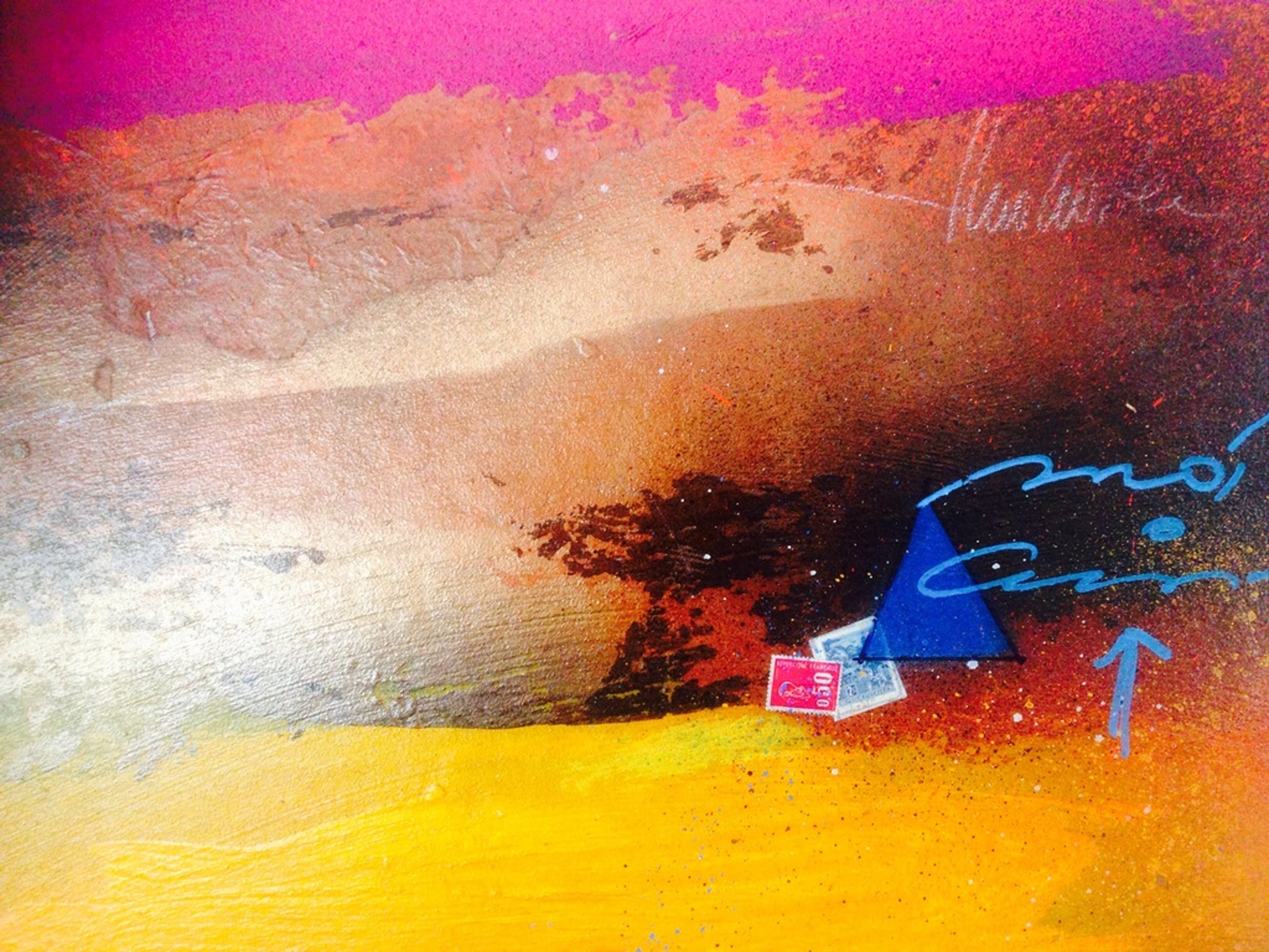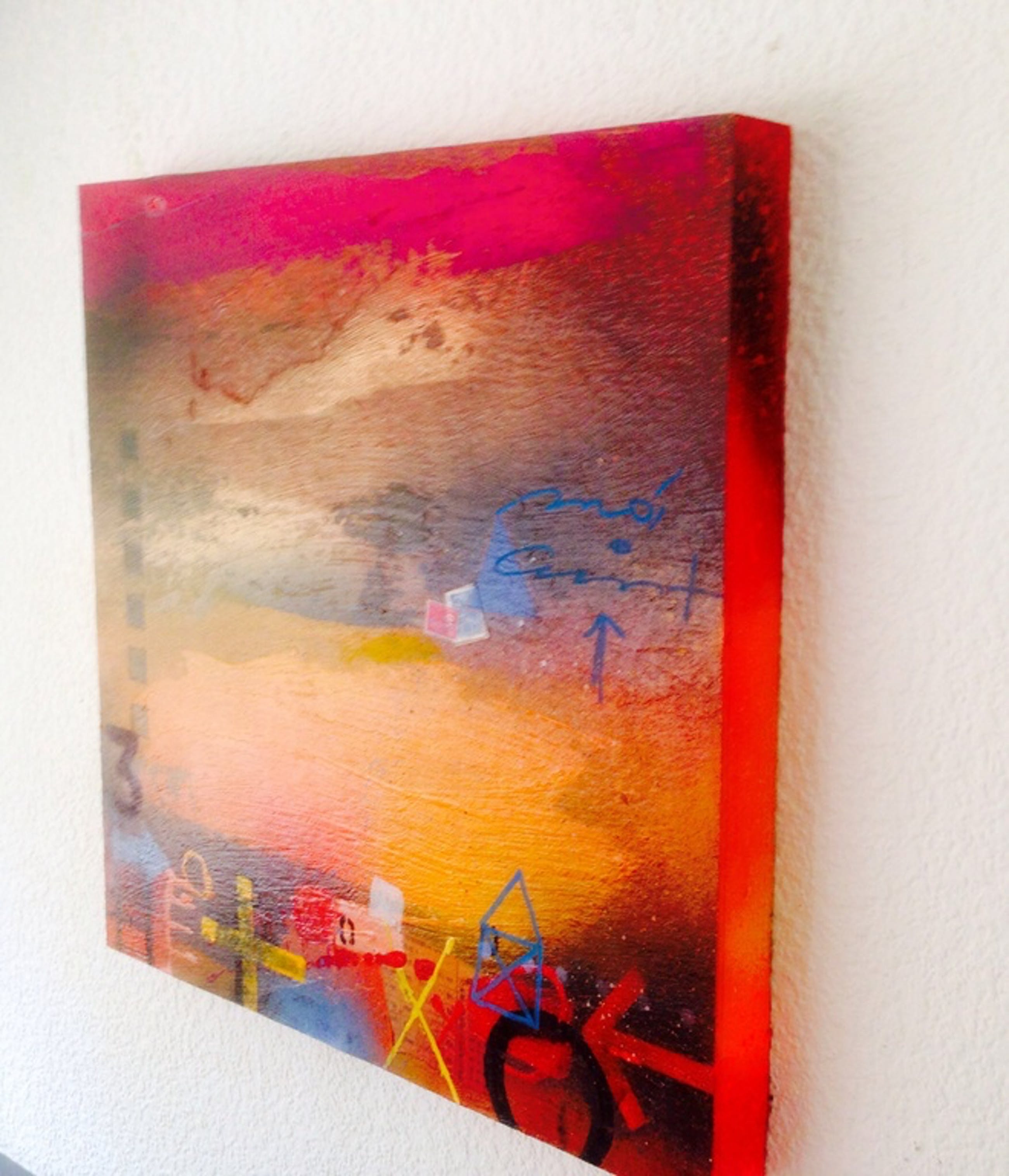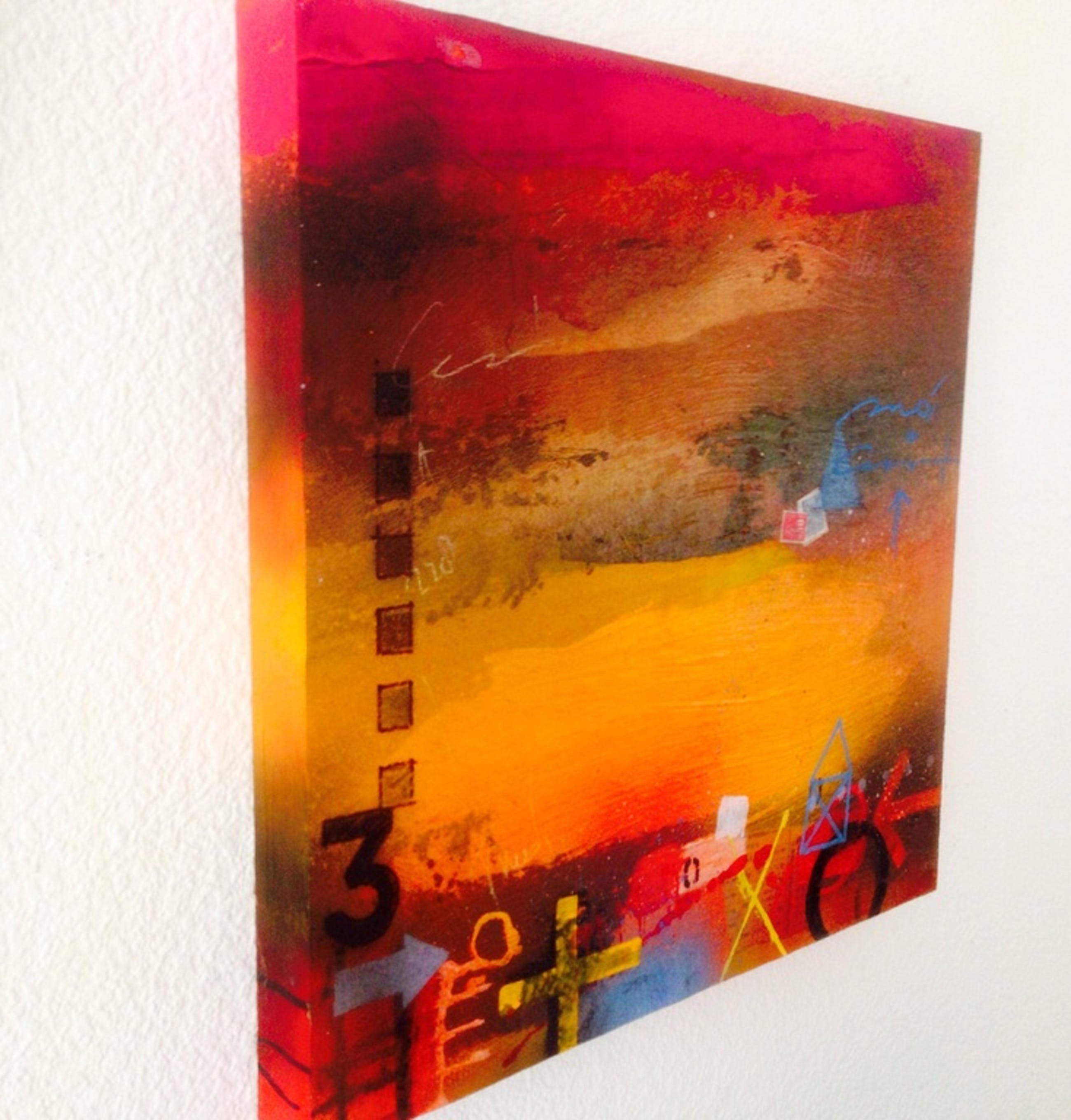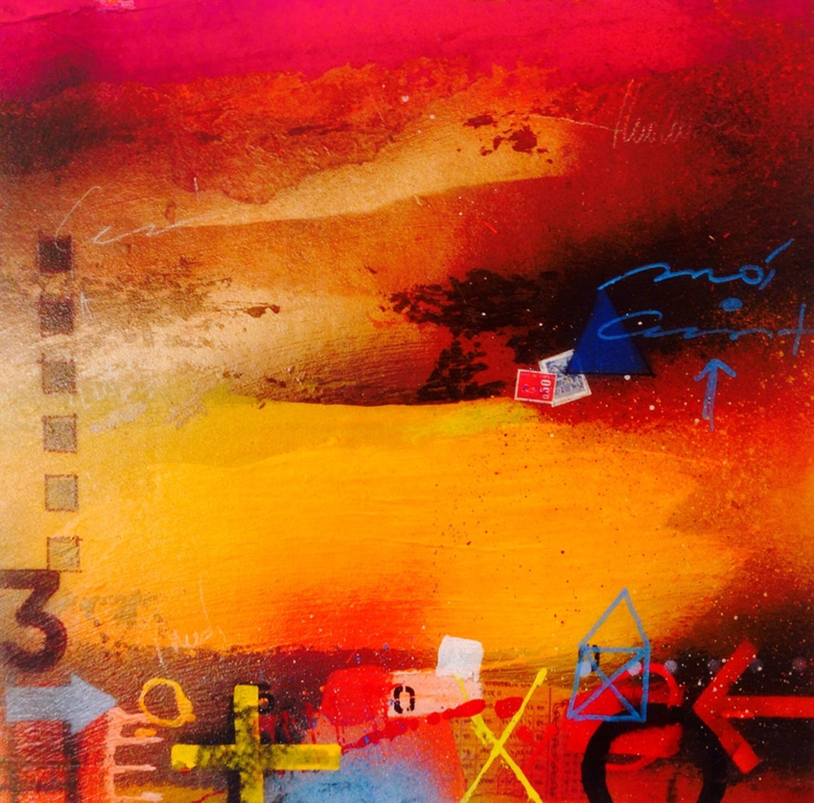 Mooi kleurrijk schilderij van de kunstschilder theo koster, titel: sunset, handgesigneerd. afmetingen 55x55x4 cm in zeer goede staat . galerie verkoop waarde 1250 €