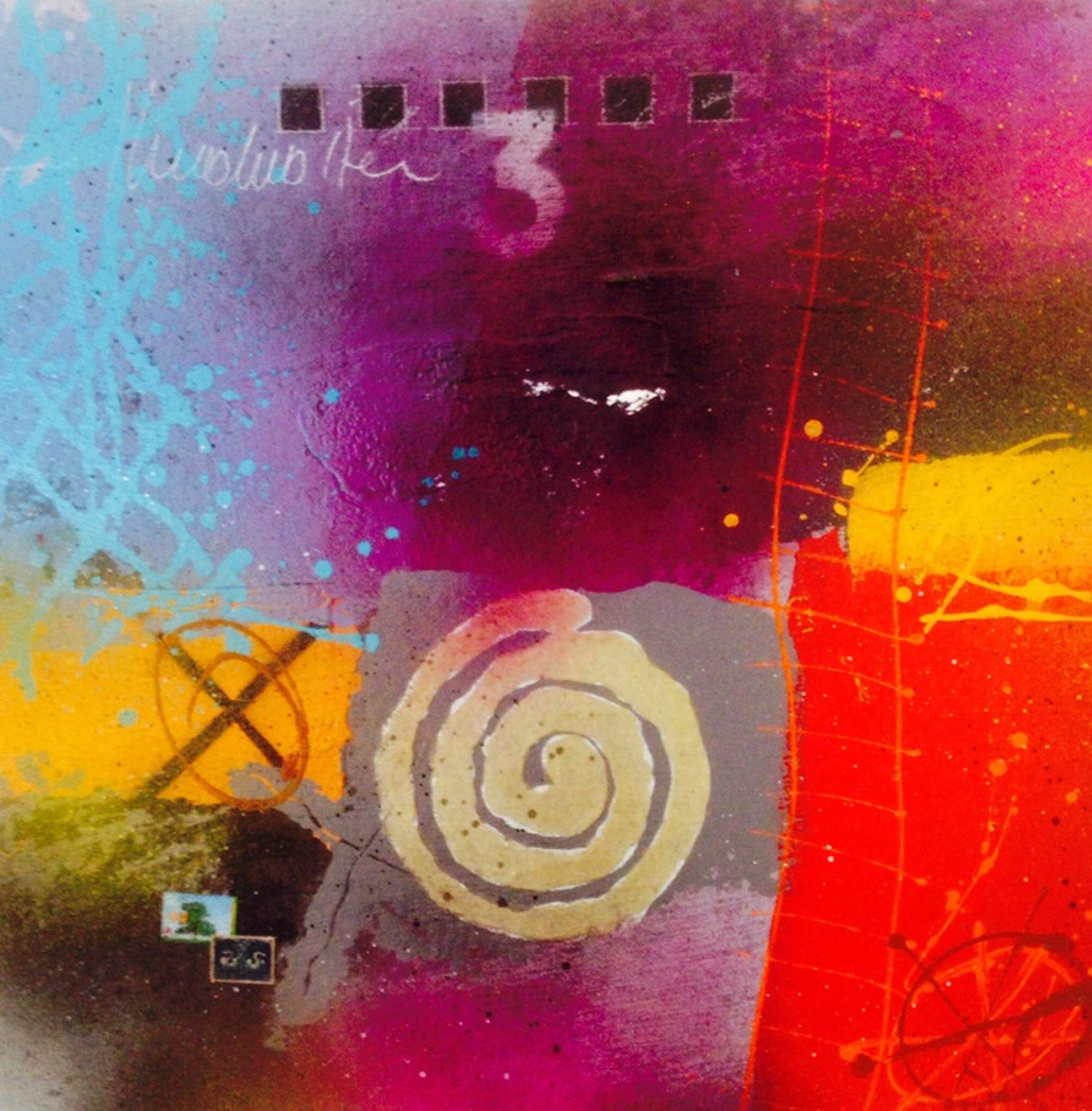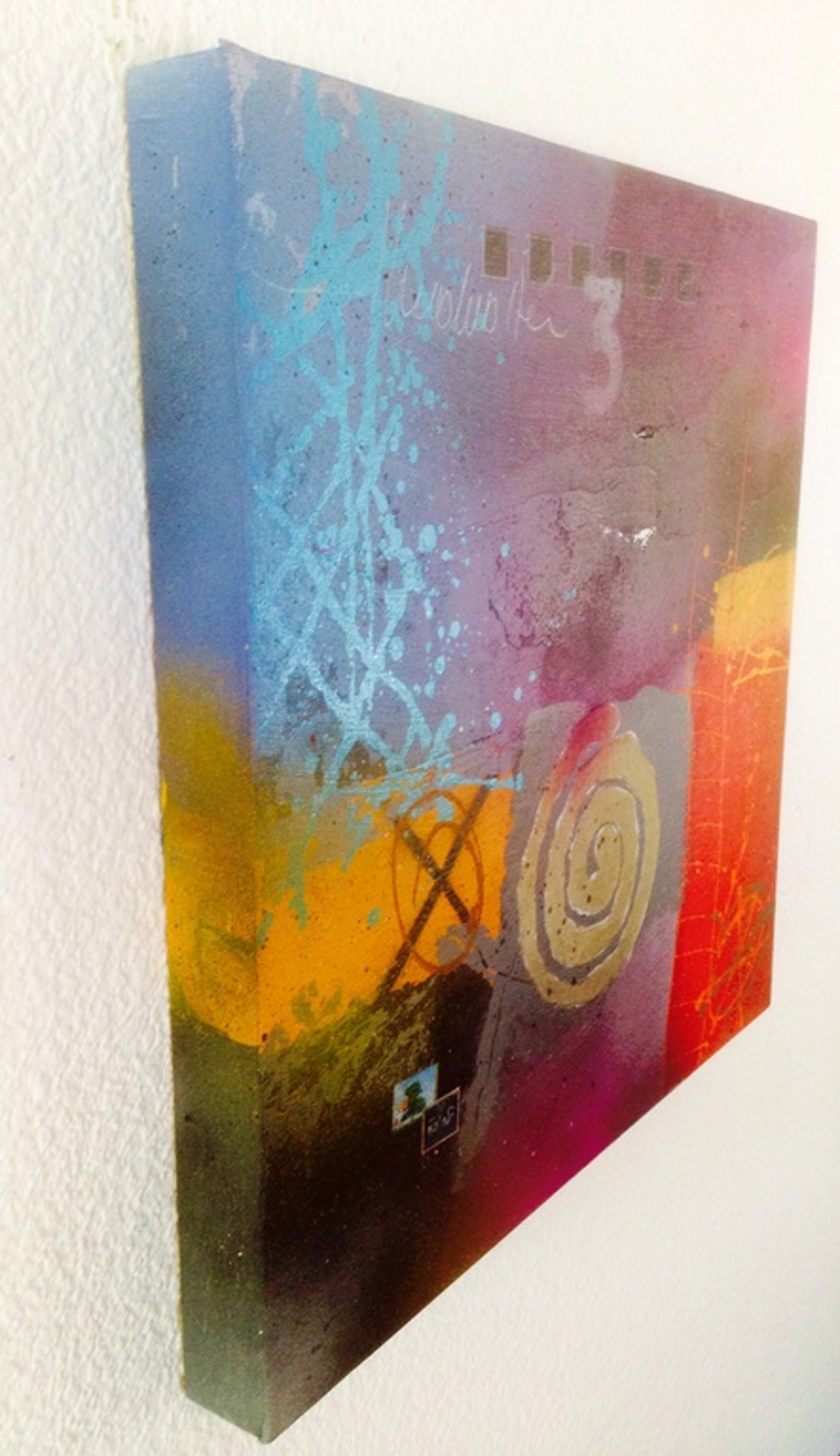 Schilderij in gemengde techniek van de kunstenaar theo koster, handgesigneerd en in goede staat, afmeting 55x55x4 cm , titel turbulentie , galerie verkoop waarde 1250 €