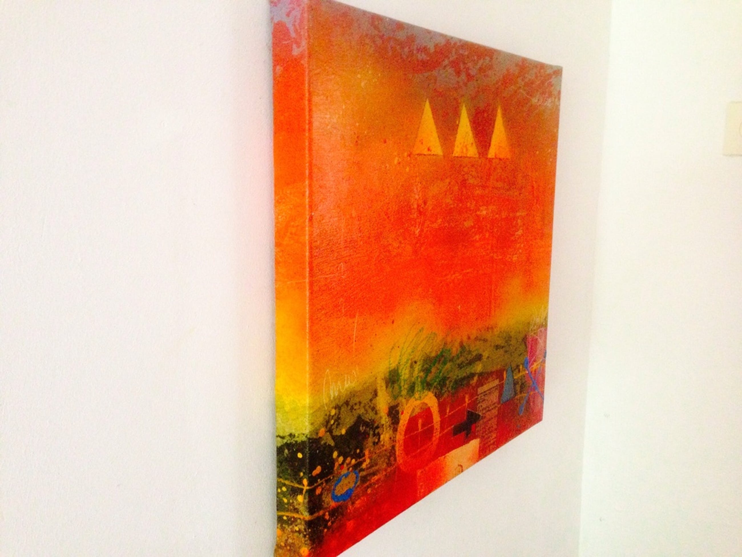 Mooi schilderij van de kunstenaar theo koster, afmetingen 50x50x4 cm, hand gesigneerd titel endless , galerie verkoopwaarde 650 euro