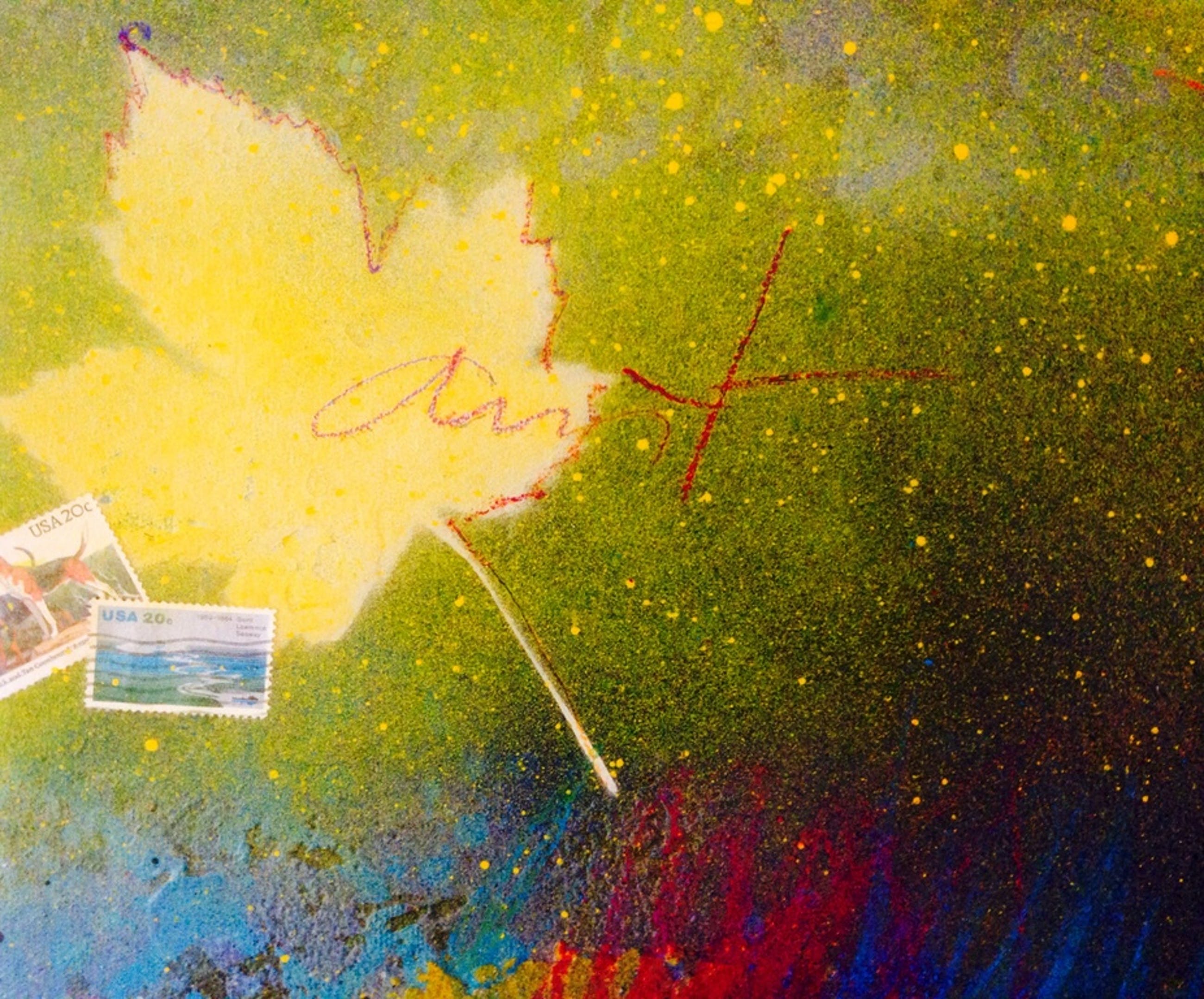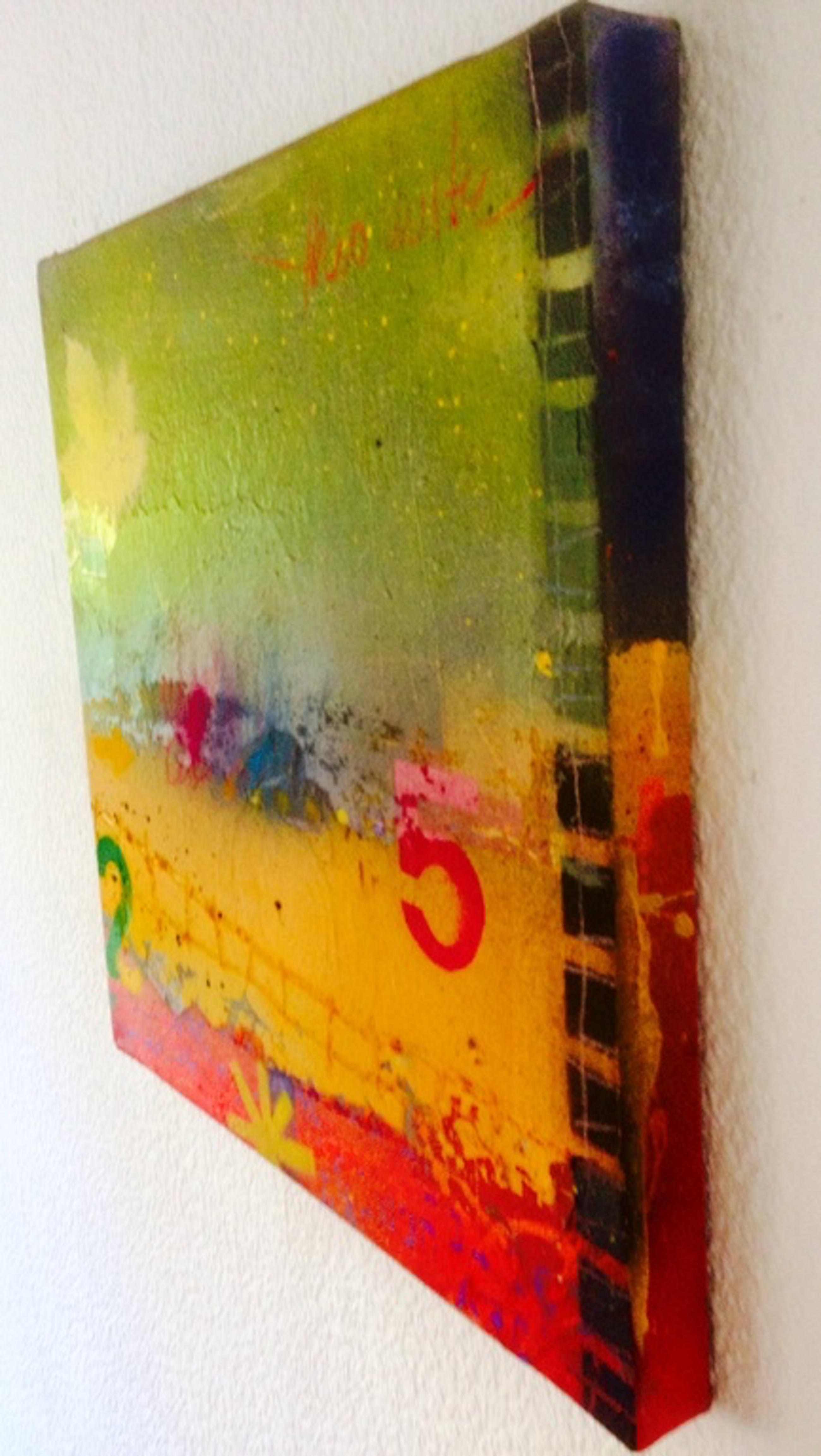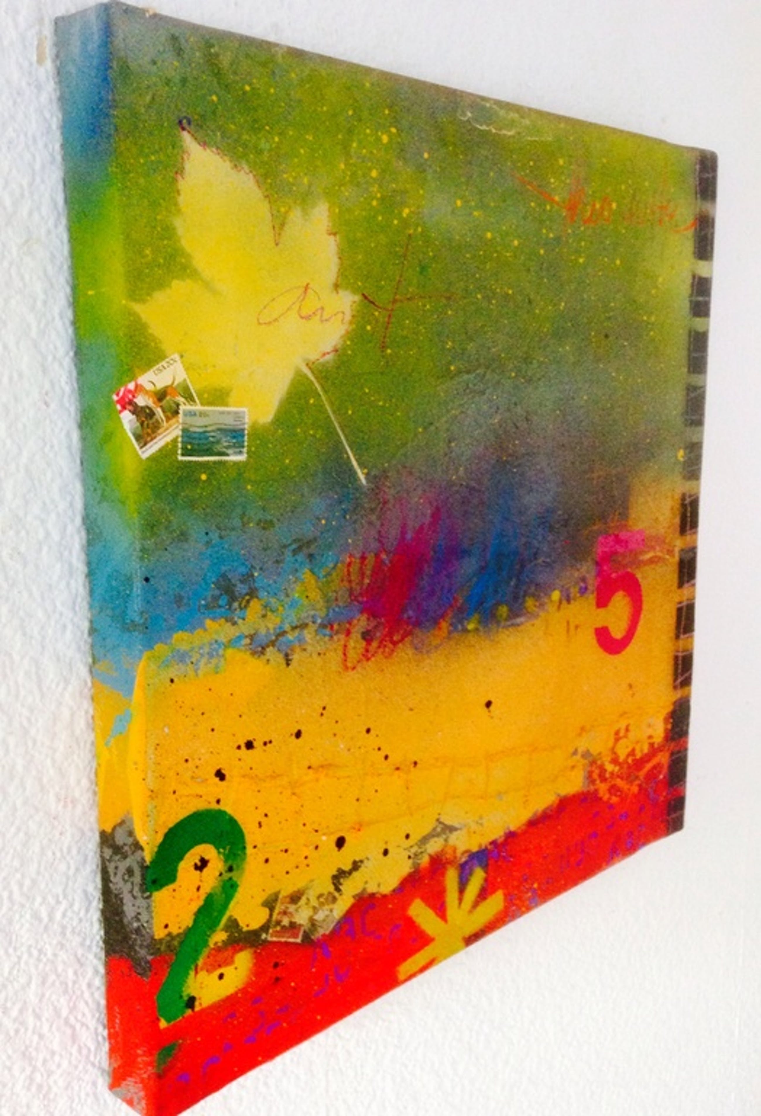 Schilderij op linnen in gemengde techniek van de kunstenaar theo koster, afmetingen 50x50x4 cm , in goede staat handgesigneerd ,titel : stardust . galerie verkoopwaarde : 1250 €