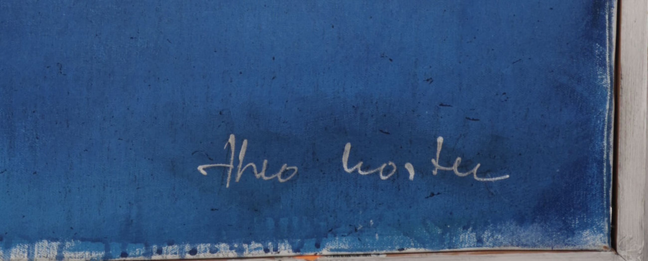 Conditie kunstwerk: In goede staat. Met een klein scheurtje in het doek. Zichtbaar op de detailfoto (linksboven). Is een nette snee, valt nauwelijks op.