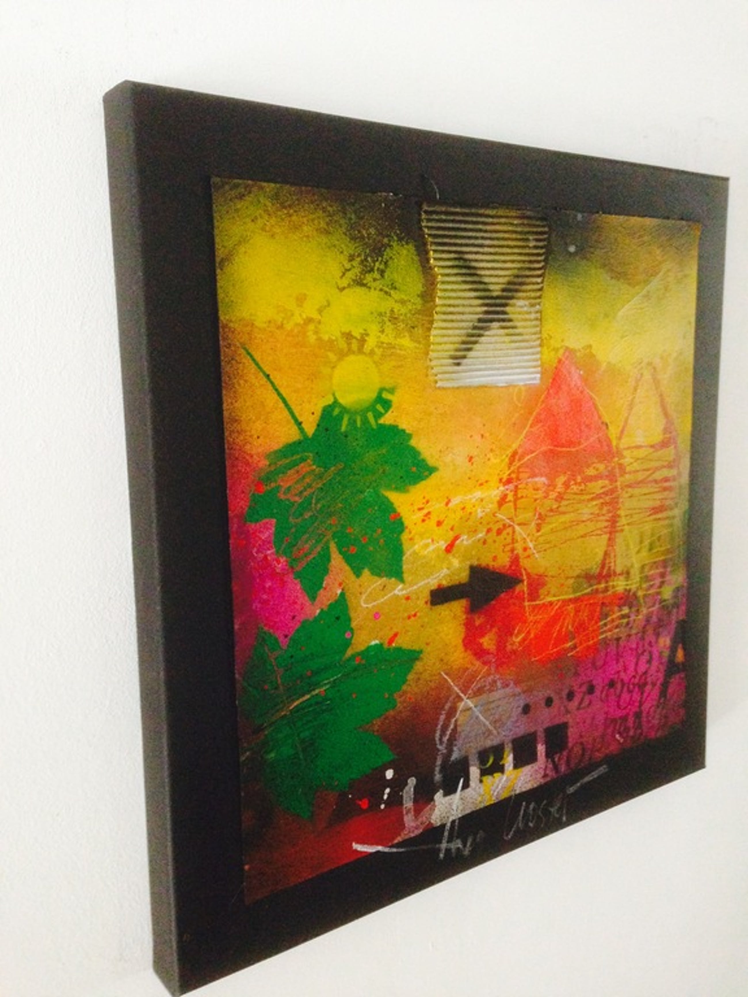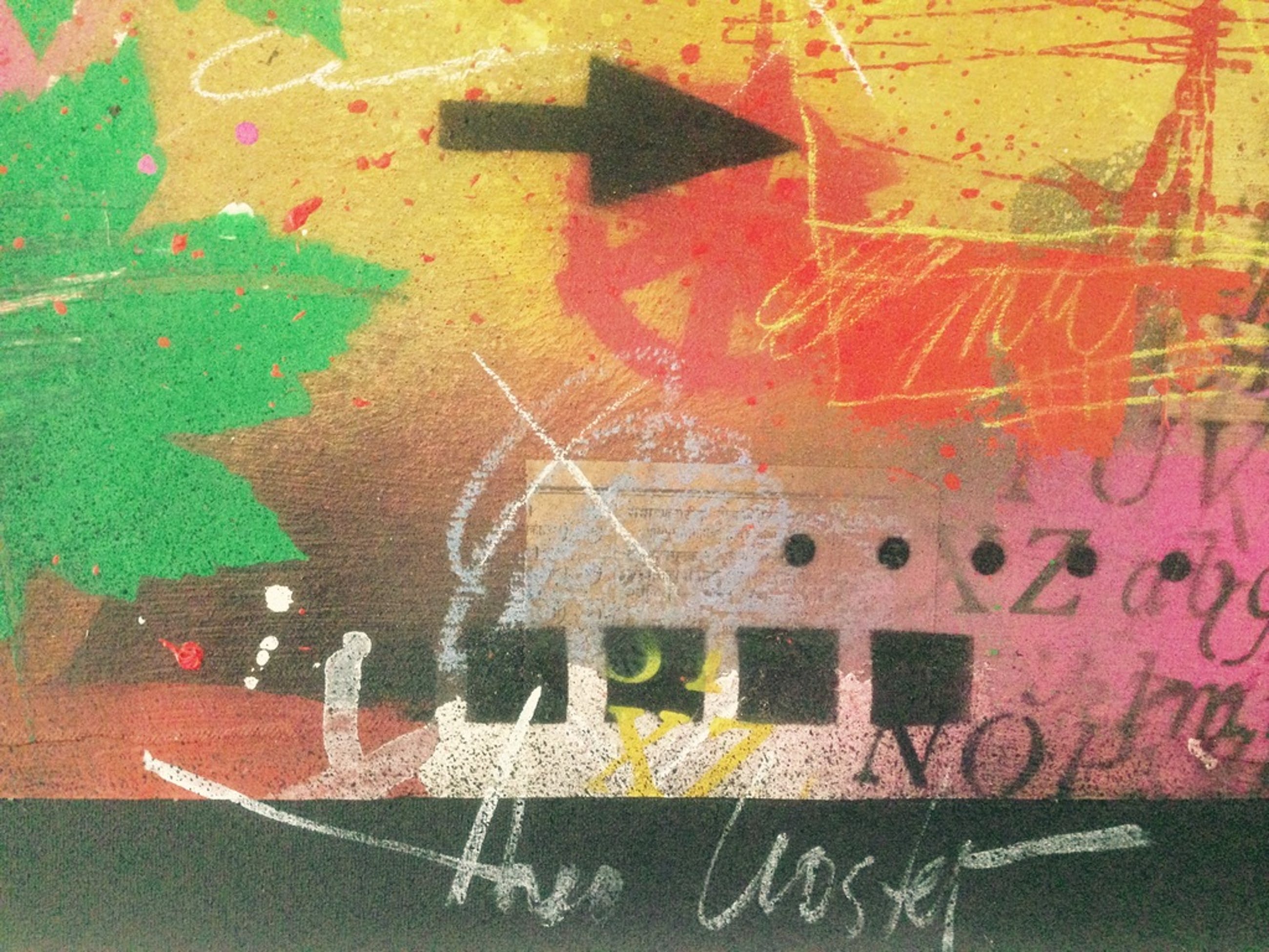 Origineel schilderij in gemengde techniek en in zeer goede staat van de kunstenaar theo koster , hand gesigneerd , afmetingen 60x60x4cm titel: "direction" galerie verkoop waarde € 1500,-