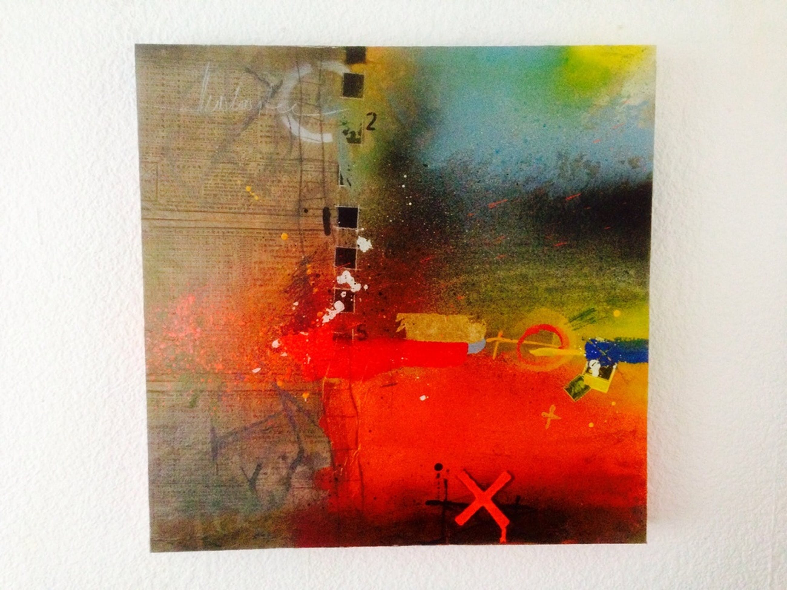 Mooi schilderij van de kunstenaar theo koster in gemengde techniek op paneel titel travelling ,gallerie verkoopwaarde € 1750 Handgesigneerd afmetingen 55x55x4 cm het schilderij kan eventueel worden opgestuurd