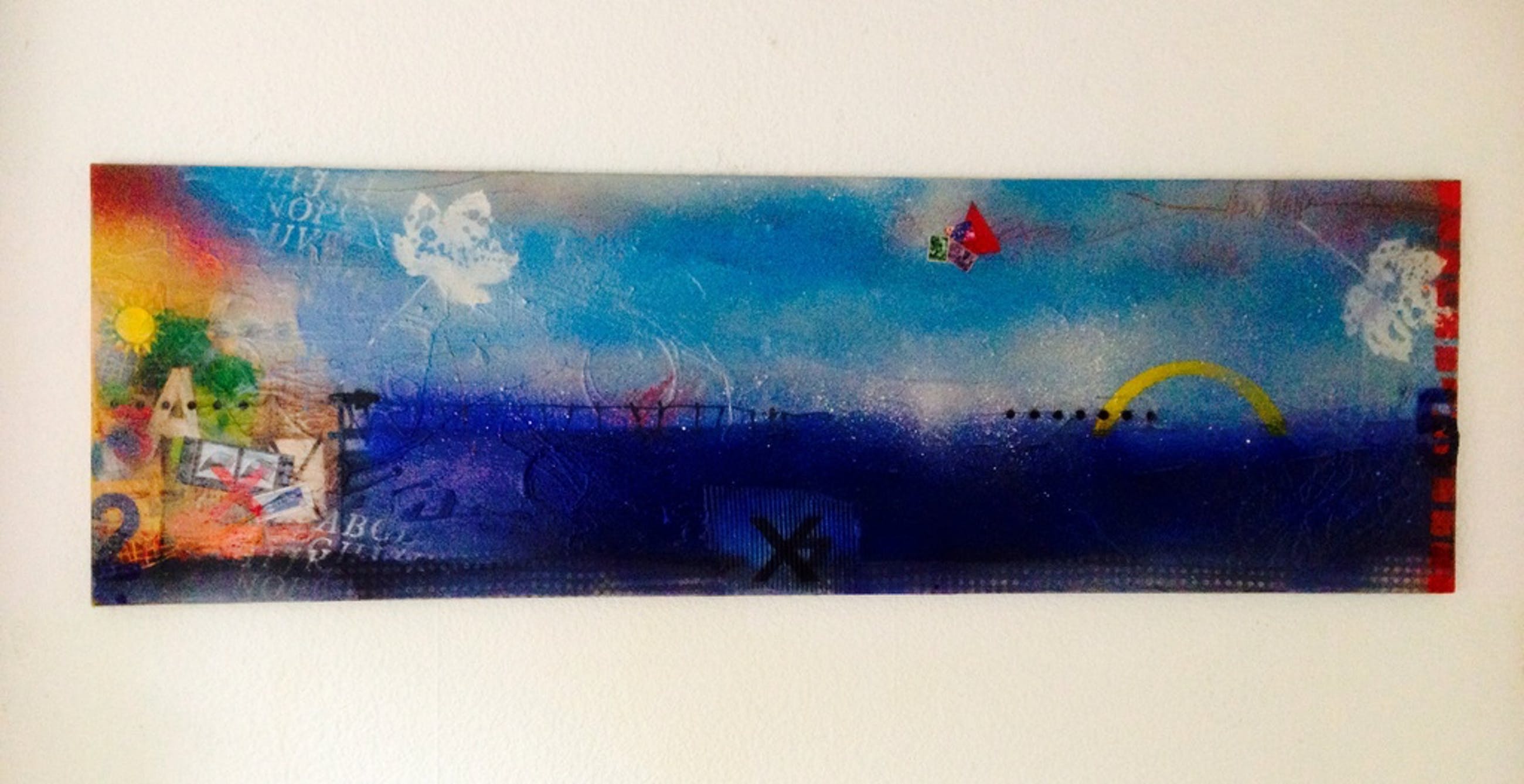 origineel schilderij op linnen in zeer goede staat en handgesigneerd van de kunstenaar theo koster afmeting 160x50 cm titel : "midnight blues" galerie verkoop waarde € 3250,-