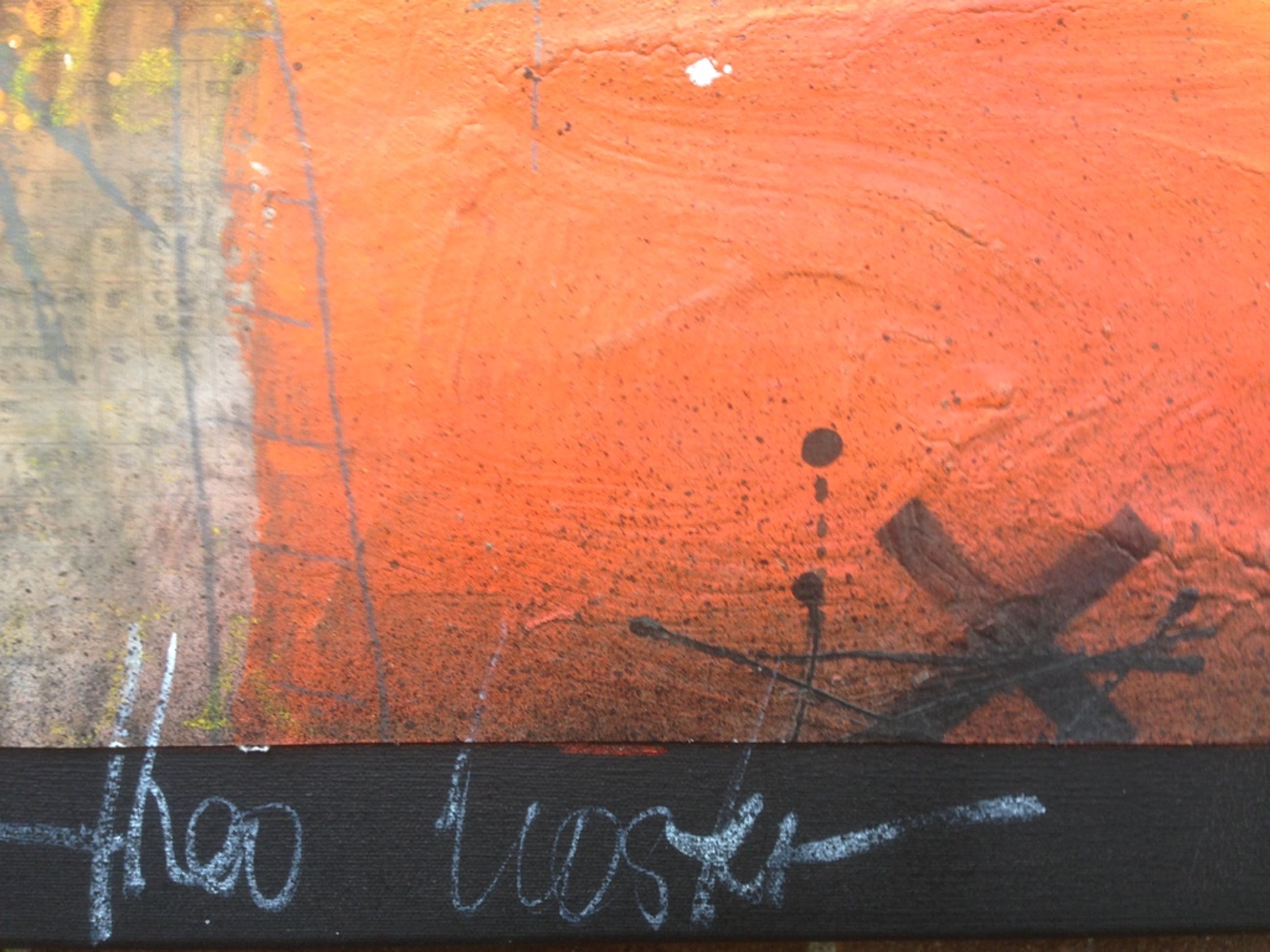 Schilderij in gemengde techniek van de kunstschilder theo koster . Handgesigneerd en in zeer goede staat , afmetingen 60x60x4cm titel: " morning song" galerie verkoopwaarde 1500 €