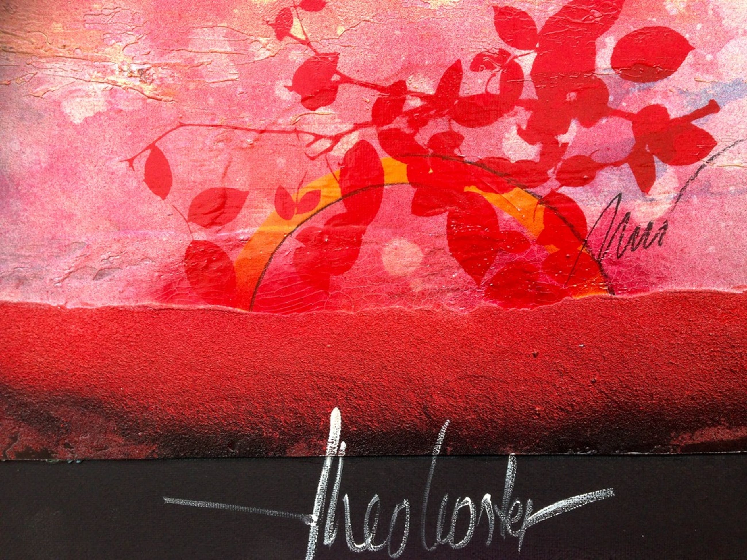 Origineel schilderij in gemengde techniek van theo koster, afmetingen 50x50x5 cm titel : "passion" hand gesigneerd en in goede staat.
