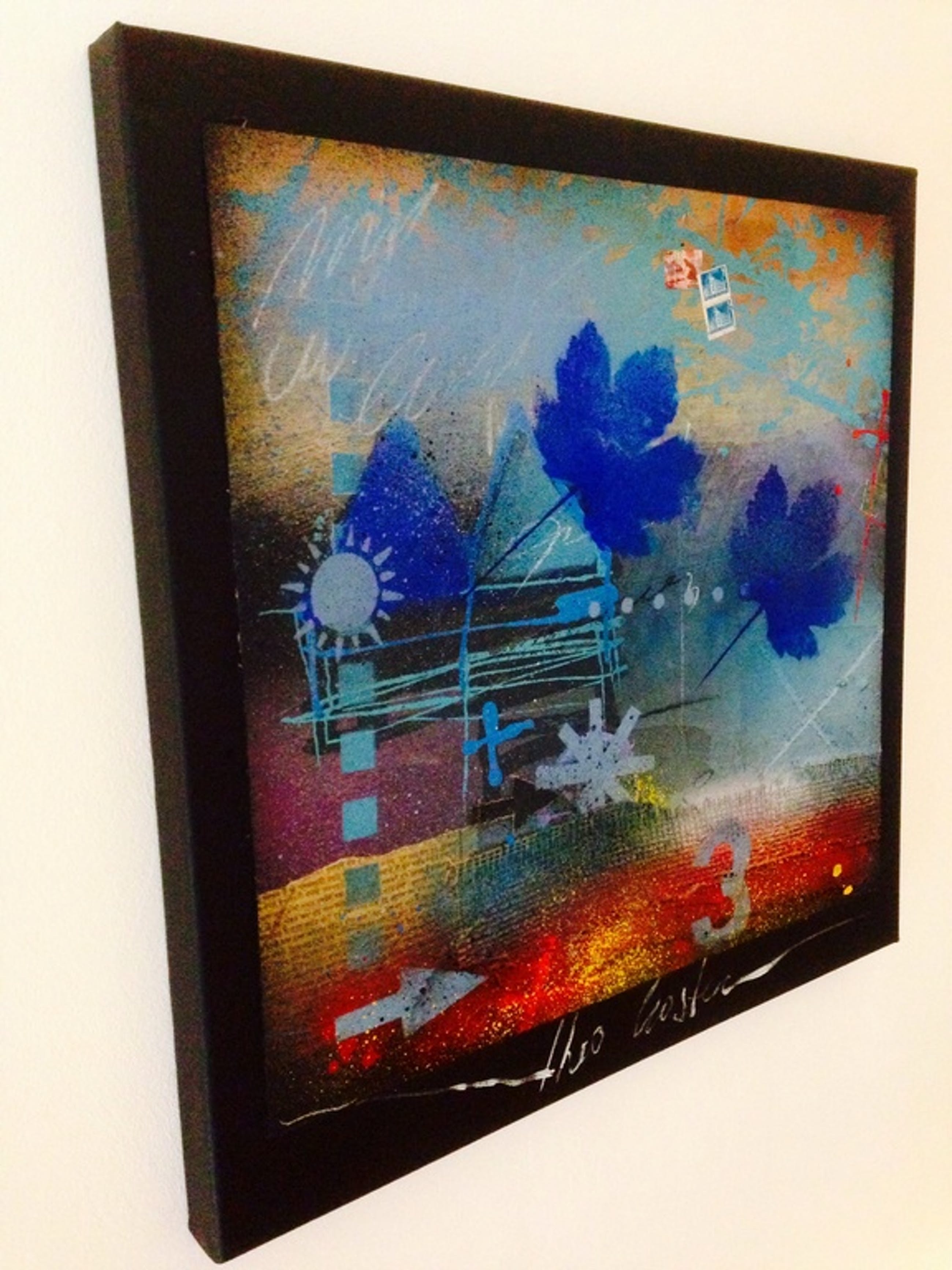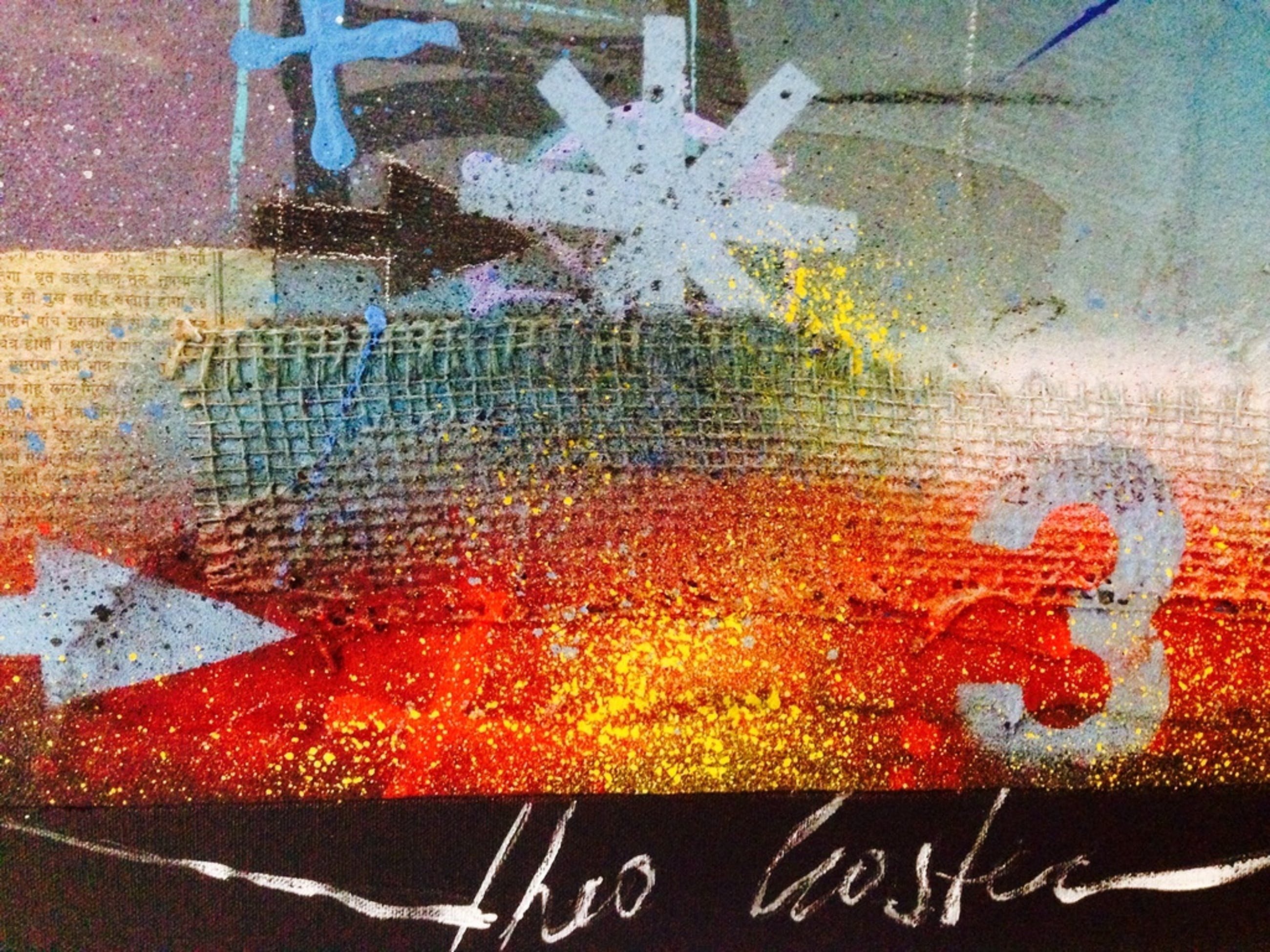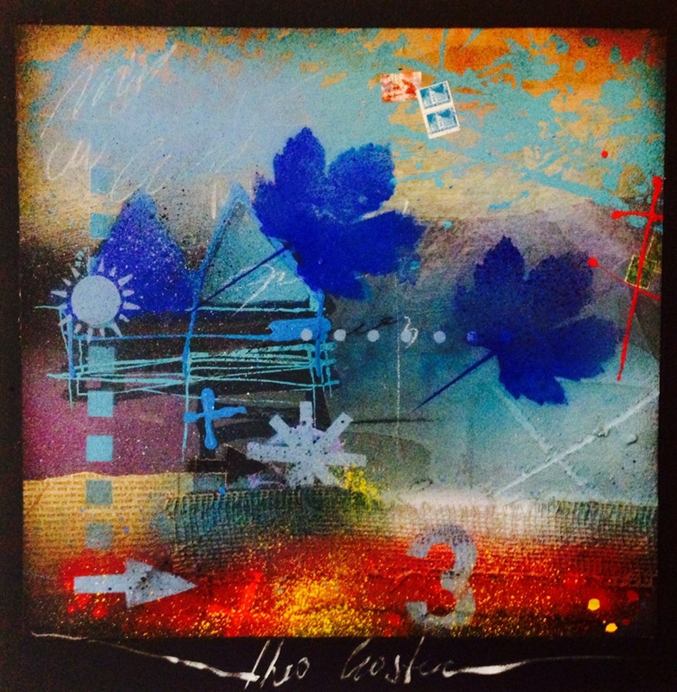 Origineel schilderij in gemengde techniek van de kunstenaar theo koster afmetingen 60x60x4 cm handgesigneerd en in goede staat, titel: blue monday. Galerie verkoopwaarde 1500,-€