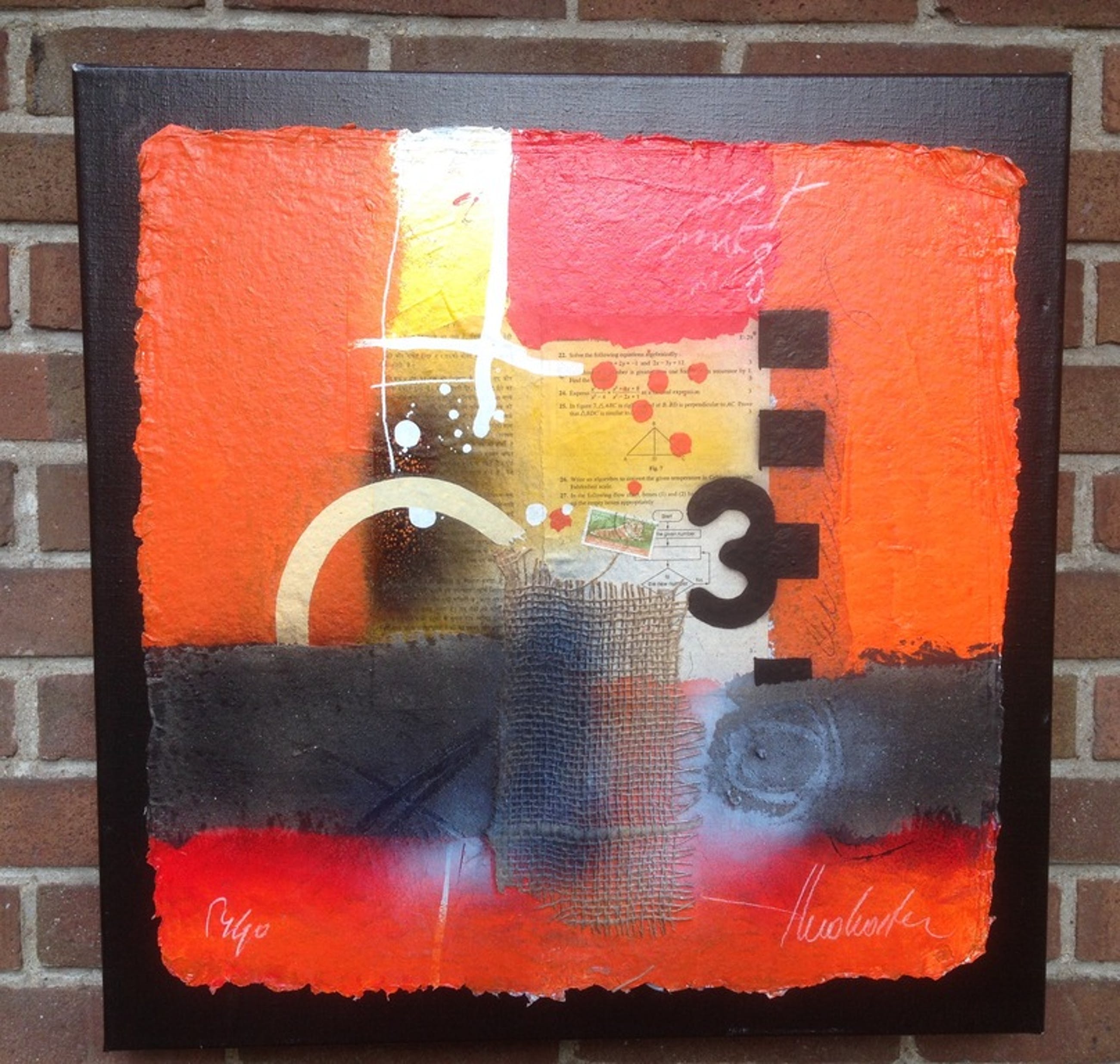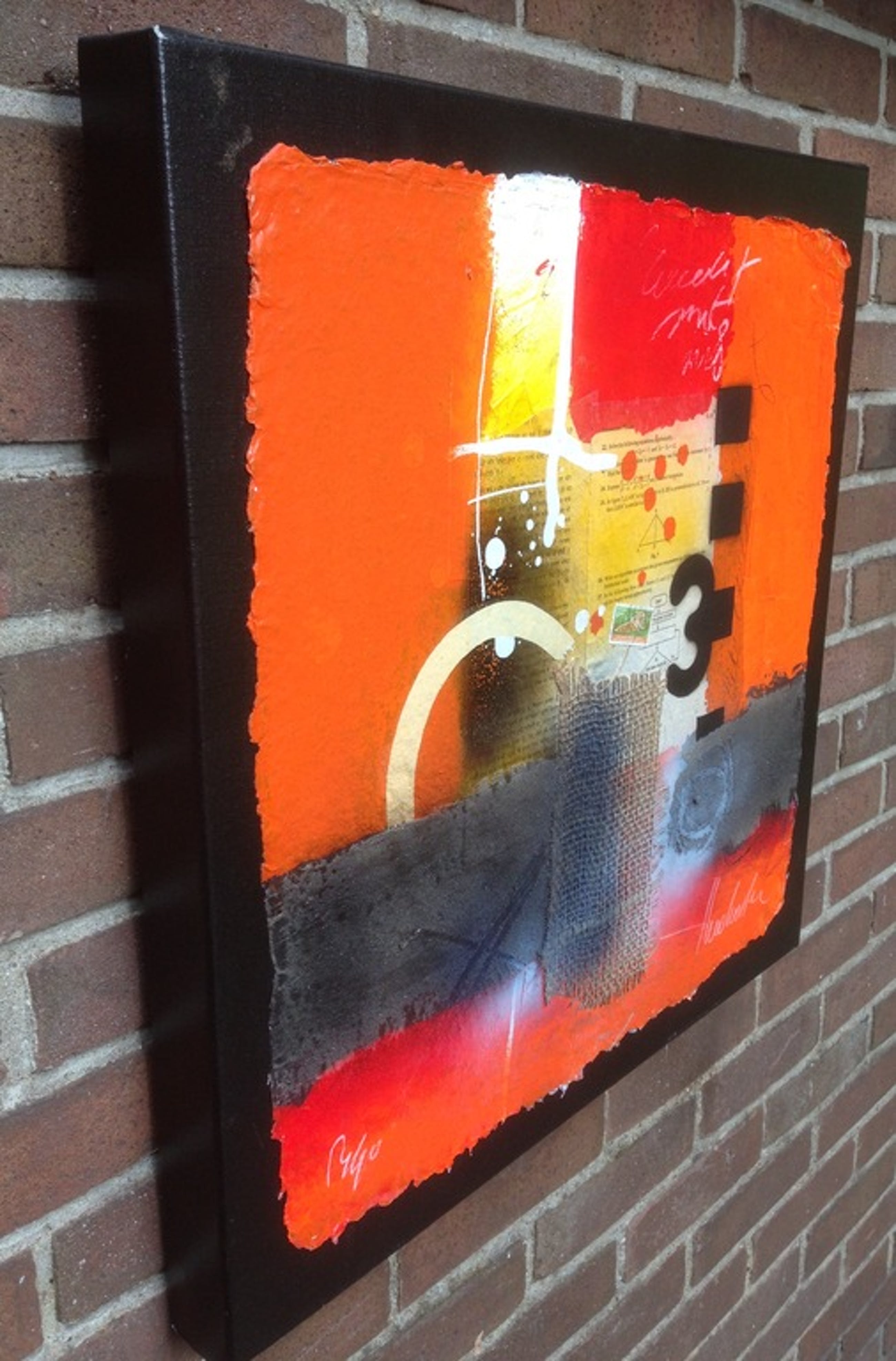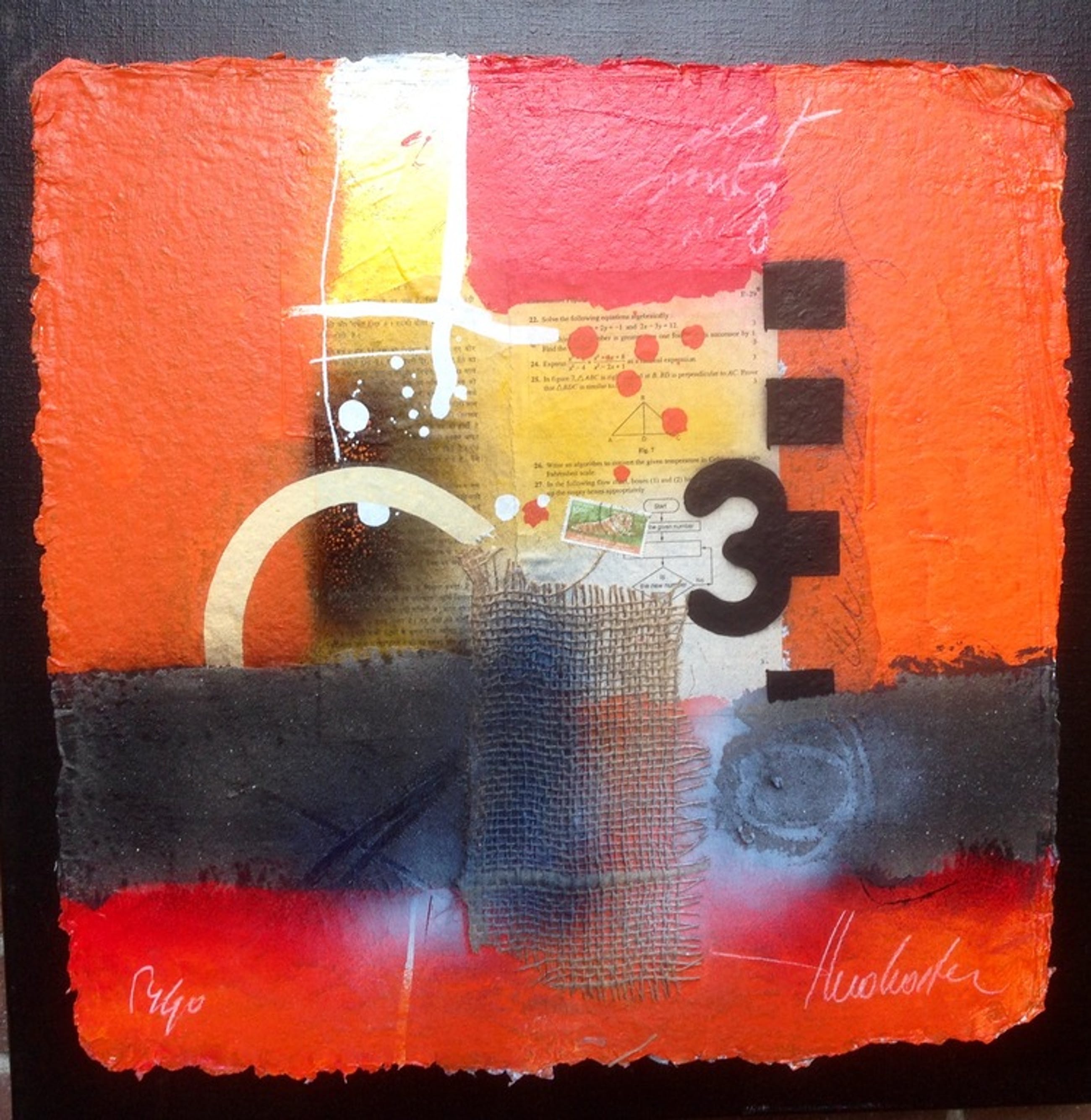 Bijzonder werk van theo koster gemengde techniek in oplage gemaakt met diverse materialen , afmetingen 55x55 cm uit de india periode staat afgebeeld in het boek " theo koster traces of india "