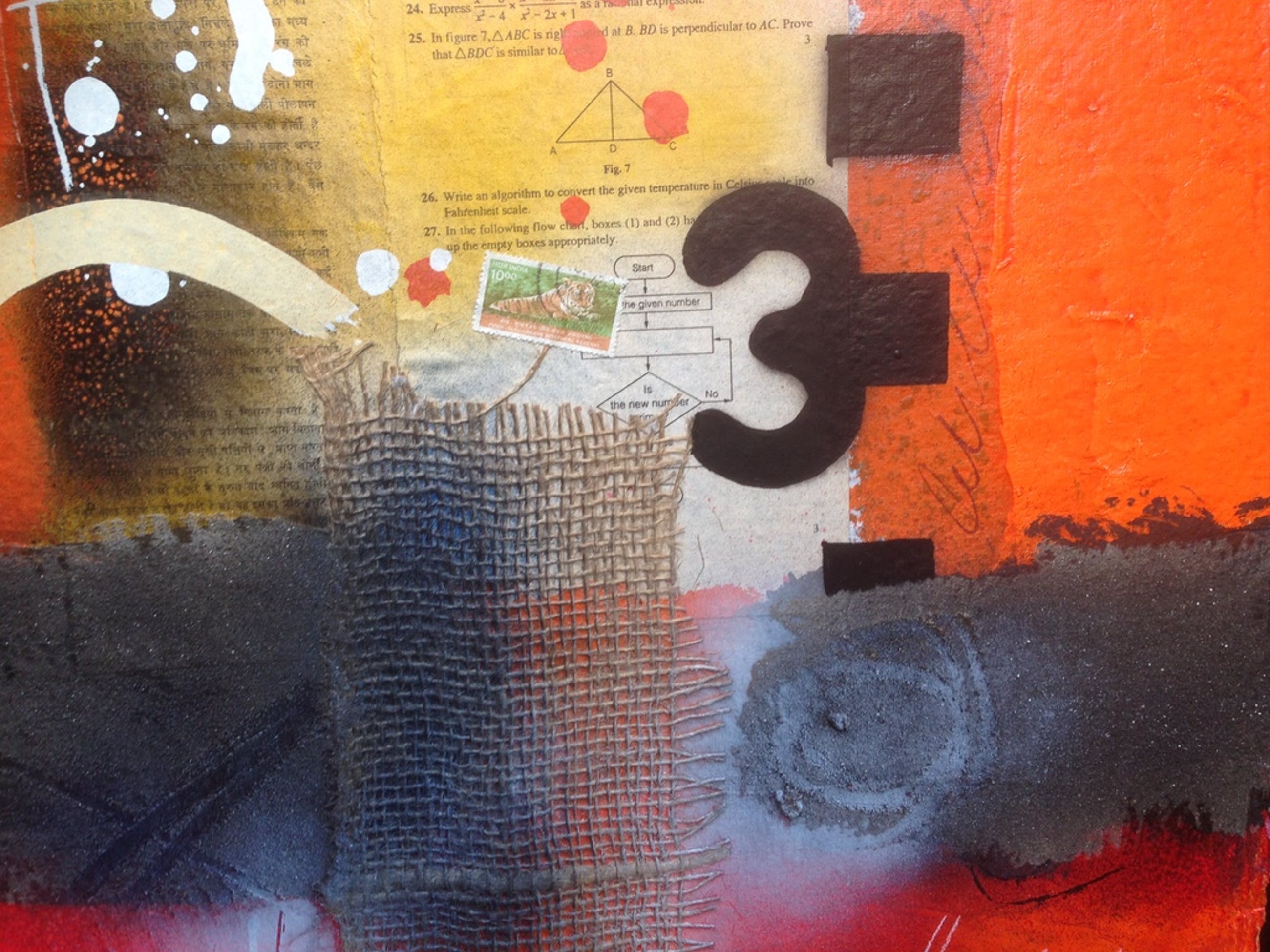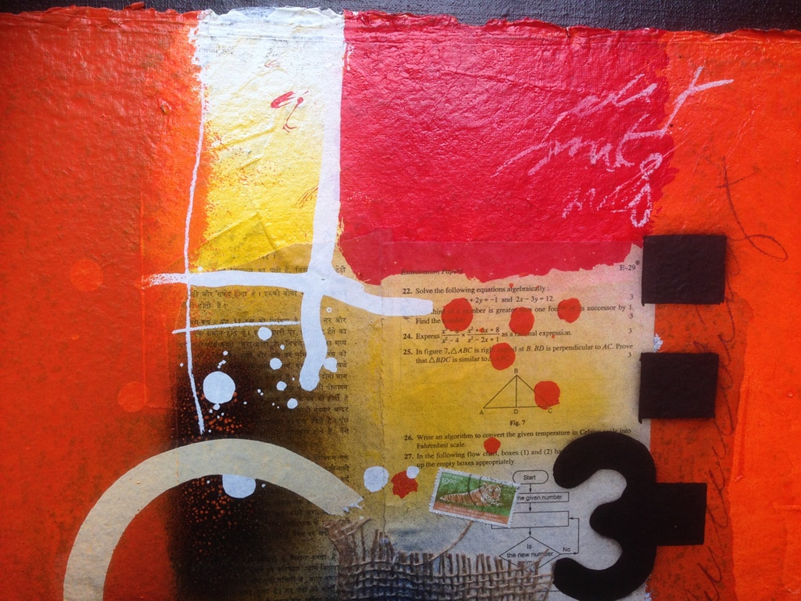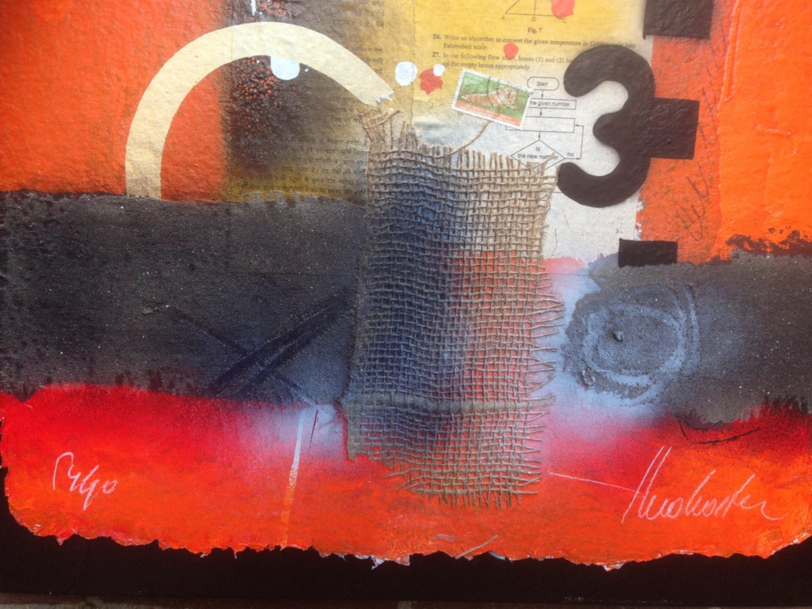 Bijzonder werk van theo koster gemengde techniek in oplage gemaakt met diverse materialen , afmetingen 55x55 cm uit de india periode staat afgebeeld in het boek " theo koster traces of india "